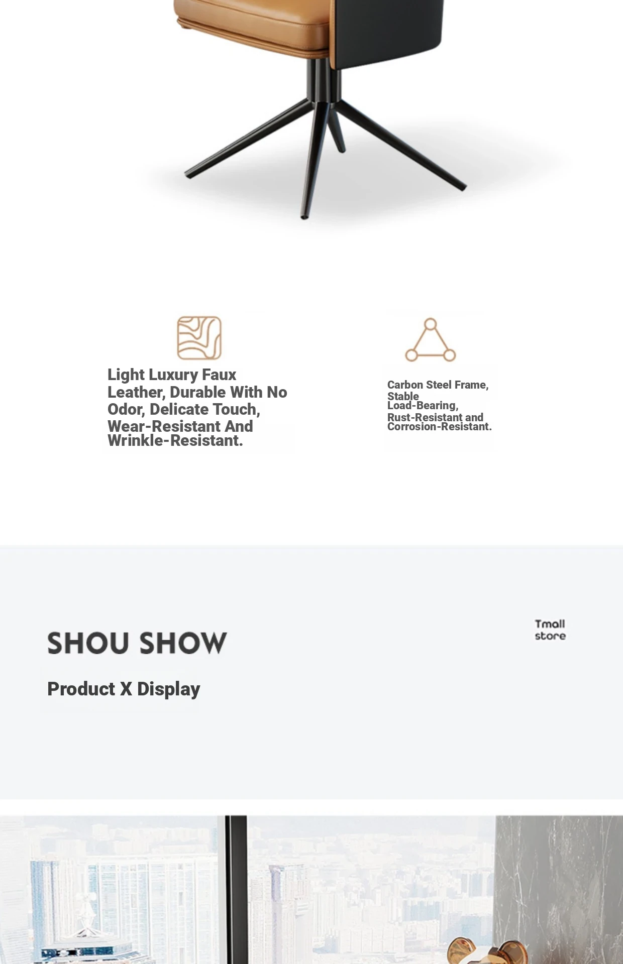 1 table 2 chairs: orange + black / western leather / rotated + round: 23.62in*29.53in [Snow Mountain white platform]