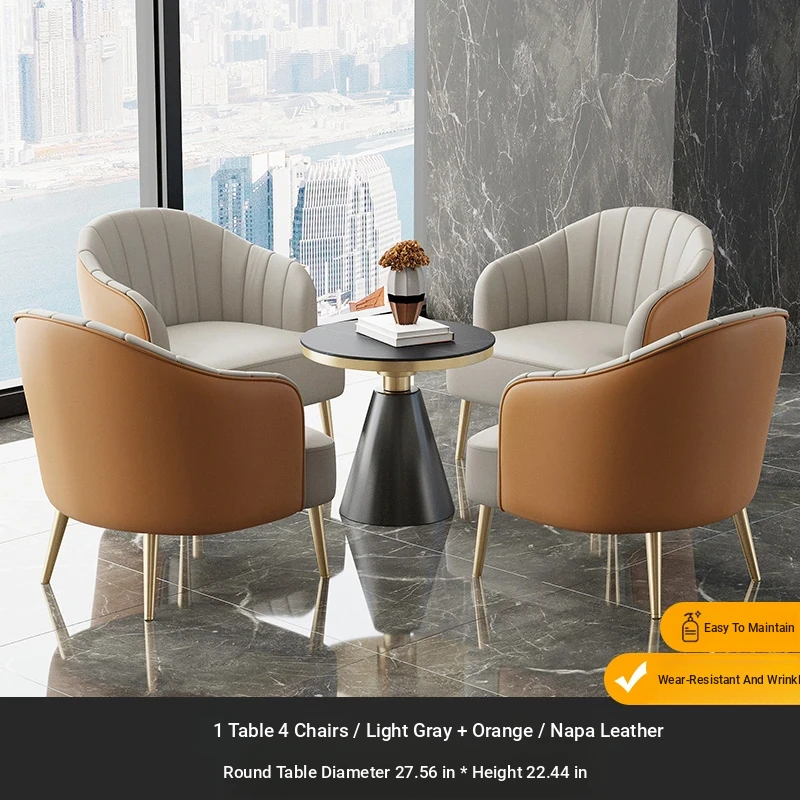 1 Table 4 chairs + round 27.56in [meter Gray + Orange]]