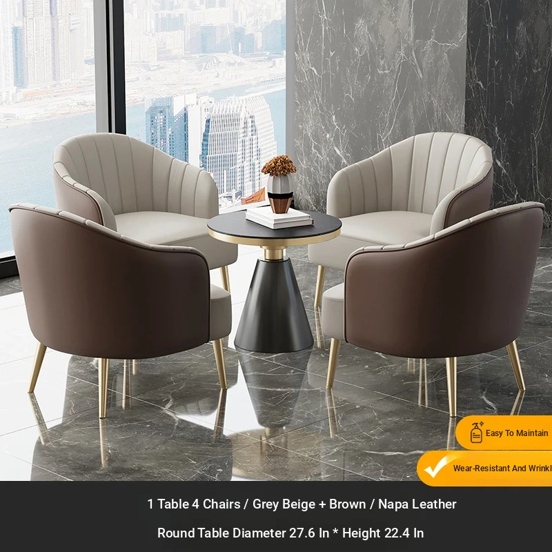 1 Table 4 chairs + round 27.56in [gray + Brown]]