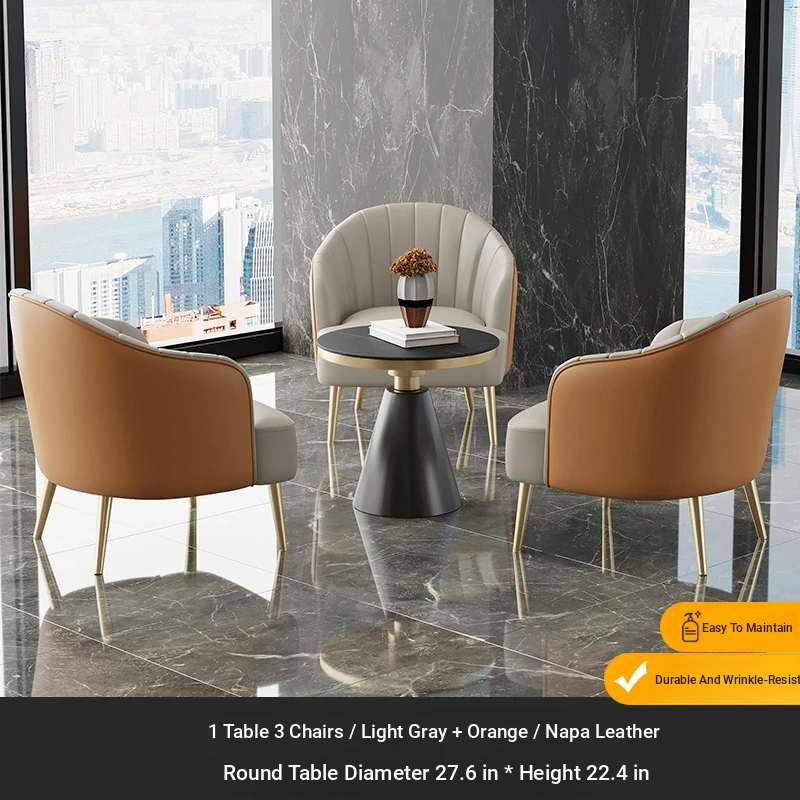 1 Table 3 chairs + round 27.56in [meter Gray + Orange]]