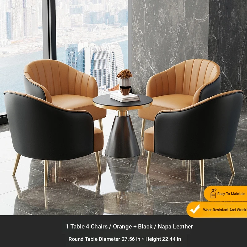 1 Table 4 chairs + round 27.56in [Orange + Black]]