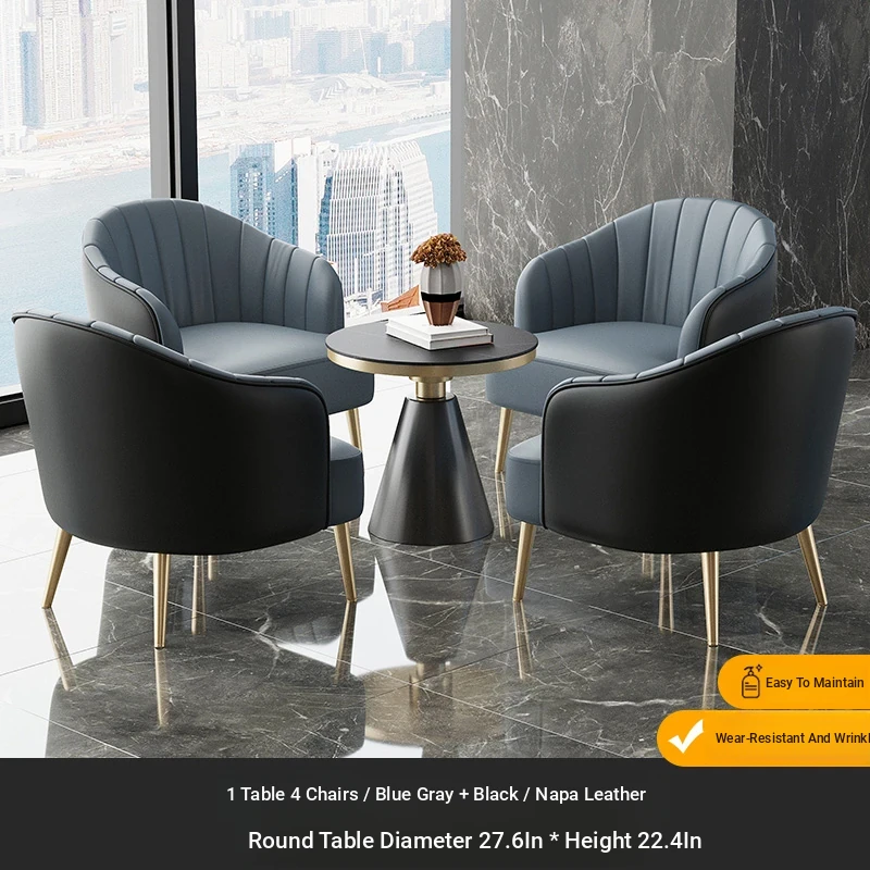 1 Table 4 chairs + round 27.56in [Blue Gray + Black]]