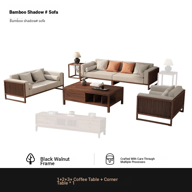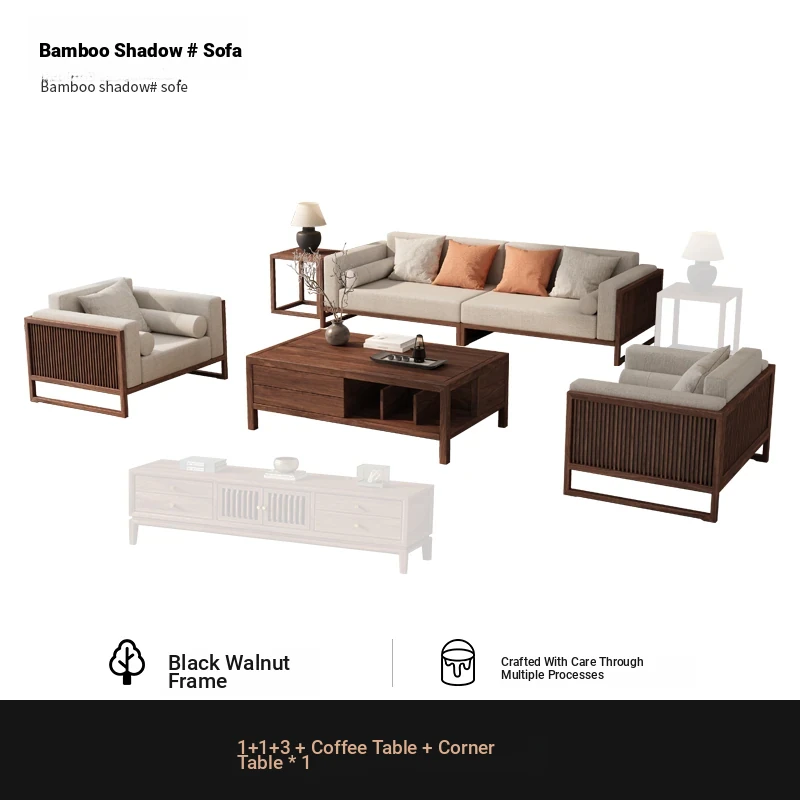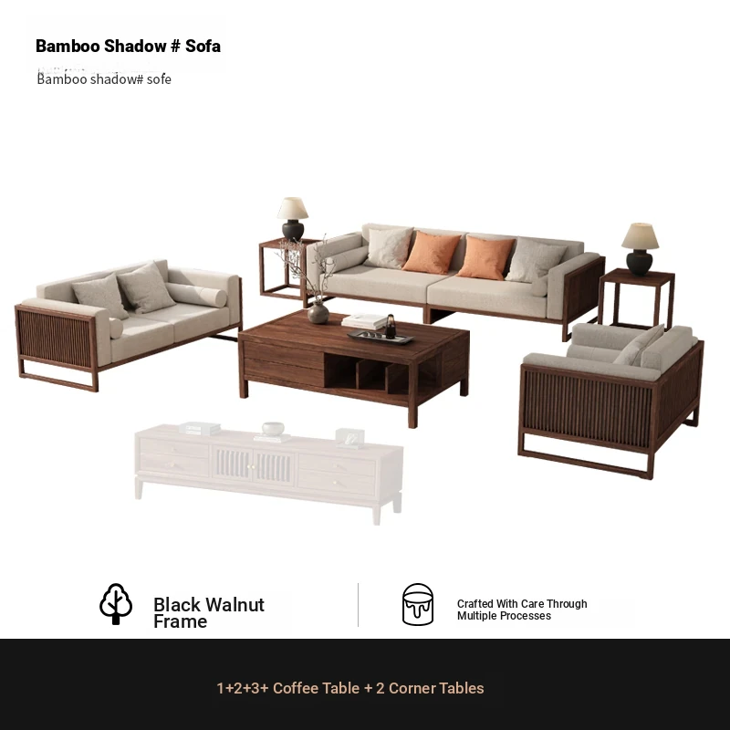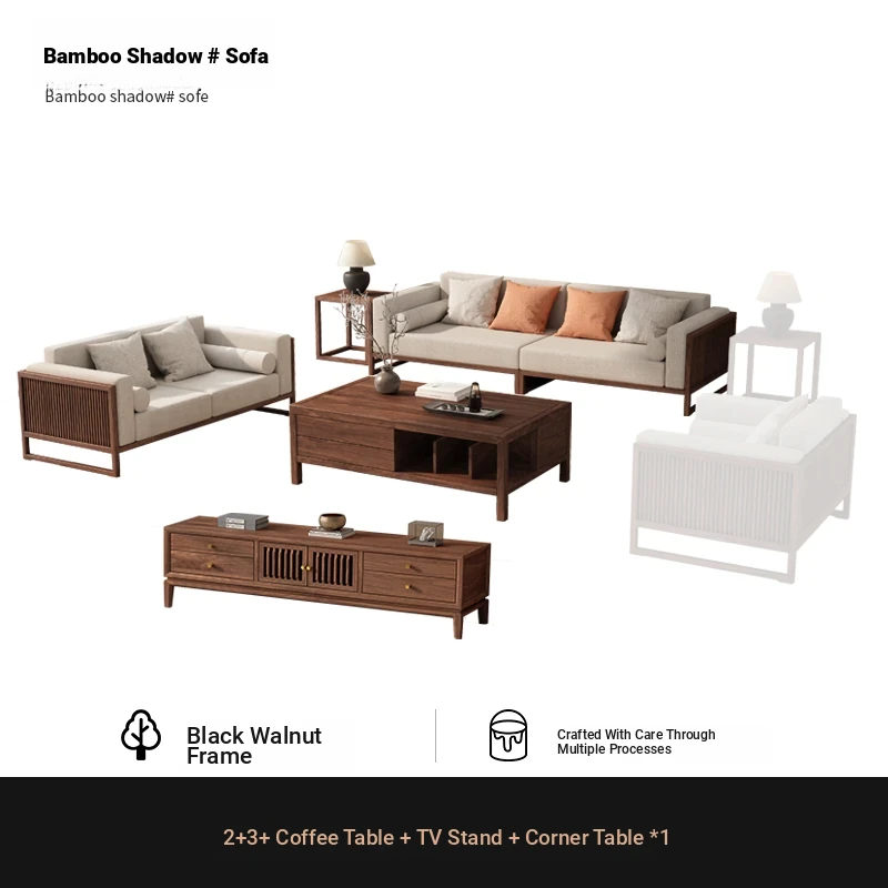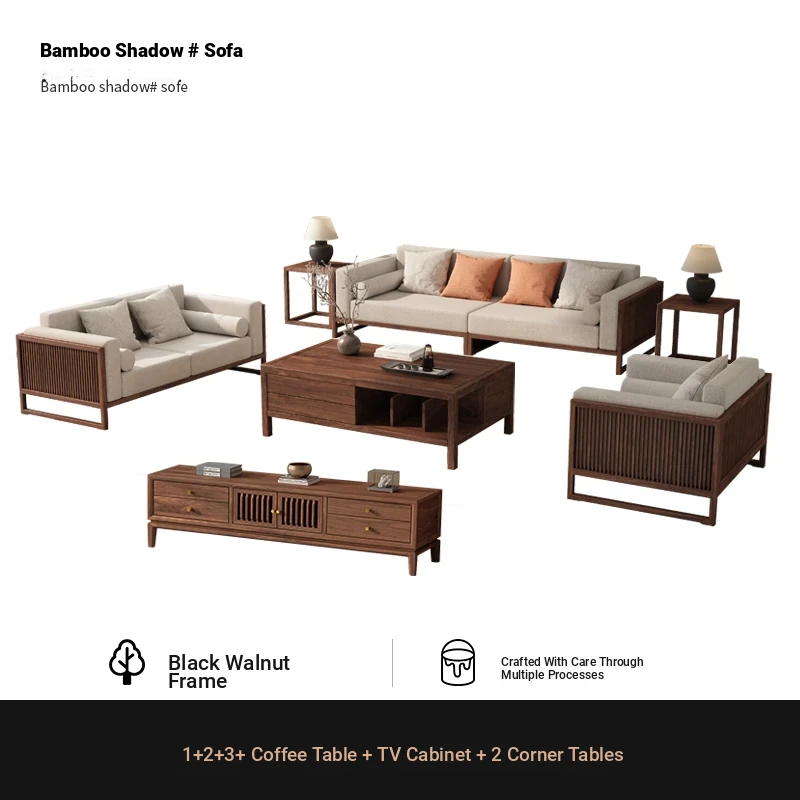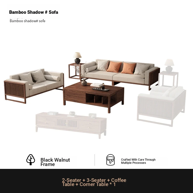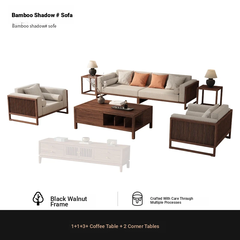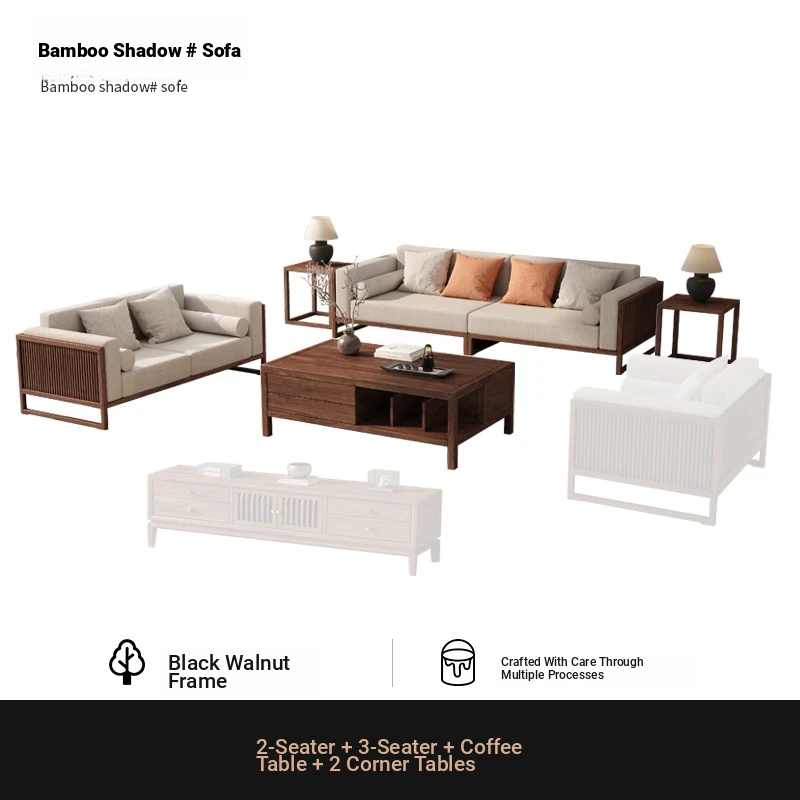 [Song Aesthetics] FAS Grade Black Walnut 2+3 + Tea Table + TV Cabinet + Corner Table * 1