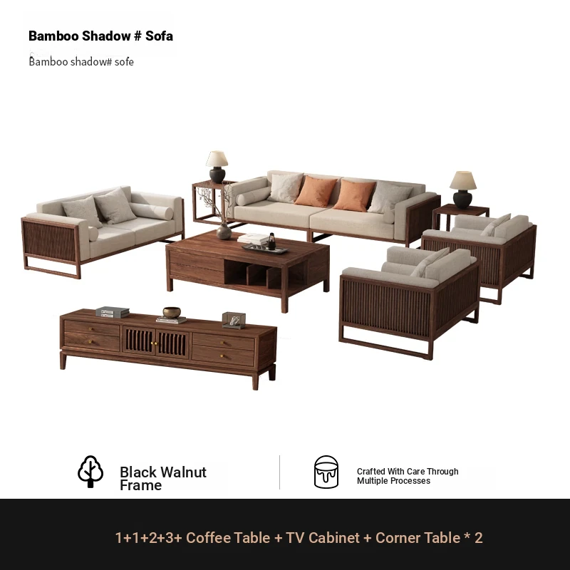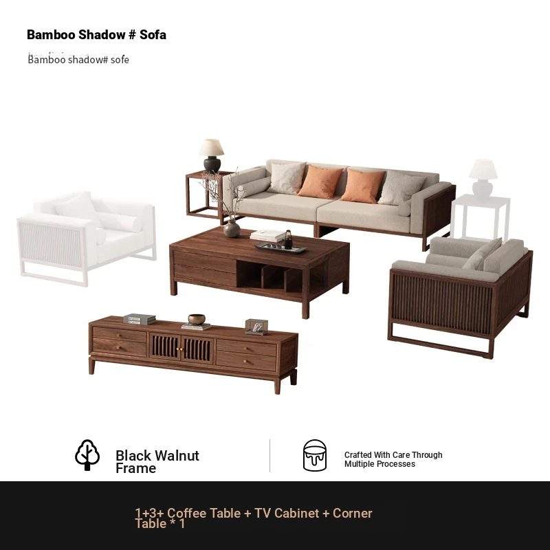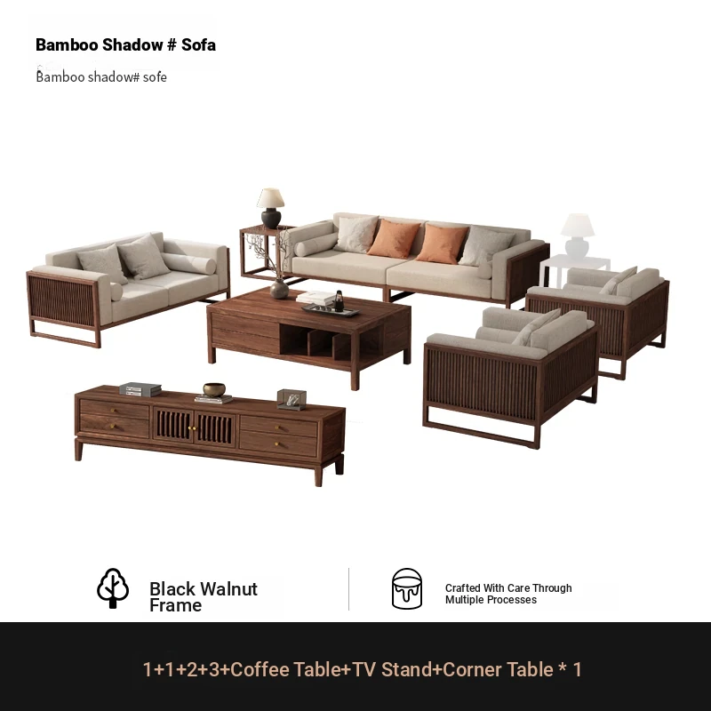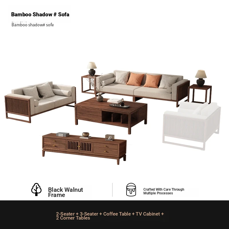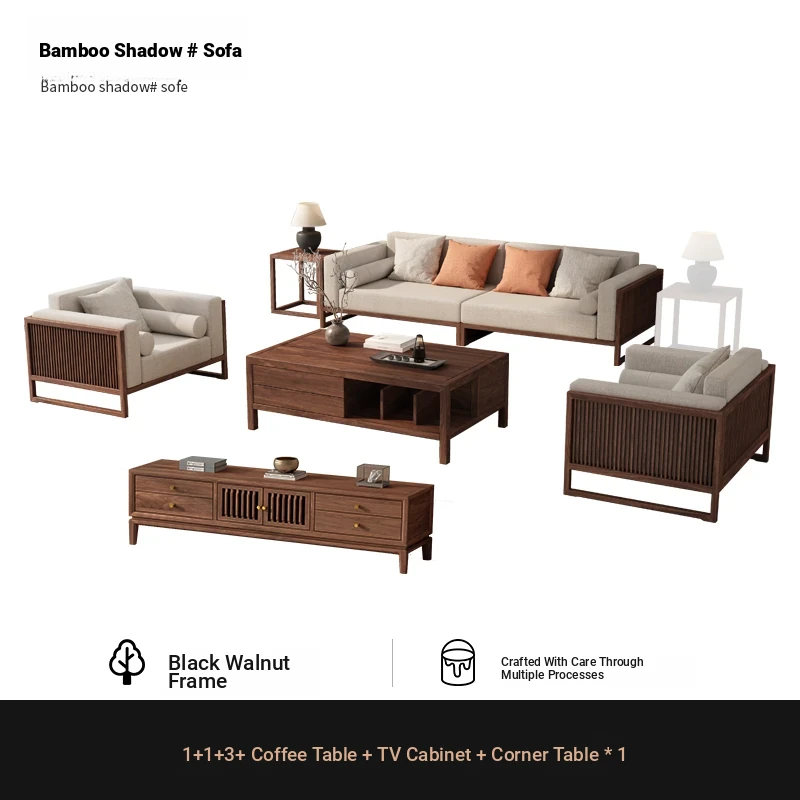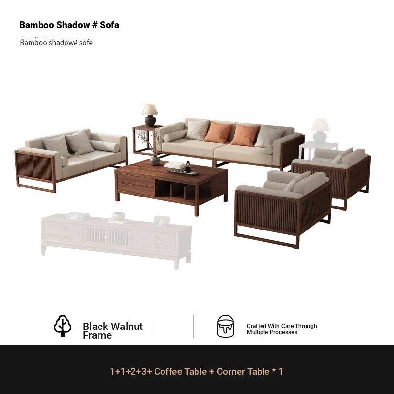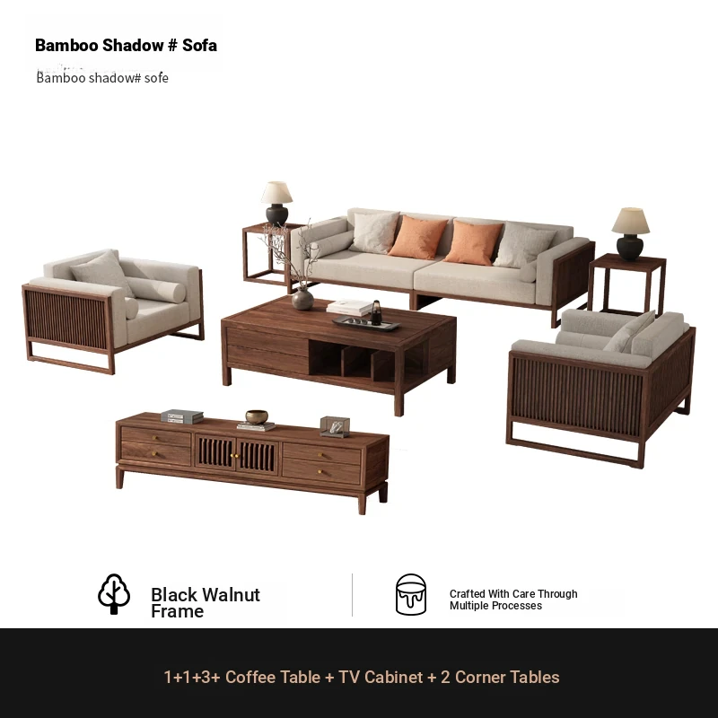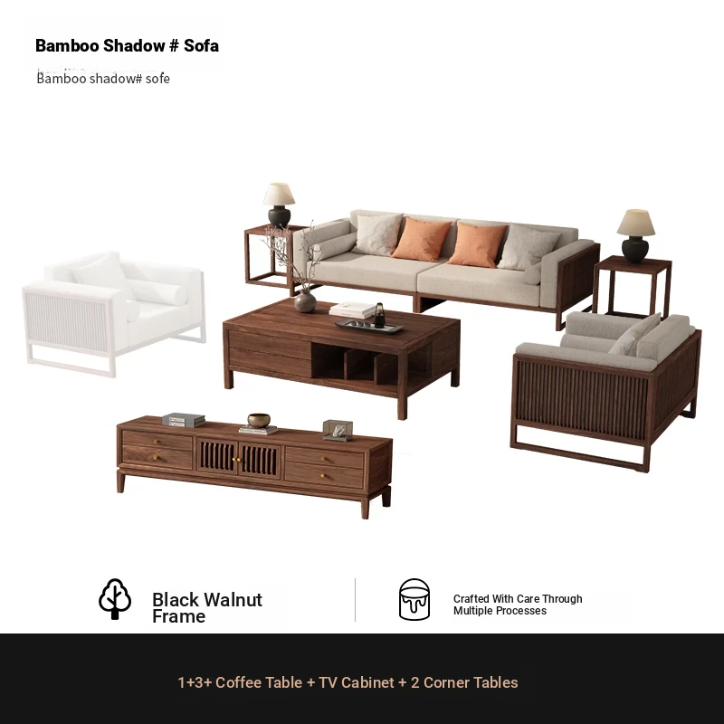 [Song Aesthetics] FAS Grade Black Walnut 2+3 + Tea Table + TV Cabinet + Corner Table * 1