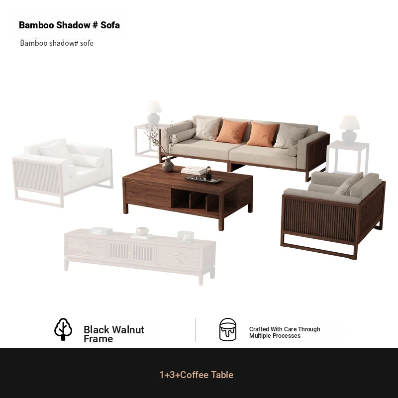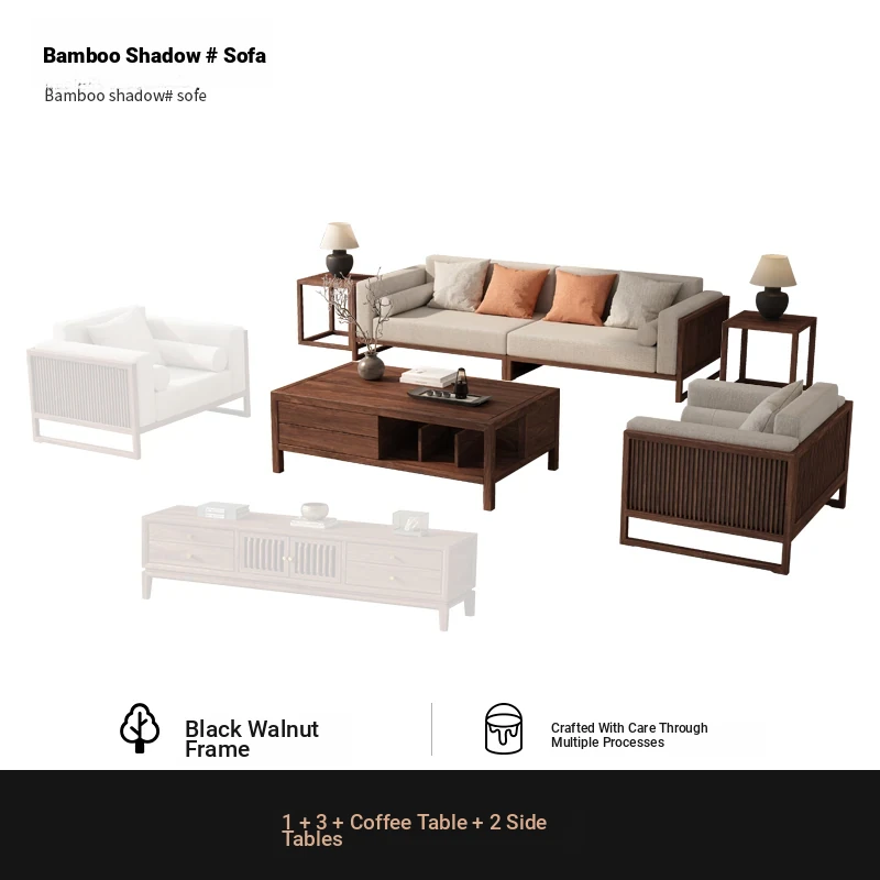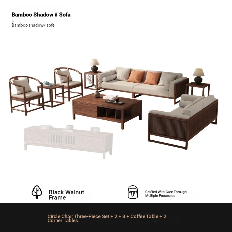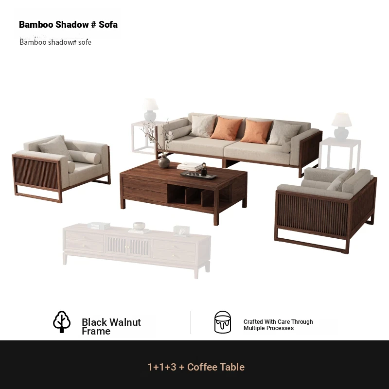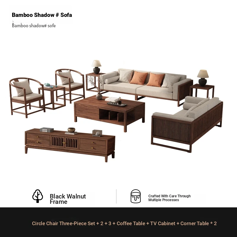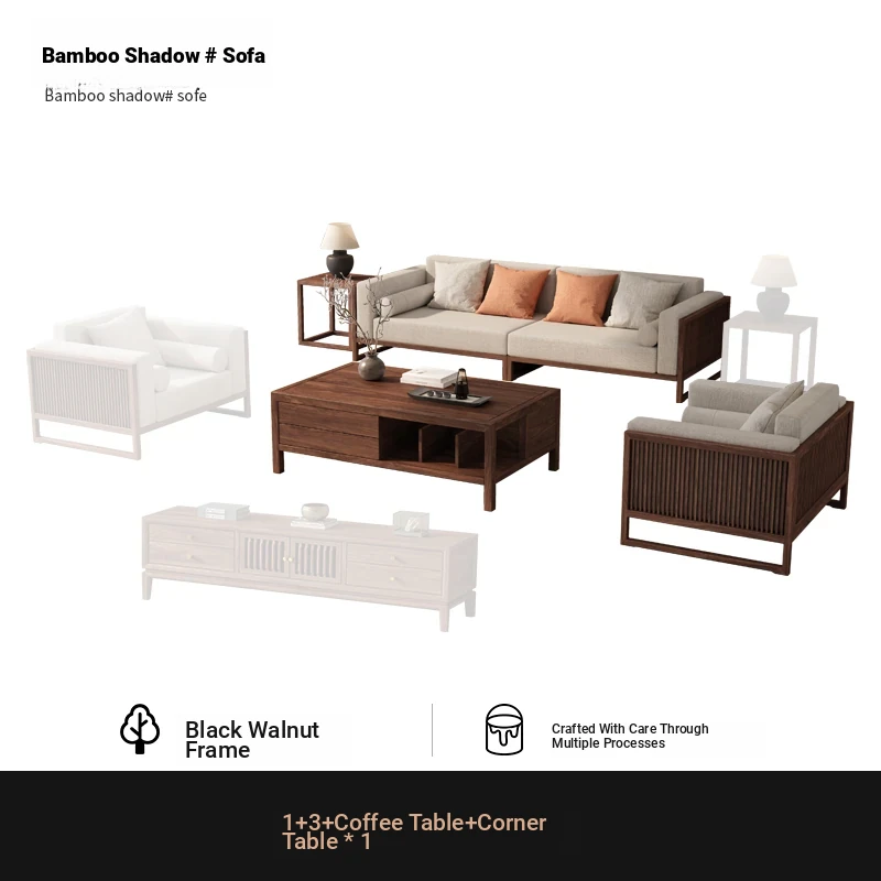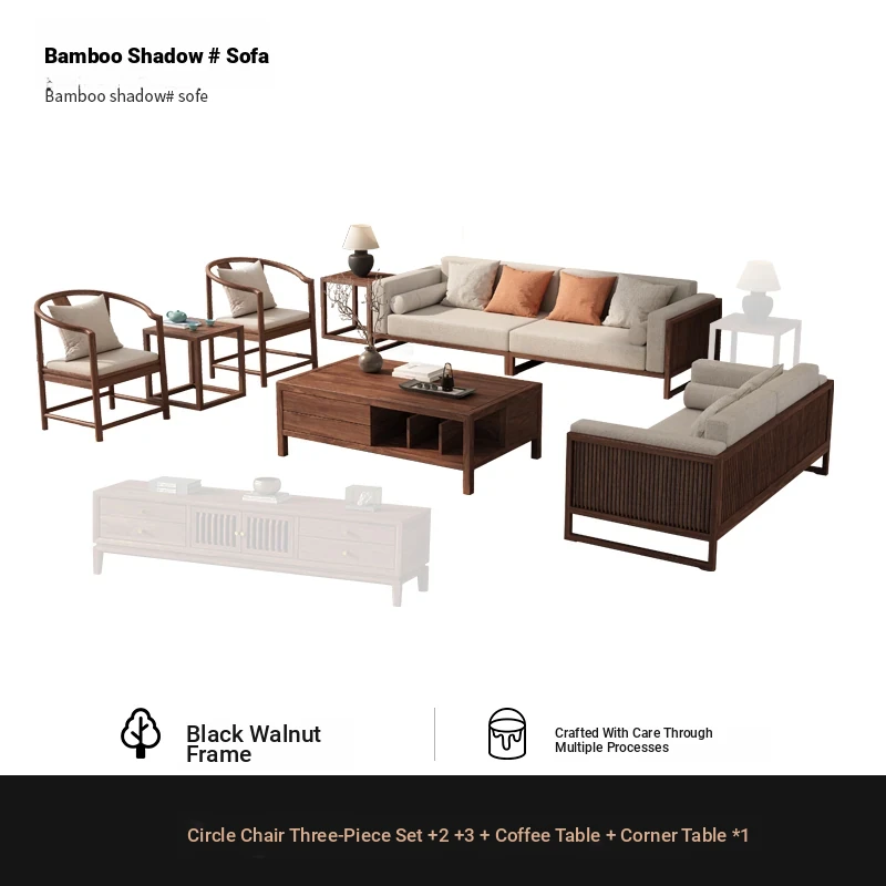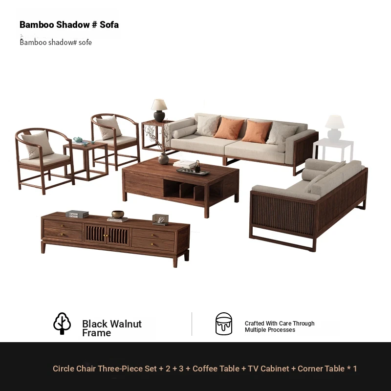 [Song Aesthetics] FAS Grade Black Walnut 2+3 + Tea Table + TV Cabinet + Corner Table * 1