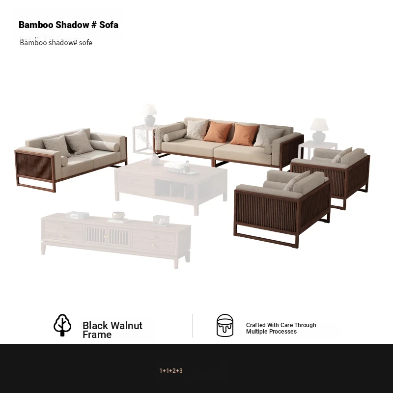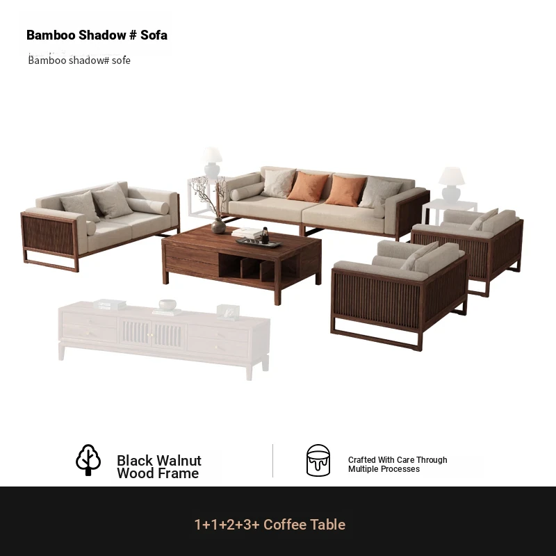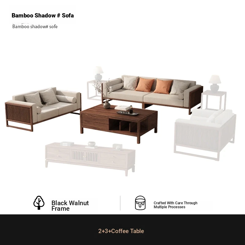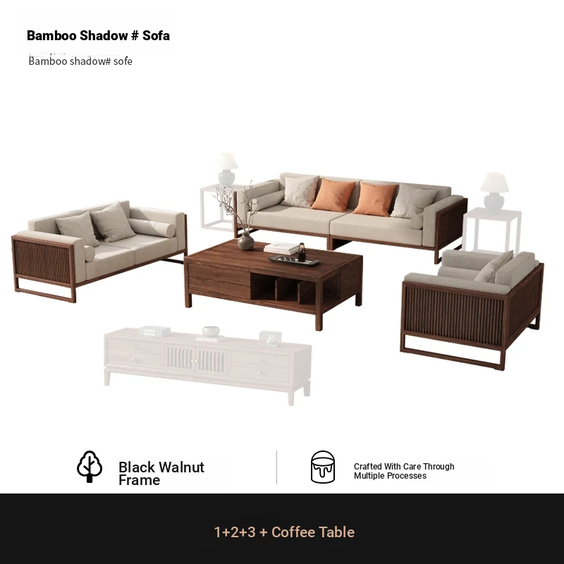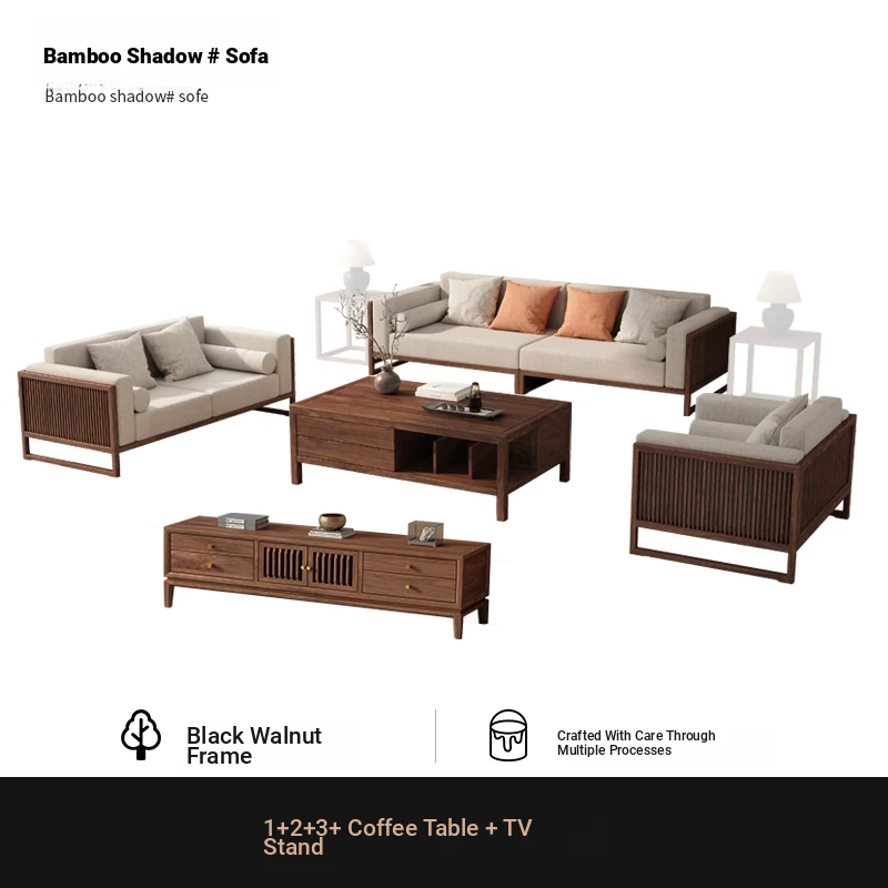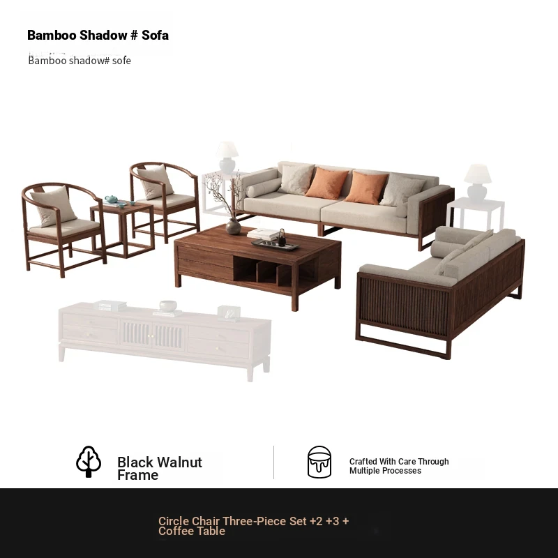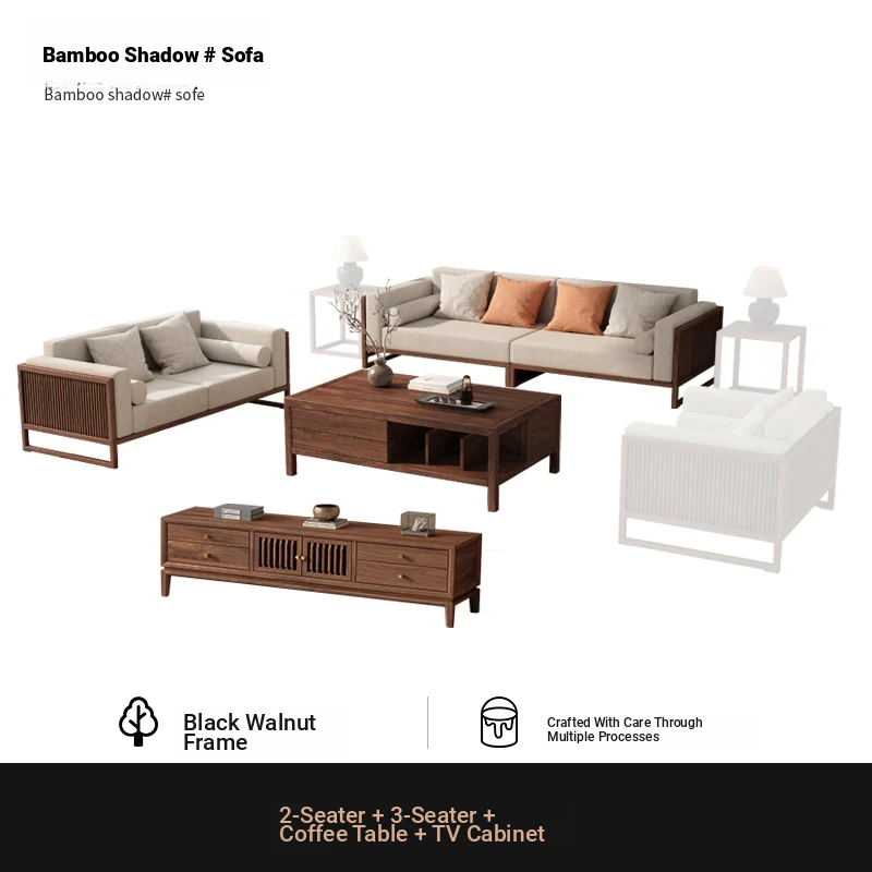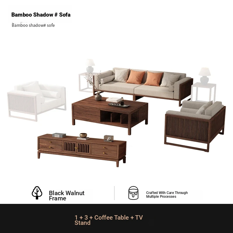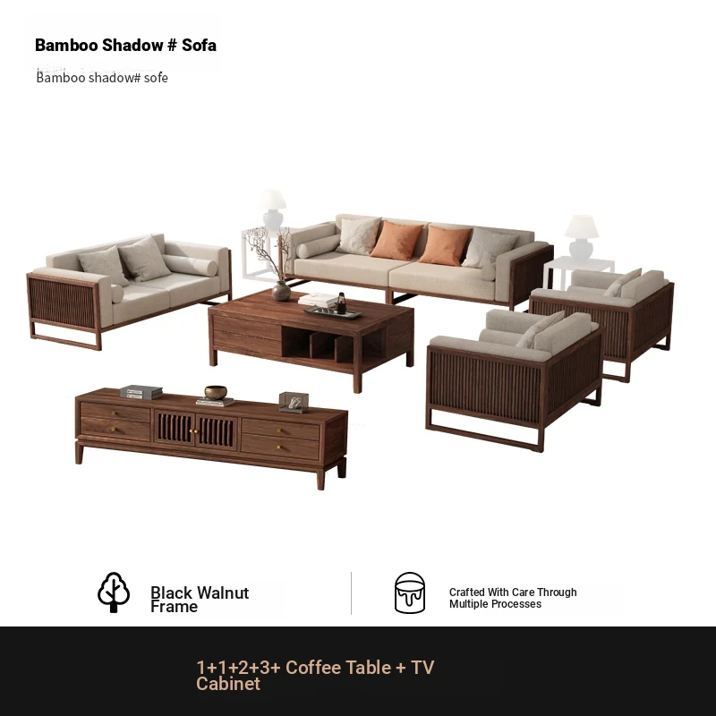 [Song Aesthetics] FAS Grade Black Walnut 2+3 + Tea Table + TV Cabinet + Corner Table * 1