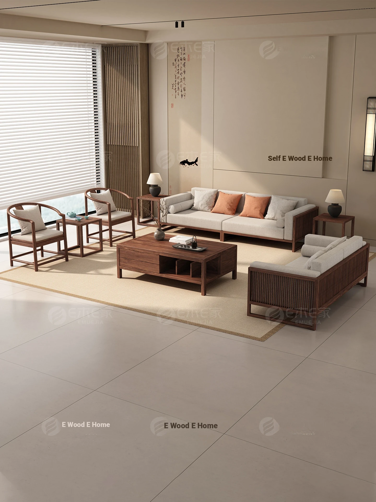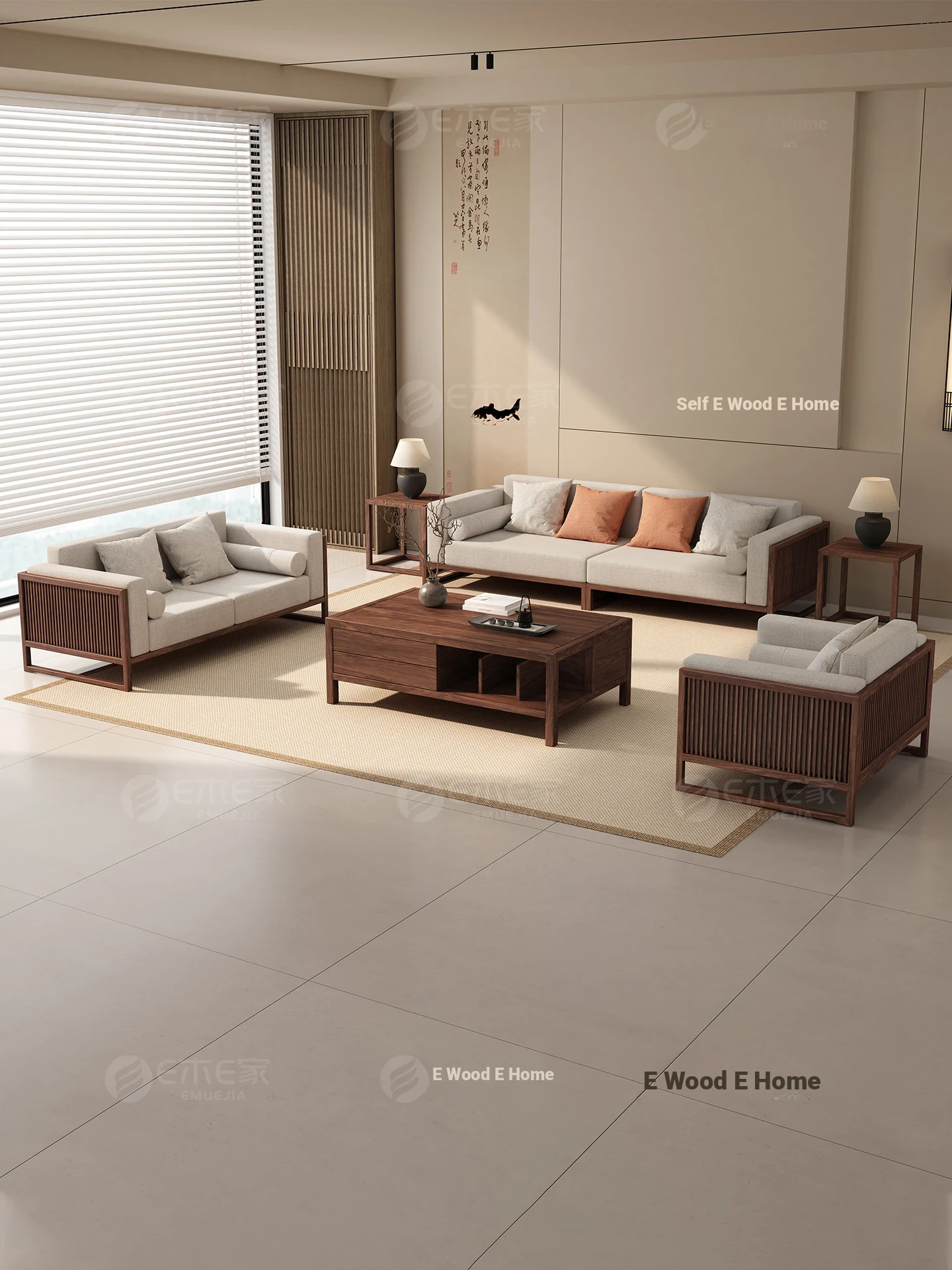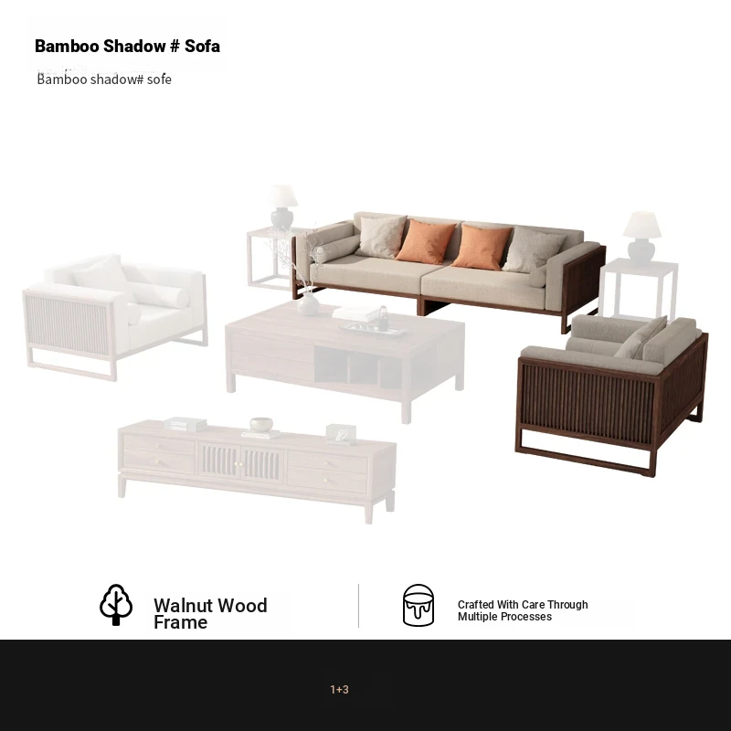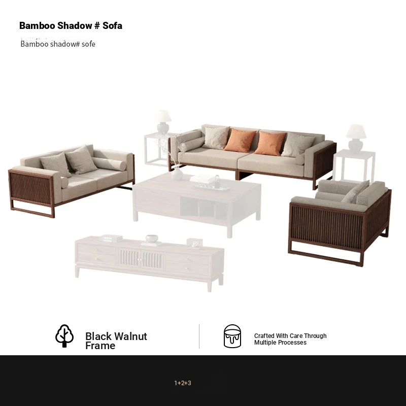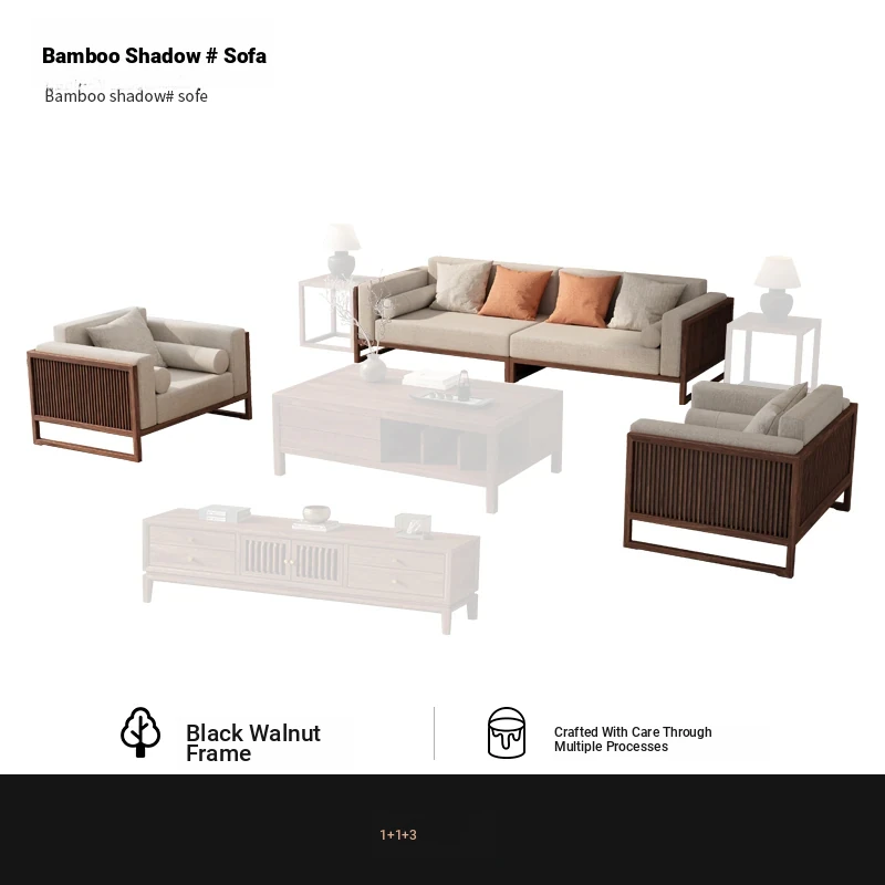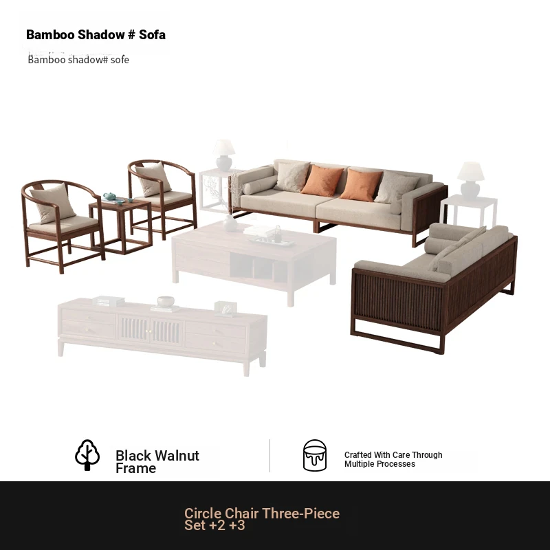 [Song Aesthetics] FAS Grade Black Walnut 2+3 + Tea Table + TV Cabinet + Corner Table * 1