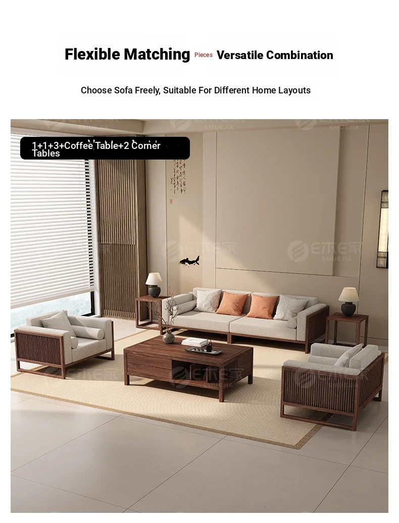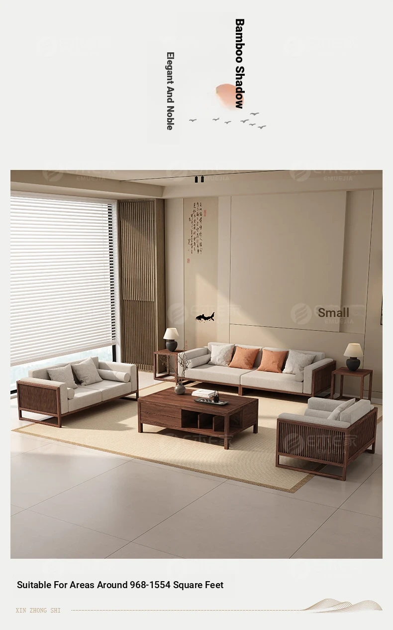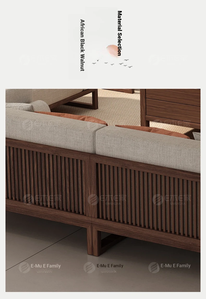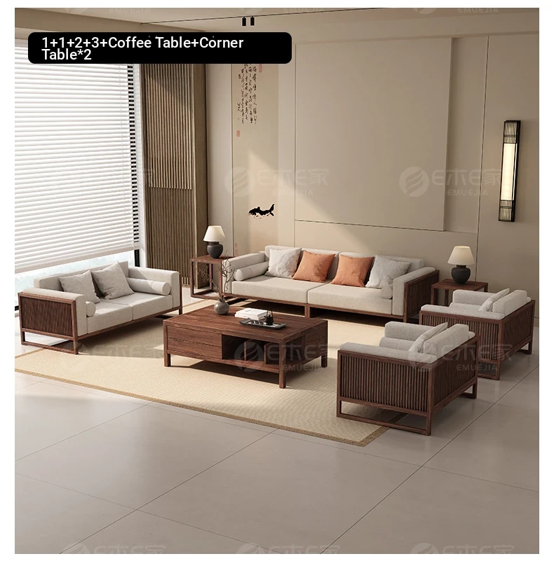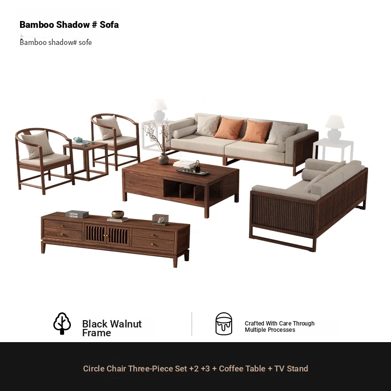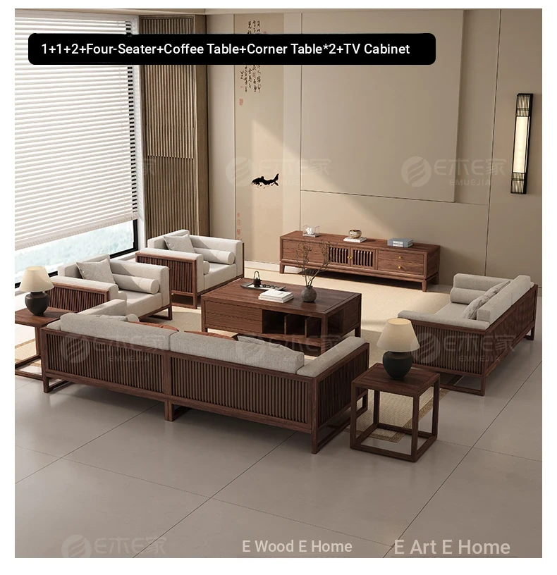 Elegant Song Style Aesthetic: South American Walnut Solid Wood Sofa Set - New Chinese-Style Living Room Furniture for Villas, Perfect for Year-Round Use in Homes
