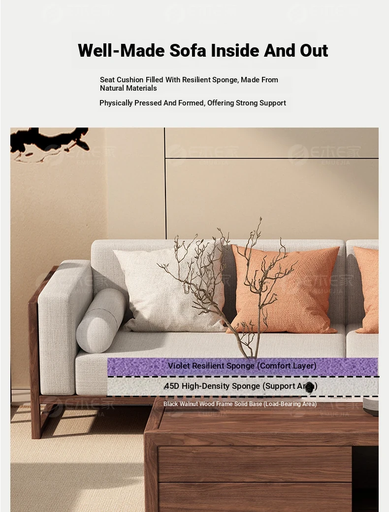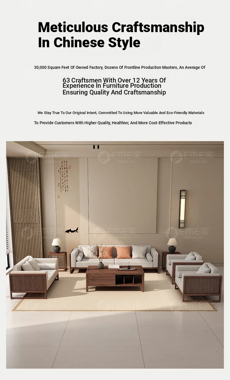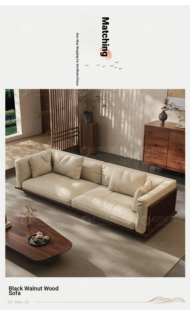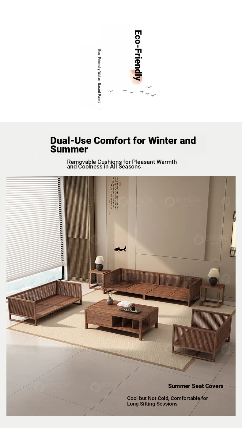 Elegant Song Style Aesthetic: South American Walnut Solid Wood Sofa Set - New Chinese-Style Living Room Furniture for Villas, Perfect for Year-Round Use in Homes