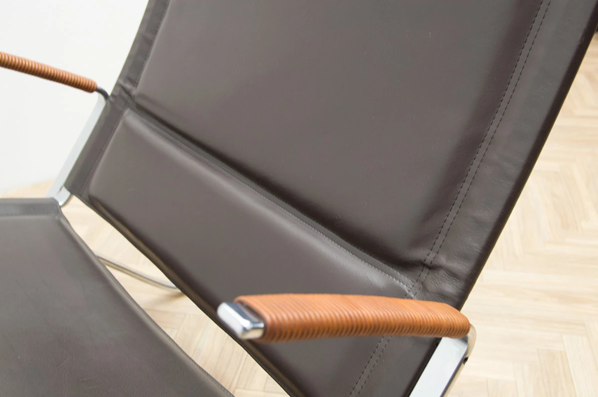 FK82 Italian Designer Single Sofa Chair - Modern Minimalist Leisure Chair with Light Luxury Stainless Steel for Relaxation and Conversations