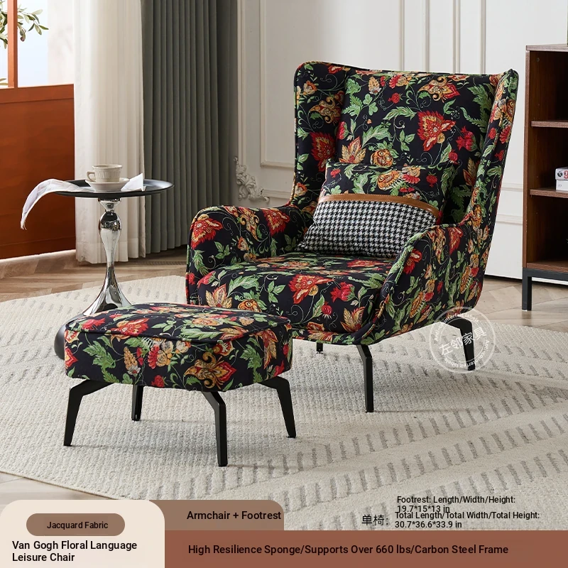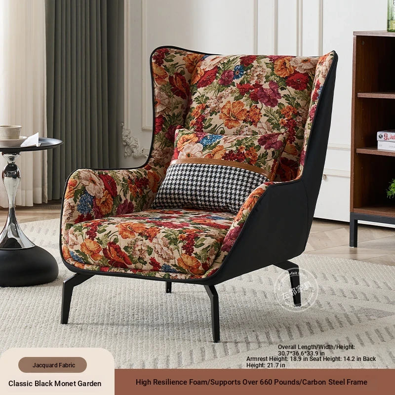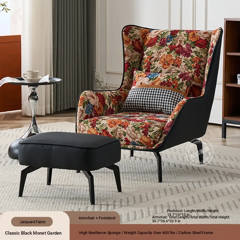 [Single Chair + Footstool] Monet Garden & Classic Black-Plus Edition Pillow