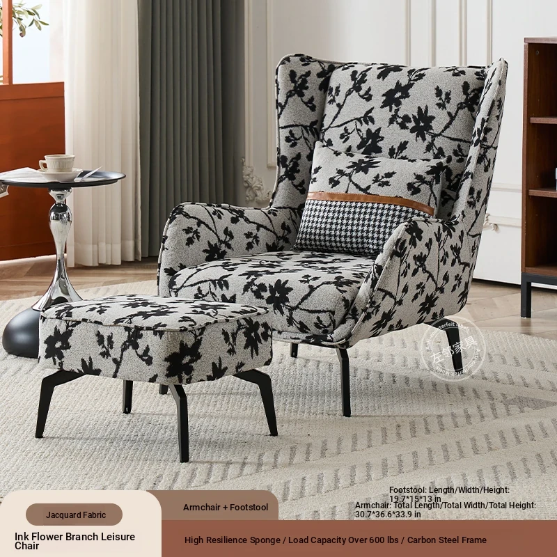[Single Chair + Footstool] Ink Flower Branch-Plus Edition Pillow