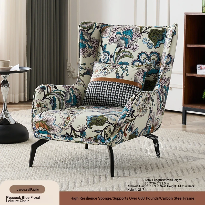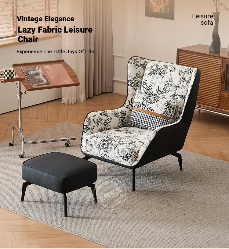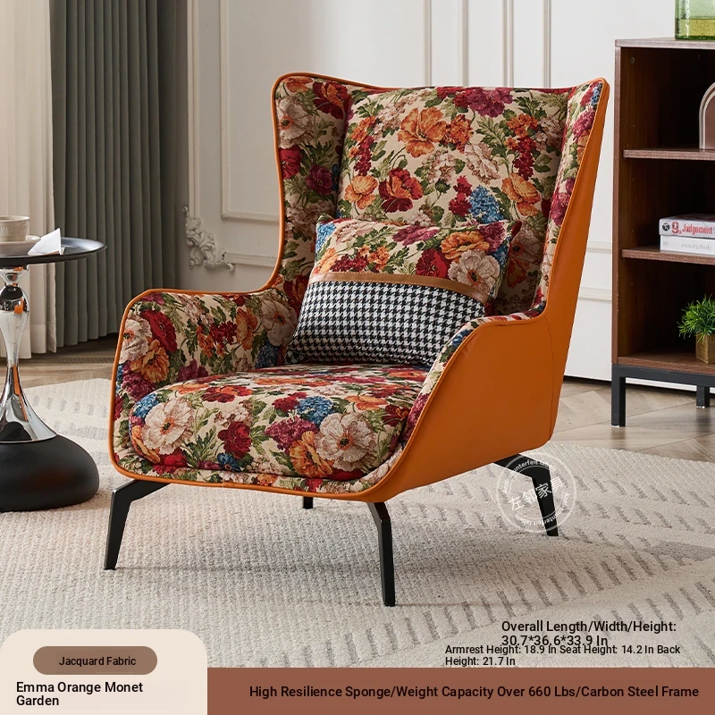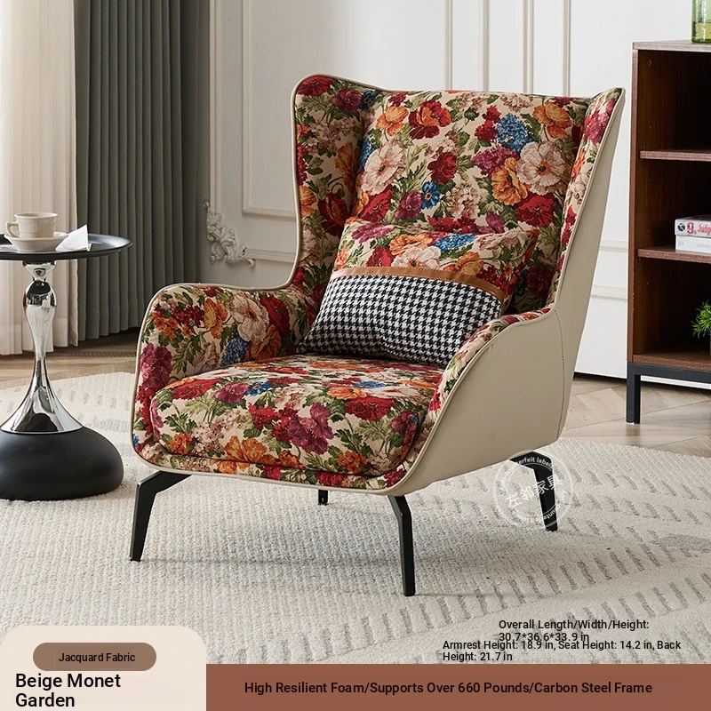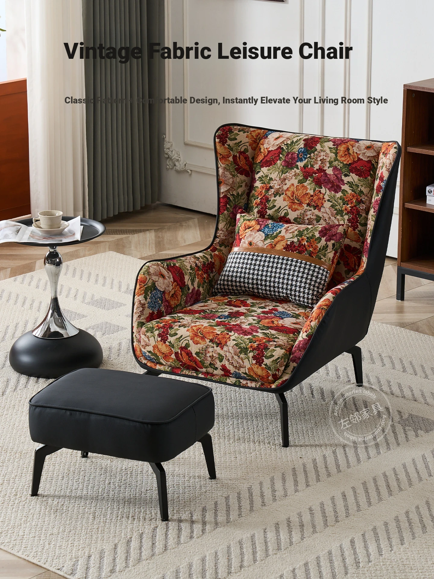 French Style Single Sofa Chair - Cozy Leisure Couch for Living Room & Balcony, Retro Fabric Armchair Perfect for Small Spaces