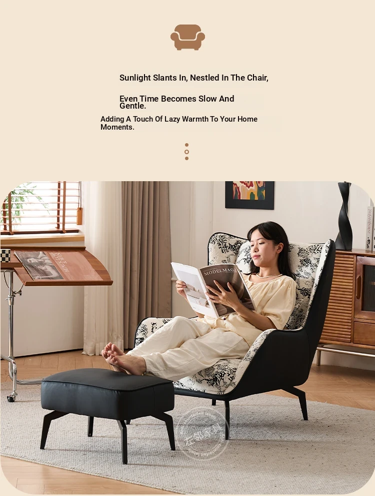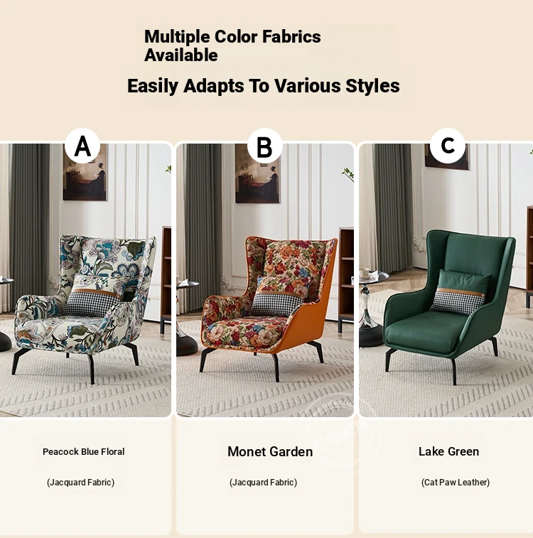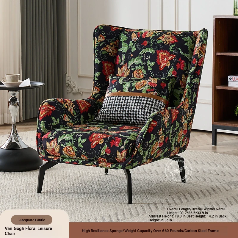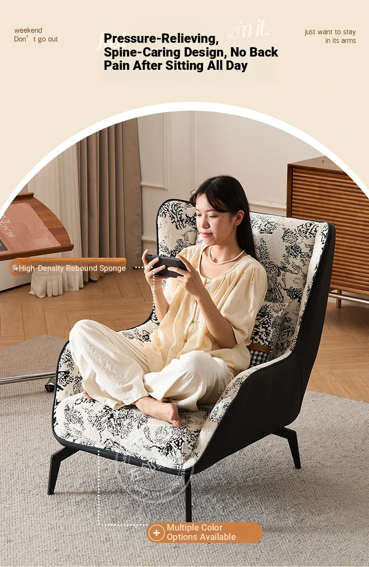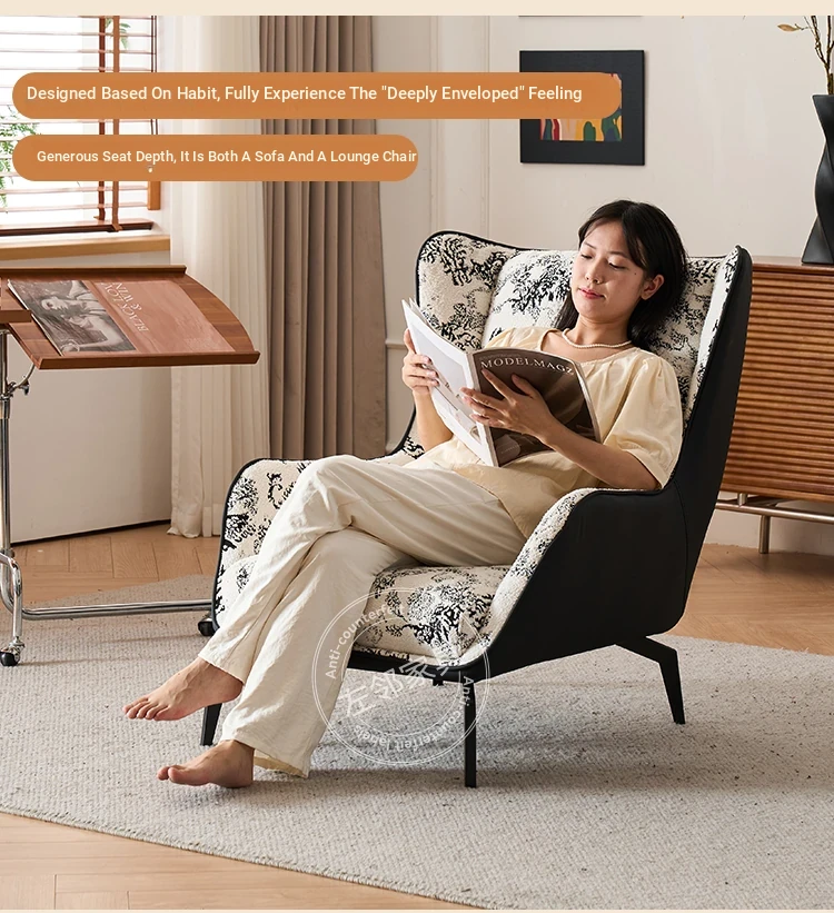 French Style Single Sofa Chair - Cozy Leisure Couch for Living Room & Balcony, Retro Fabric Armchair Perfect for Small Spaces
