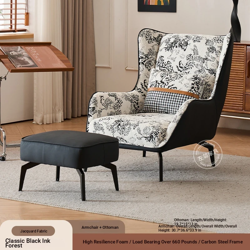 [Single Chair + Footstool] Classic Black & Ink Forest-Plus Edition Pillow