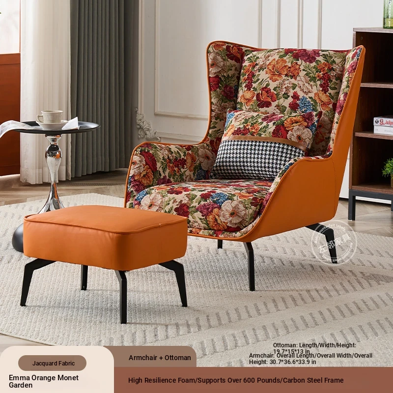 [Single Chair + Footstool] Monet Garden & Eina Orange-Plus Edition Pillow
