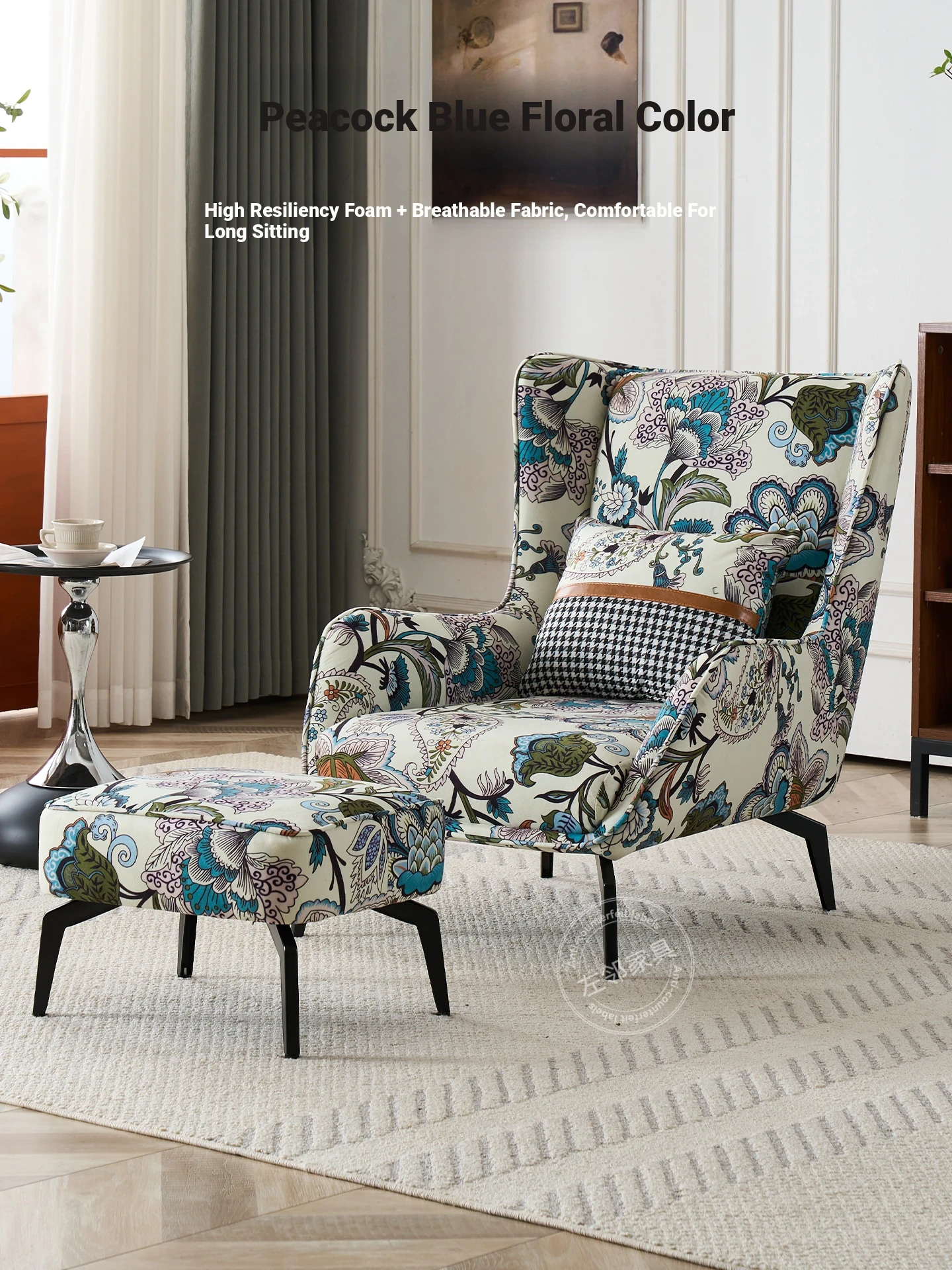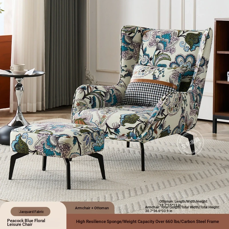 [Single Chair + Footstool] Peacock Blue Flower-Plus Edition Pillow