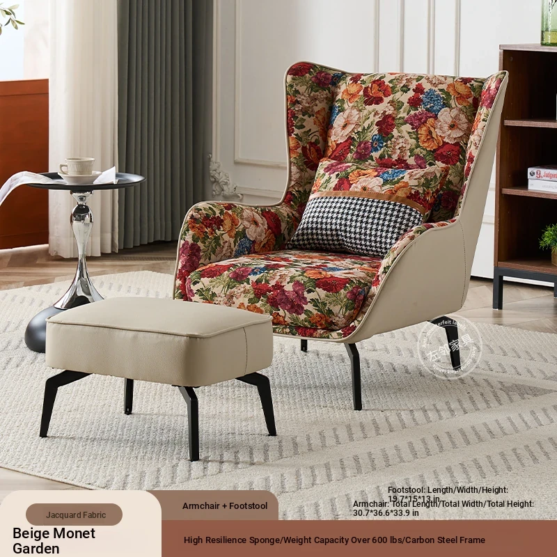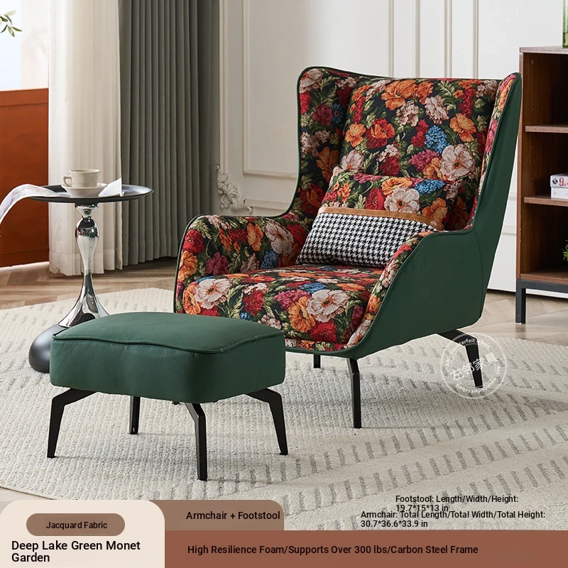 [Single Chair + Footstool] Monet Garden & Deep Lake Green-Plus Edition Pillow