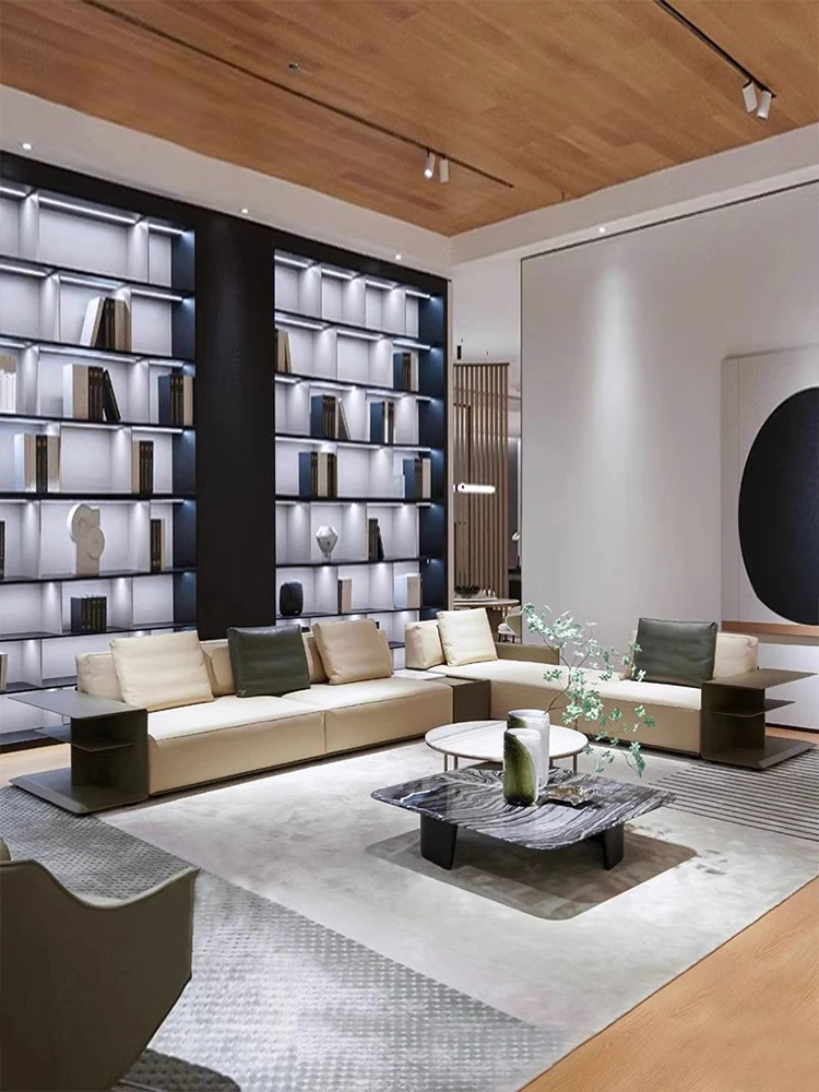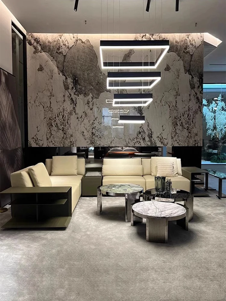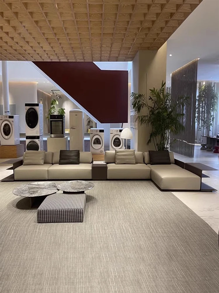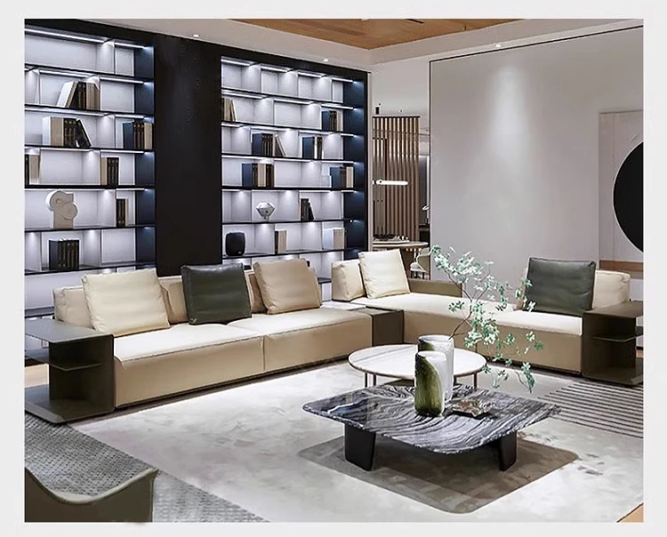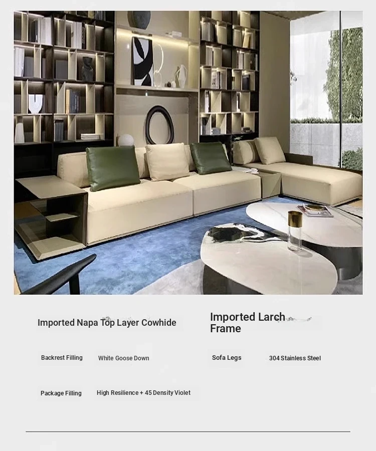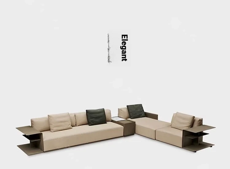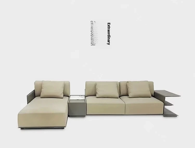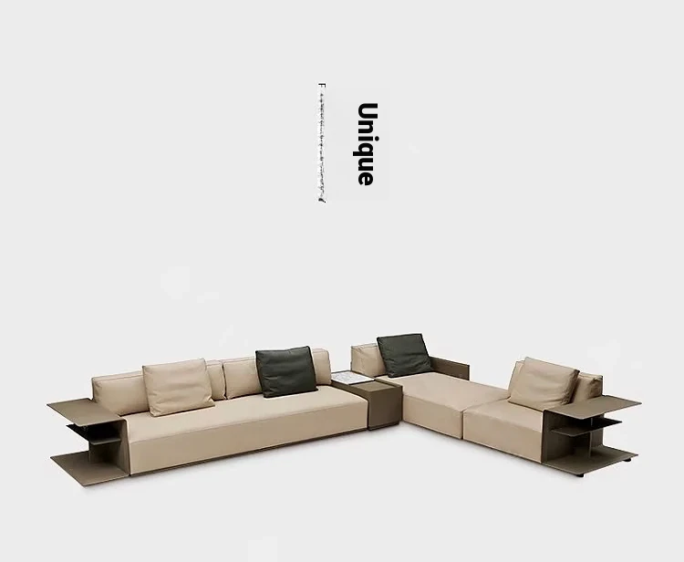 Genuine Leather Sofa - Premium Italian Minimalist Chaise Lounge Corner Set for Spacious Living Rooms - Luxurious Jellyfish Design in Top Grain Cowhide