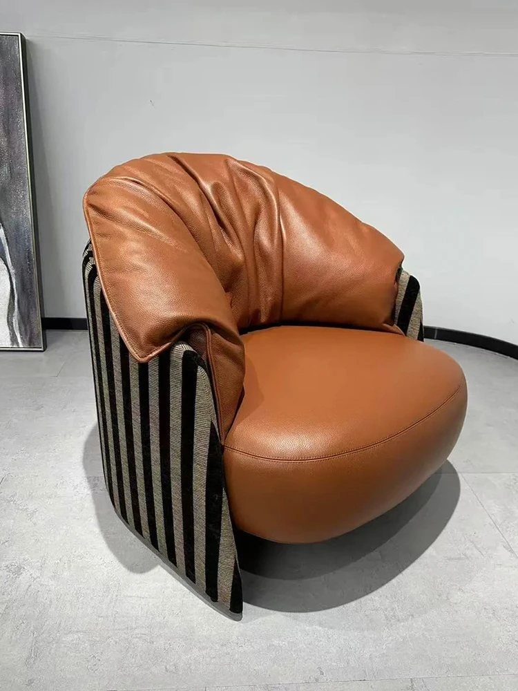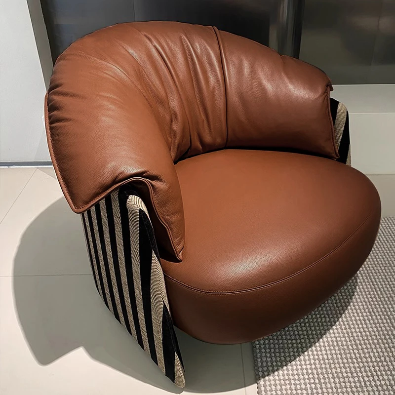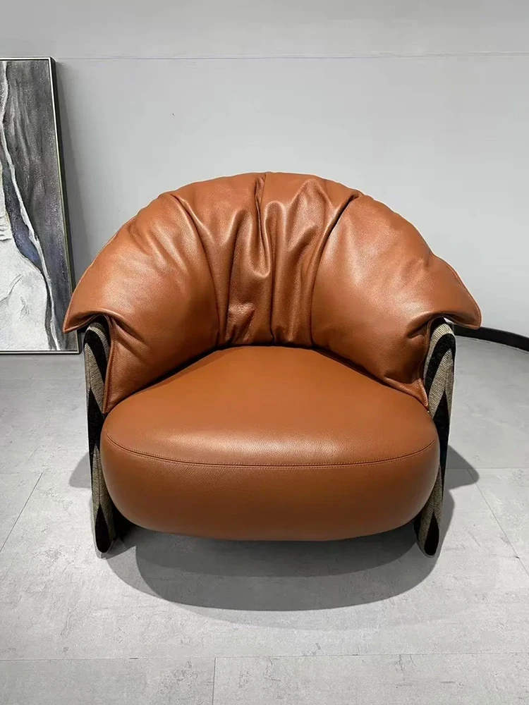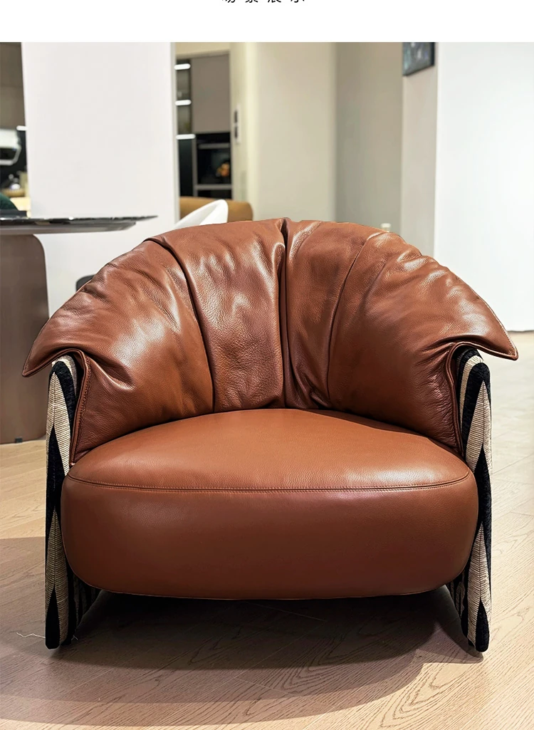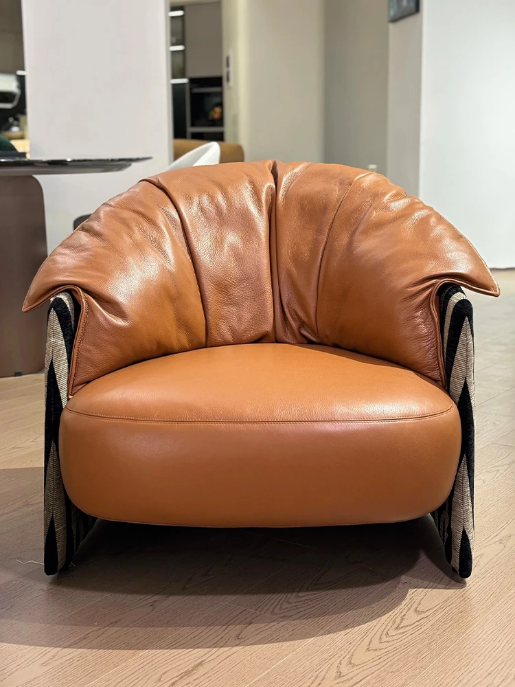 Italian Minimalist Single Leisure Chair - Designer Leather Sofa, Luxurious Down-Filled Genuine Leather Armchair for Stylish Living Rooms