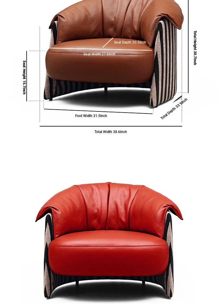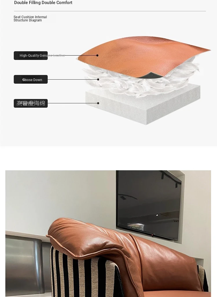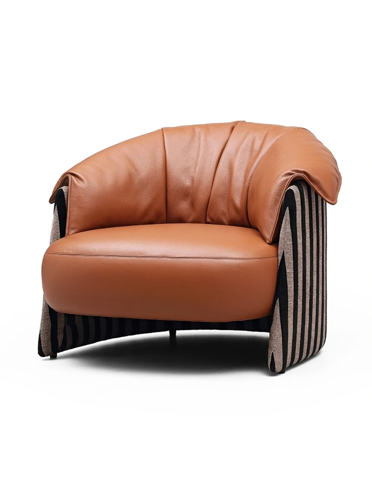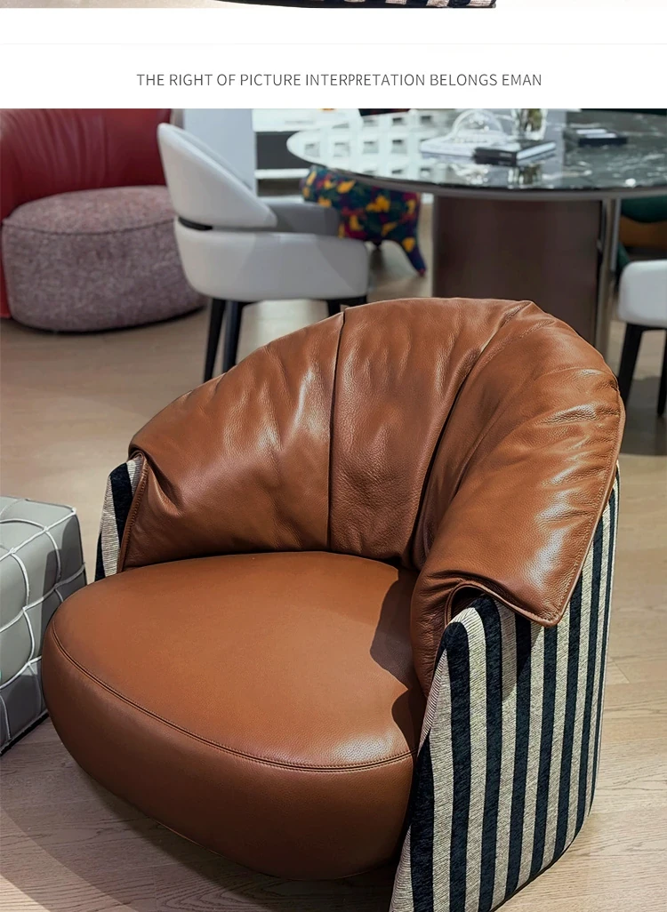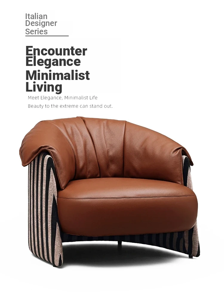 Italian Minimalist Single Leisure Chair - Designer Leather Sofa, Luxurious Down-Filled Genuine Leather Armchair for Stylish Living Rooms