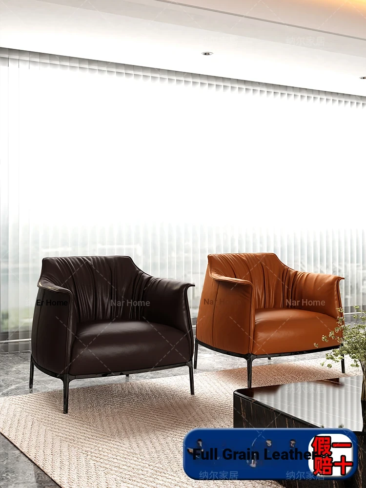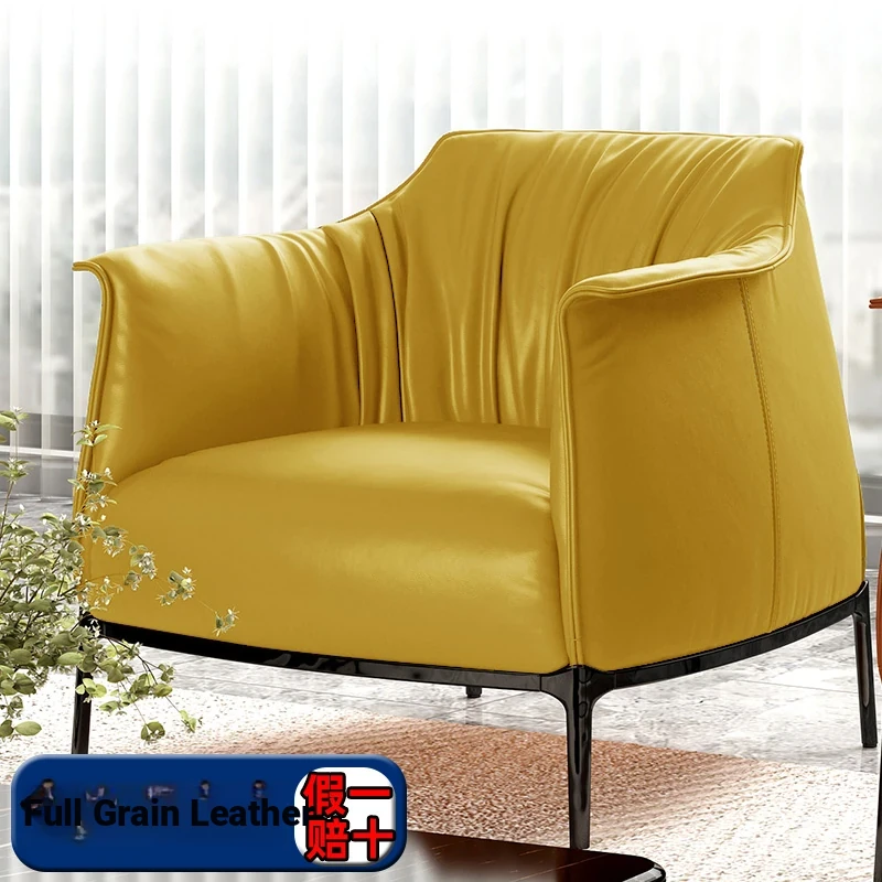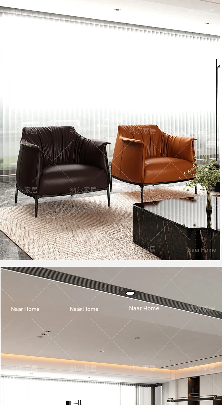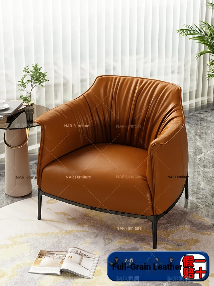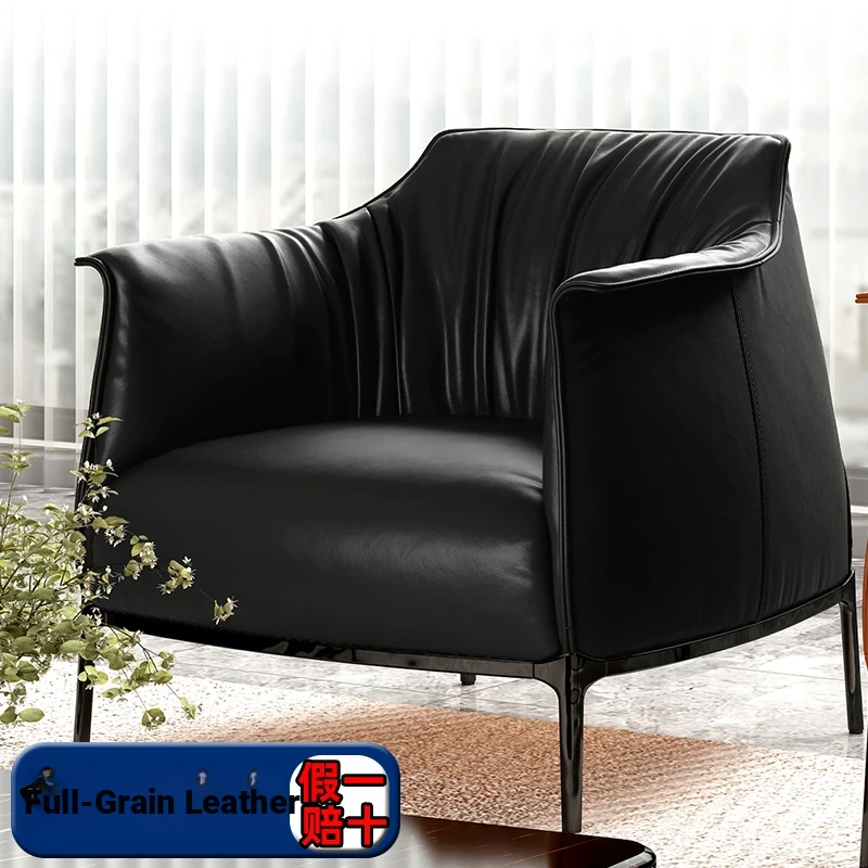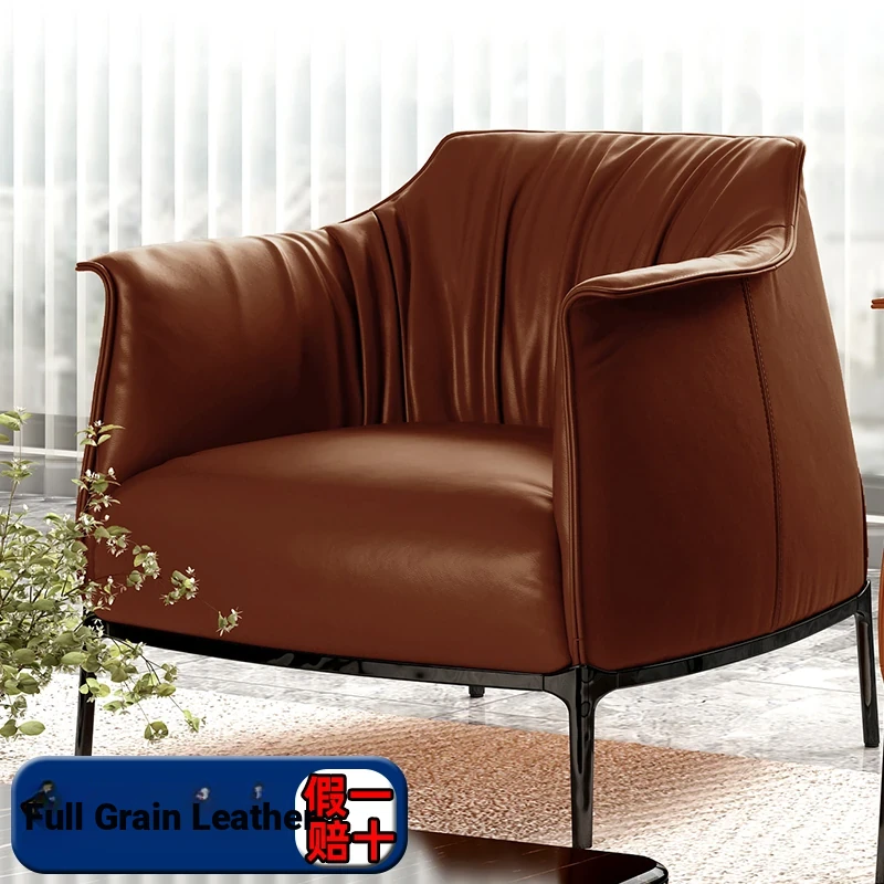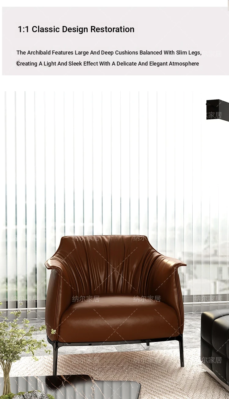 Italian Nordic Minimalist Archibald Single Sofa - Designer Genuine Leather Lounge Chair for Living Room and Balcony, Perfect for Relaxation and Conversations