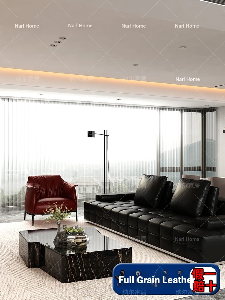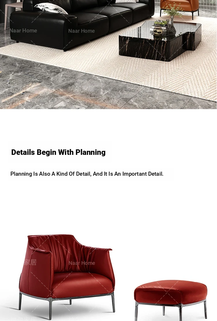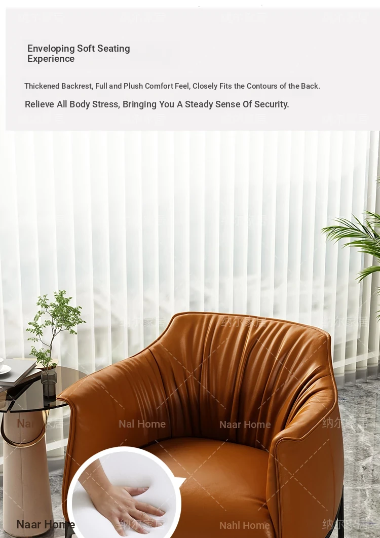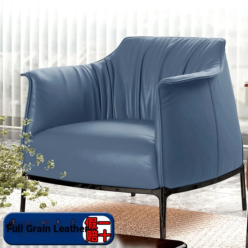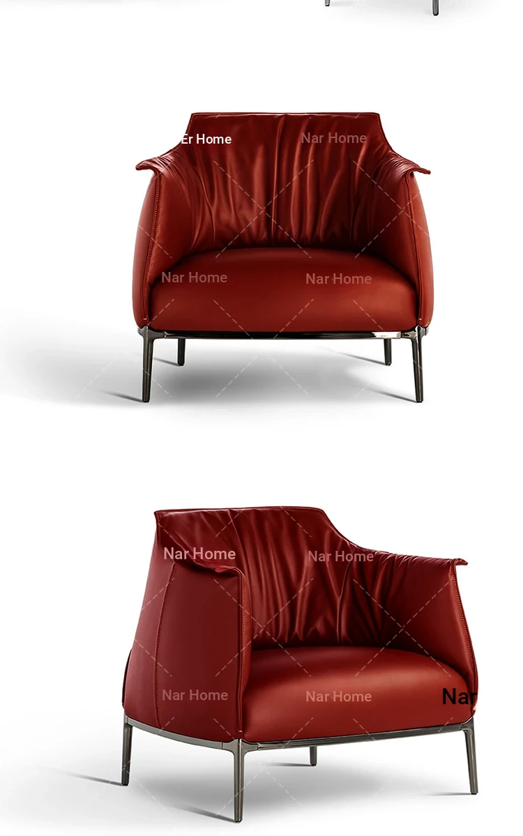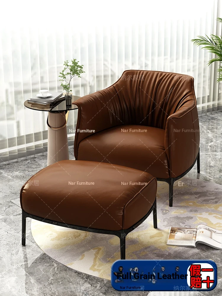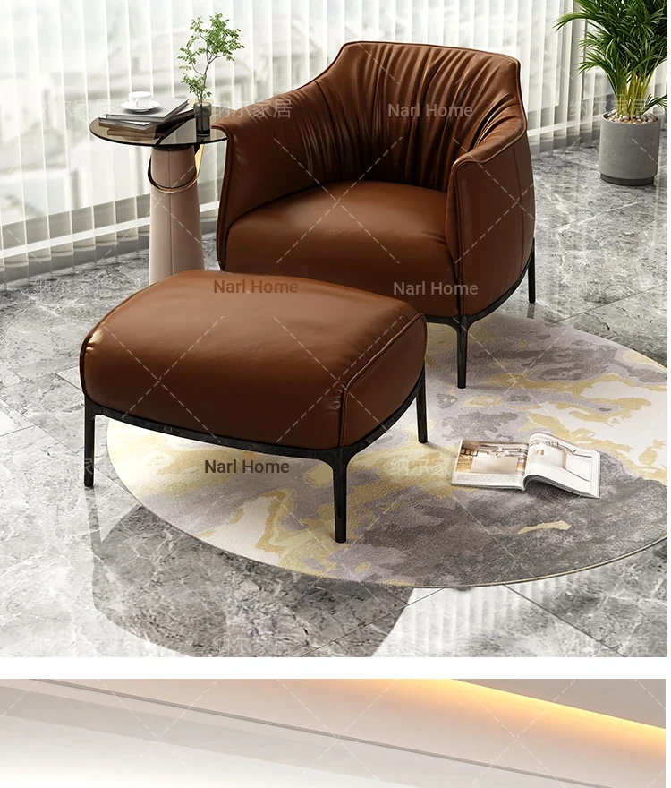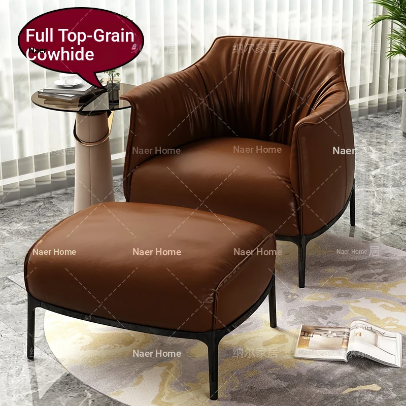 Italian Nordic Minimalist Archibald Single Sofa - Designer Genuine Leather Lounge Chair for Living Room and Balcony, Perfect for Relaxation and Conversations