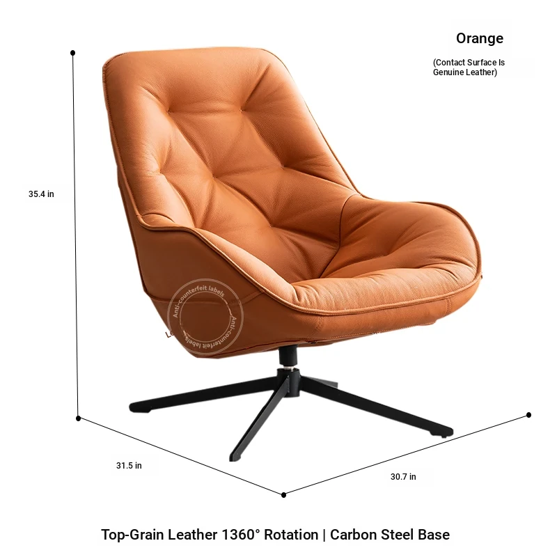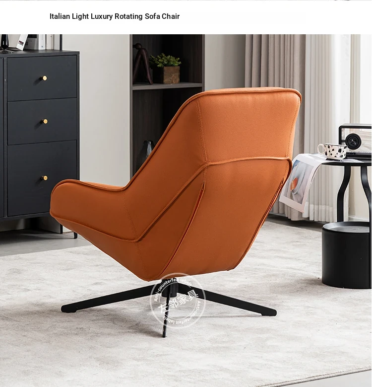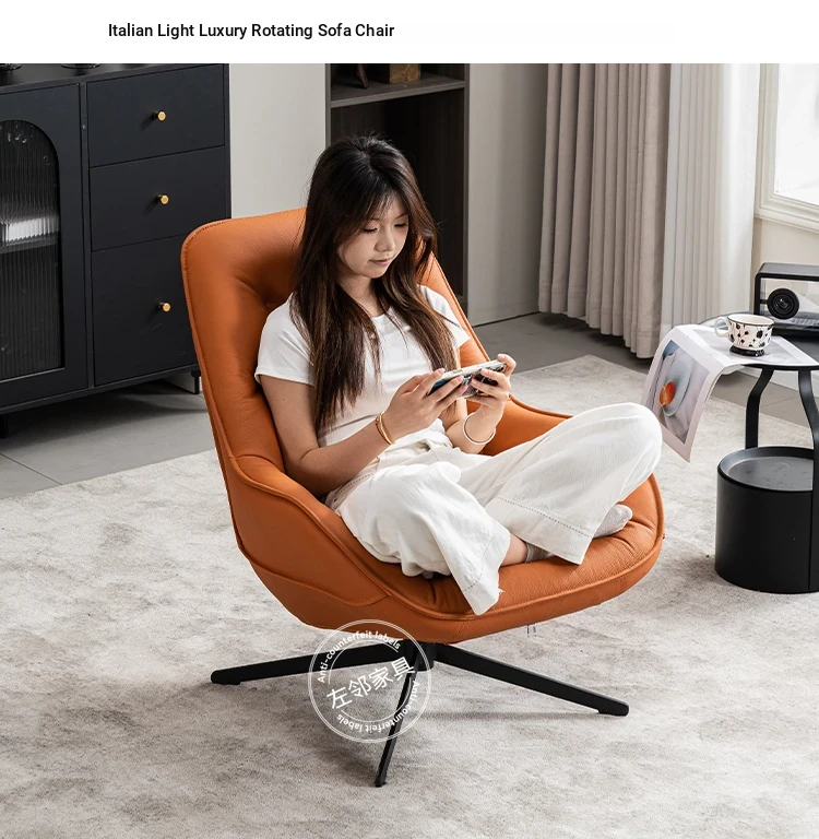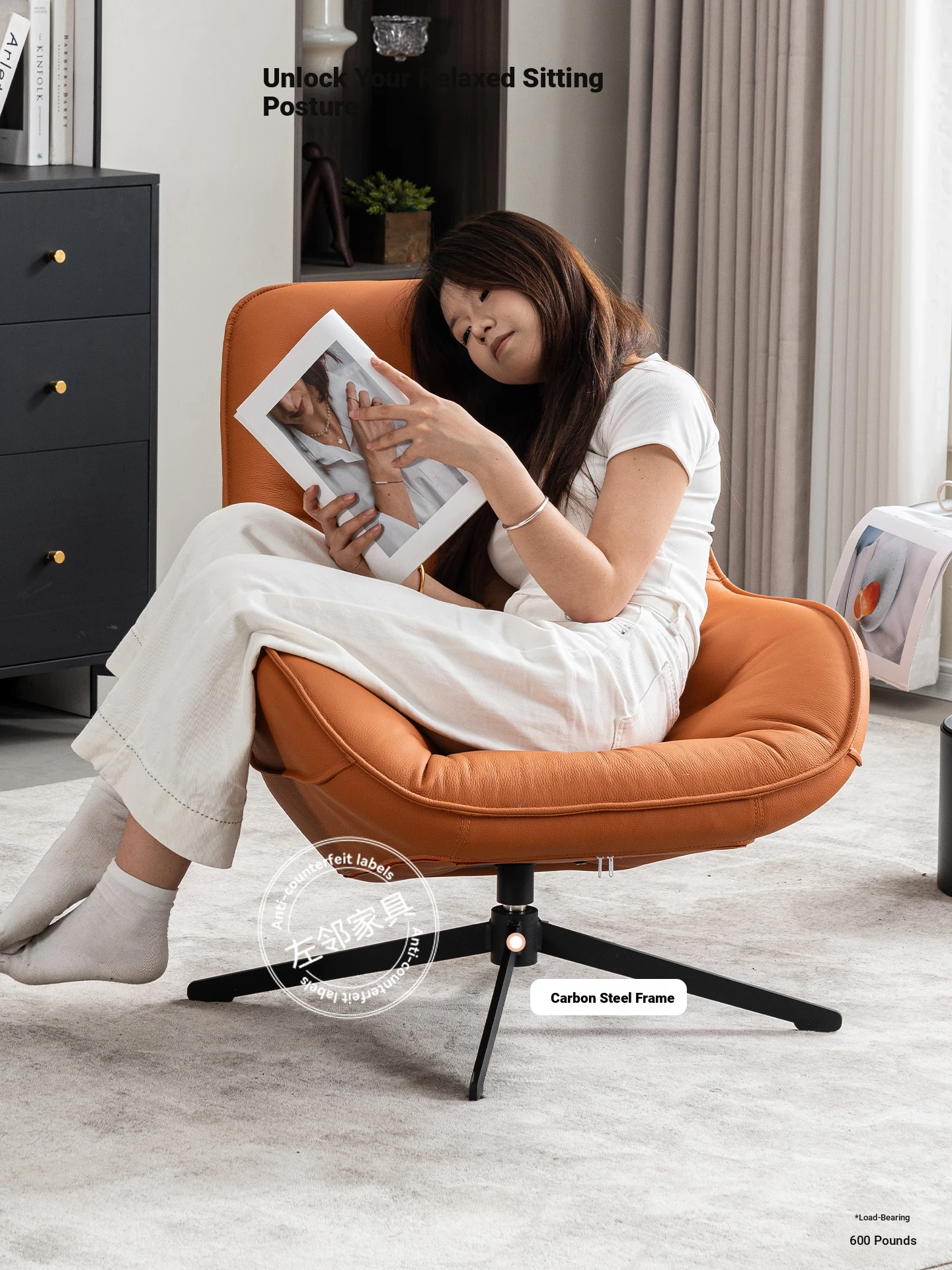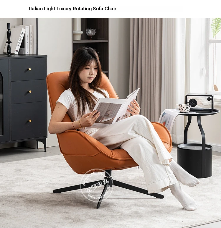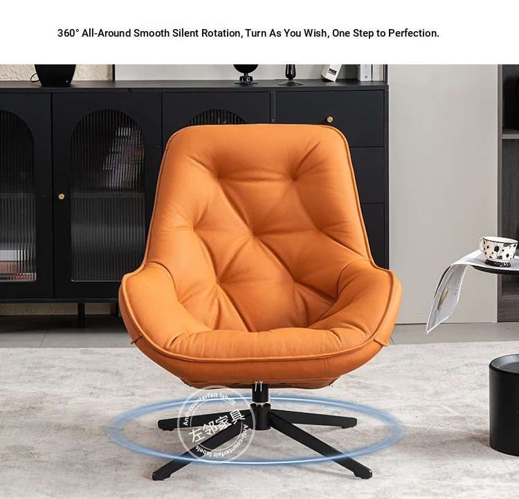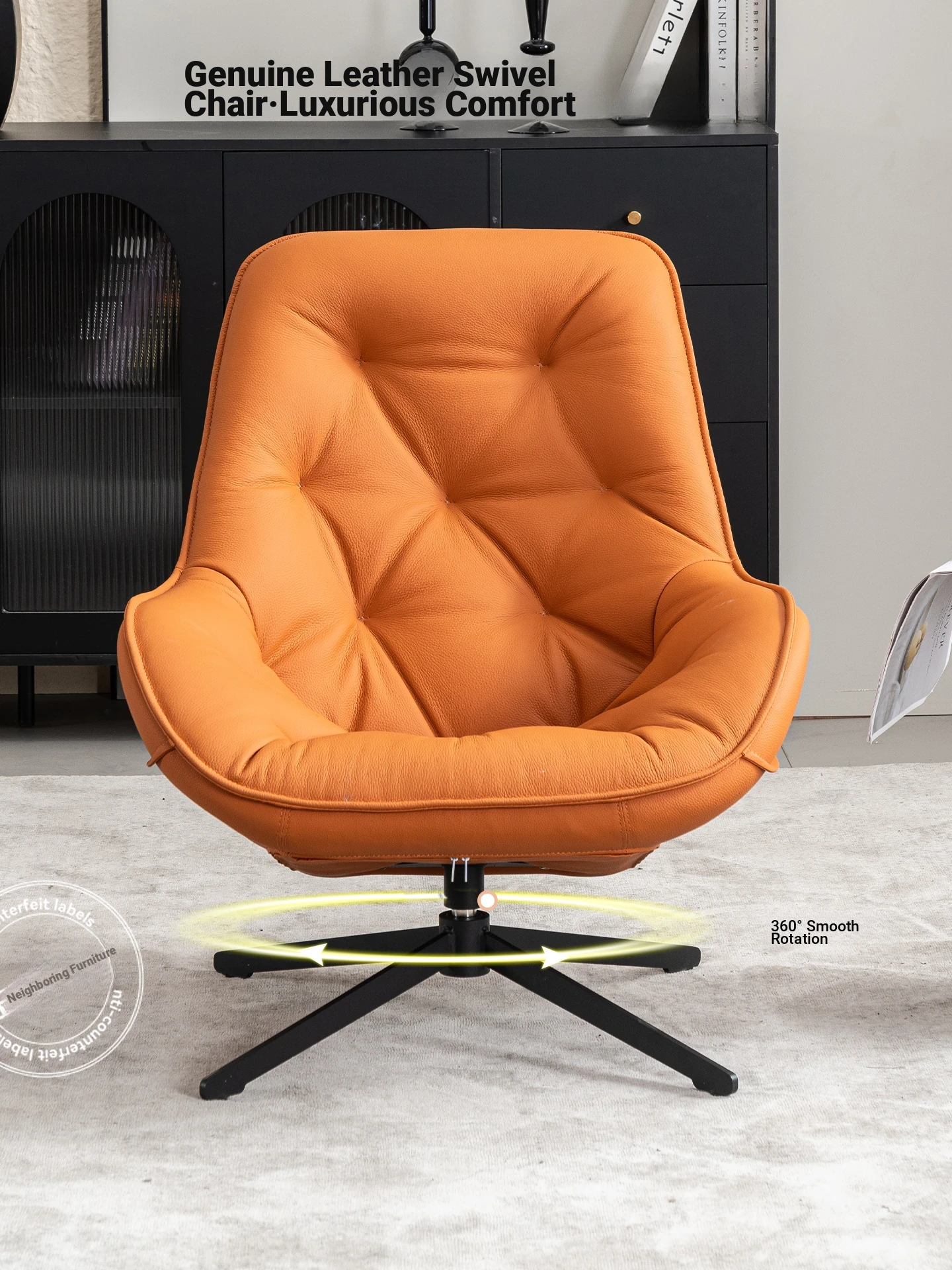 Italian Single-Seat Swivel Sofa Chair - Luxurious Genuine Leather Lounge Chair for Living Room, Home, and Balcony Relaxation