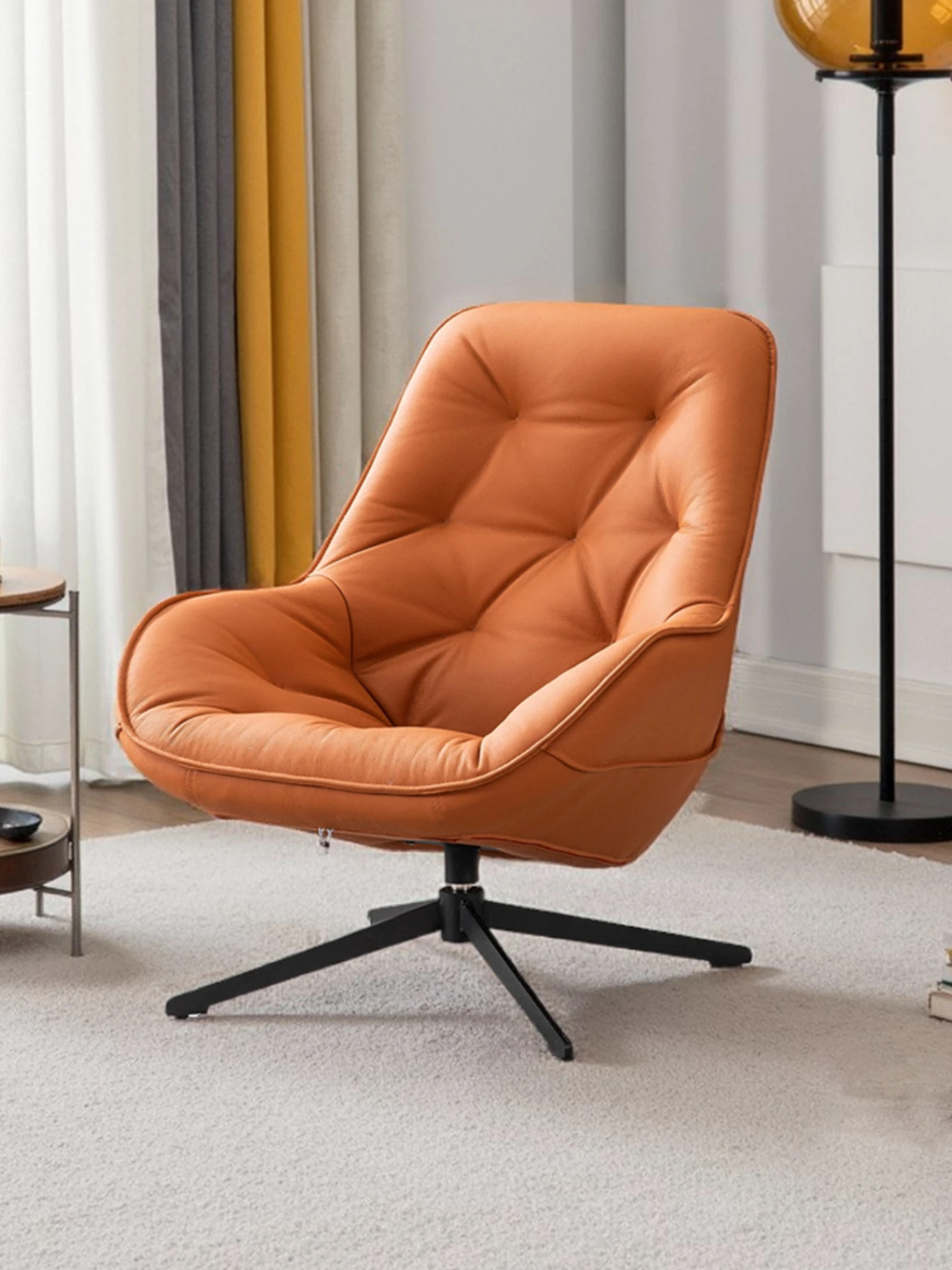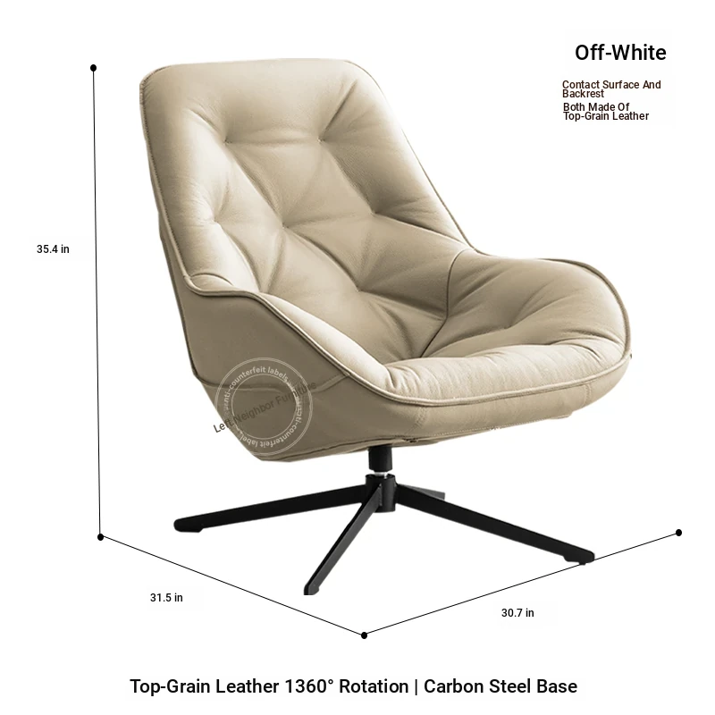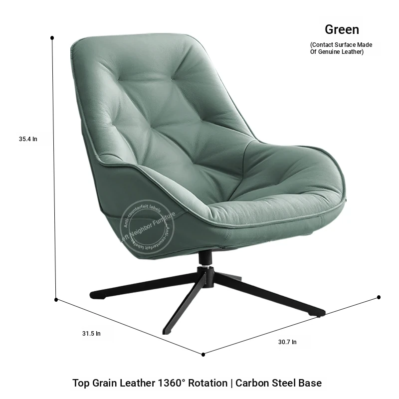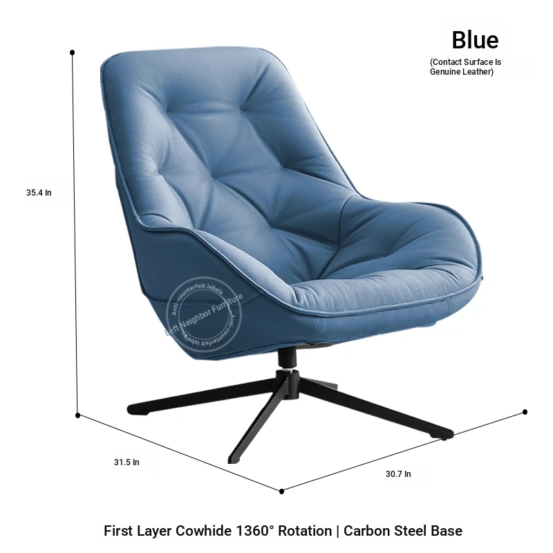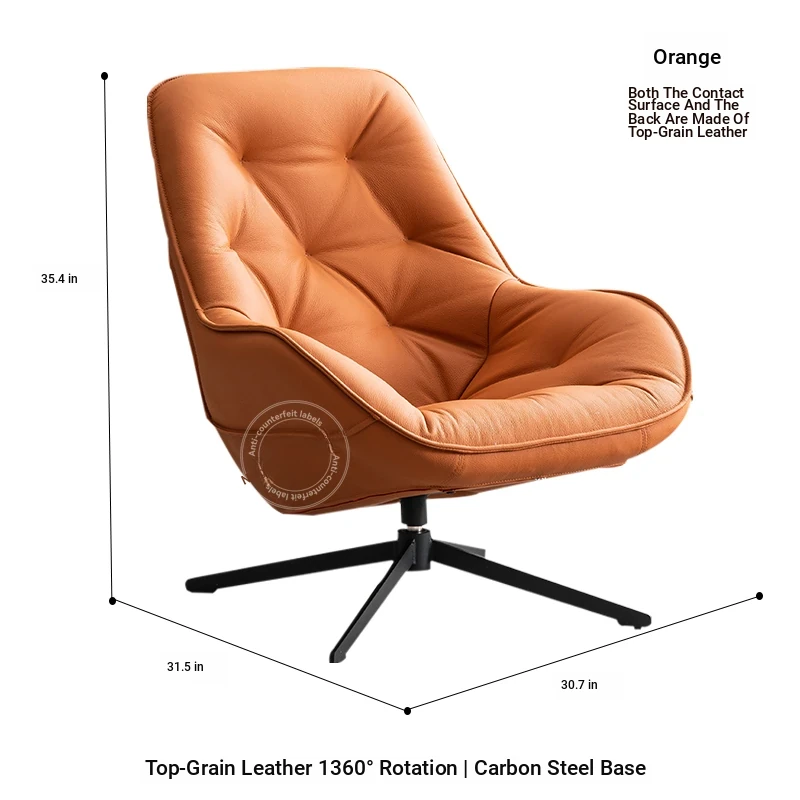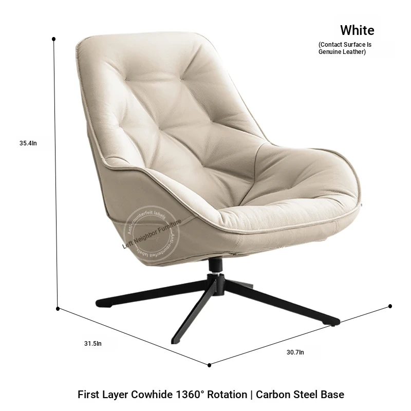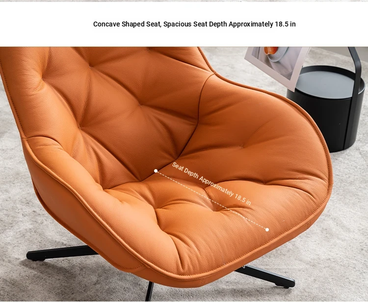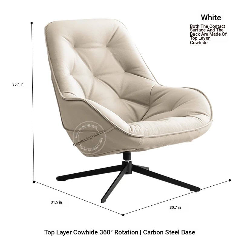 Italian Single-Seat Swivel Sofa Chair - Luxurious Genuine Leather Lounge Chair for Living Room, Home, and Balcony Relaxation