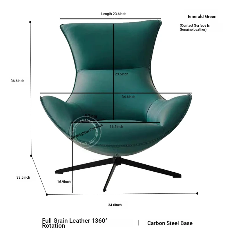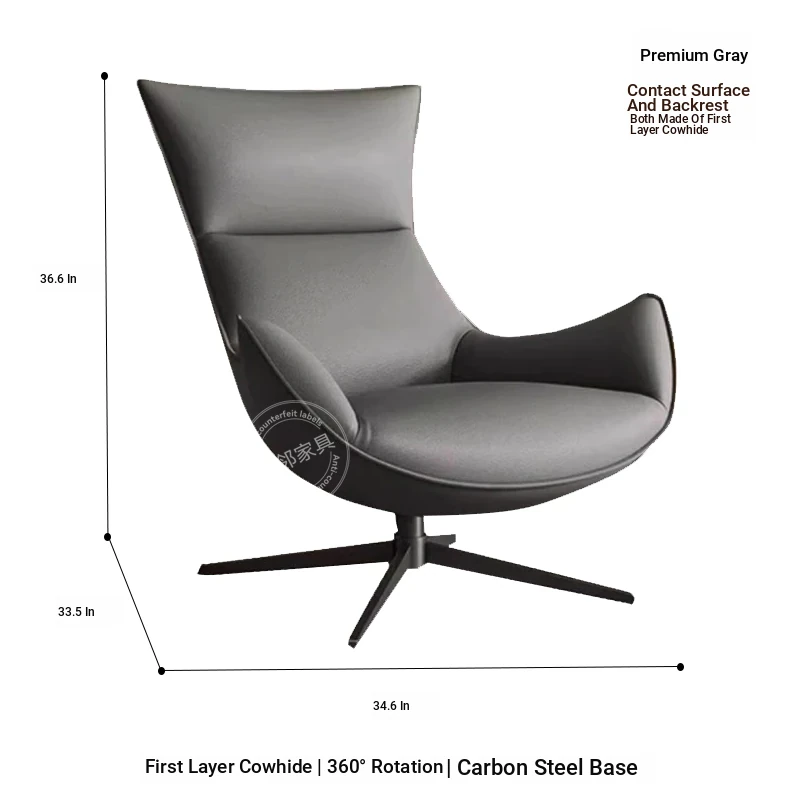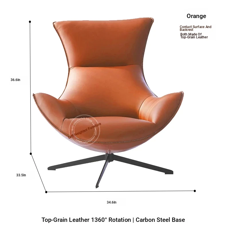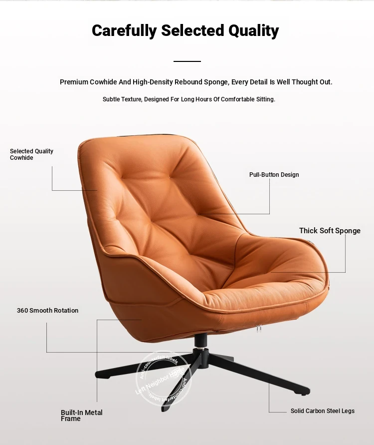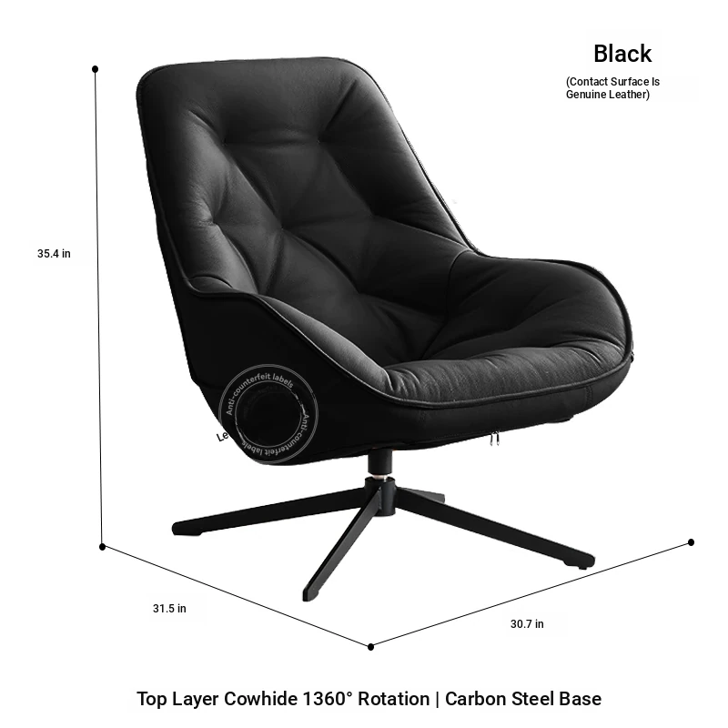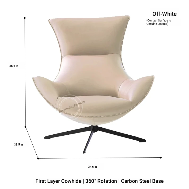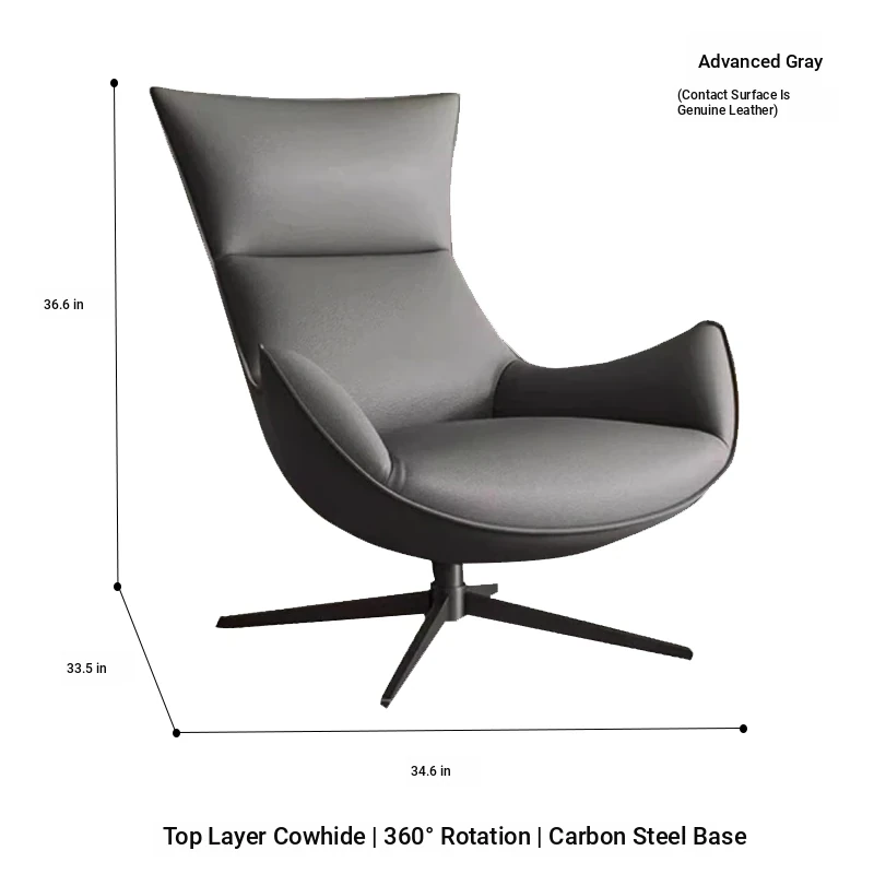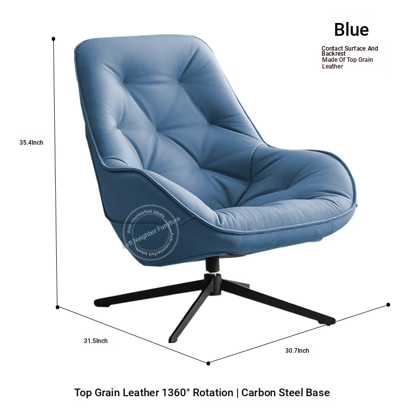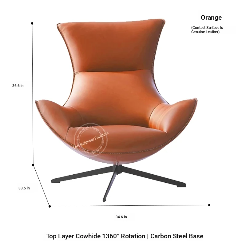 Italian Single-Seat Swivel Sofa Chair - Luxurious Genuine Leather Lounge Chair for Living Room, Home, and Balcony Relaxation