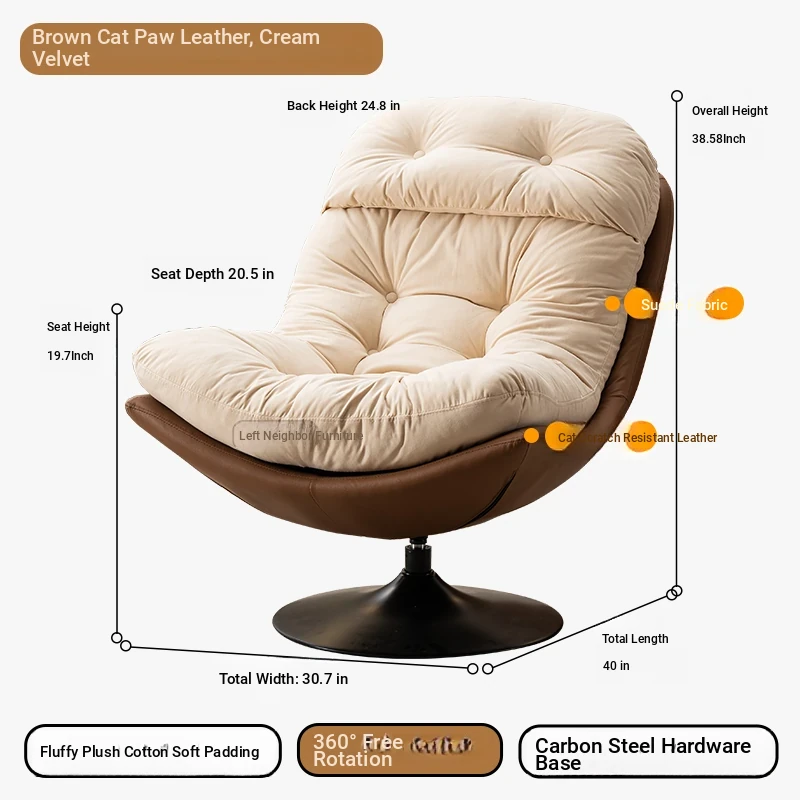Creamy-white & Brown Eggshell Chair (Cat Paw Leather)