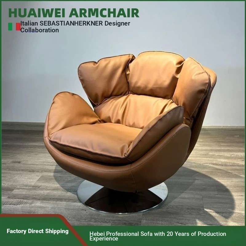 Italian Style Leisure Swivel Chair - Luxurious Rotating Sofa for Living Room and Balcony, Designer's Minimalist Lounge Chair for Ultimate Comfort