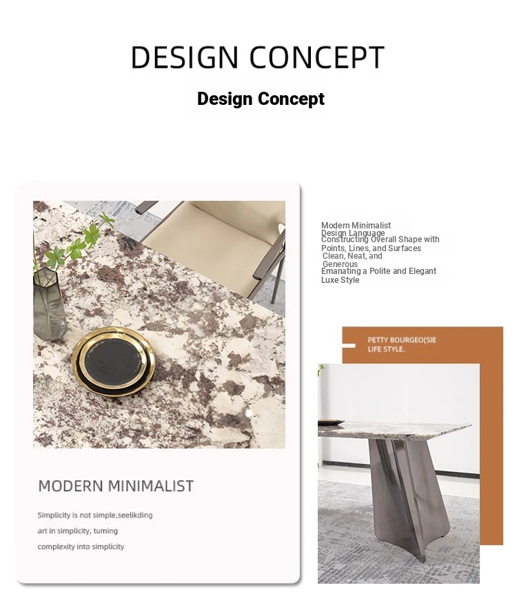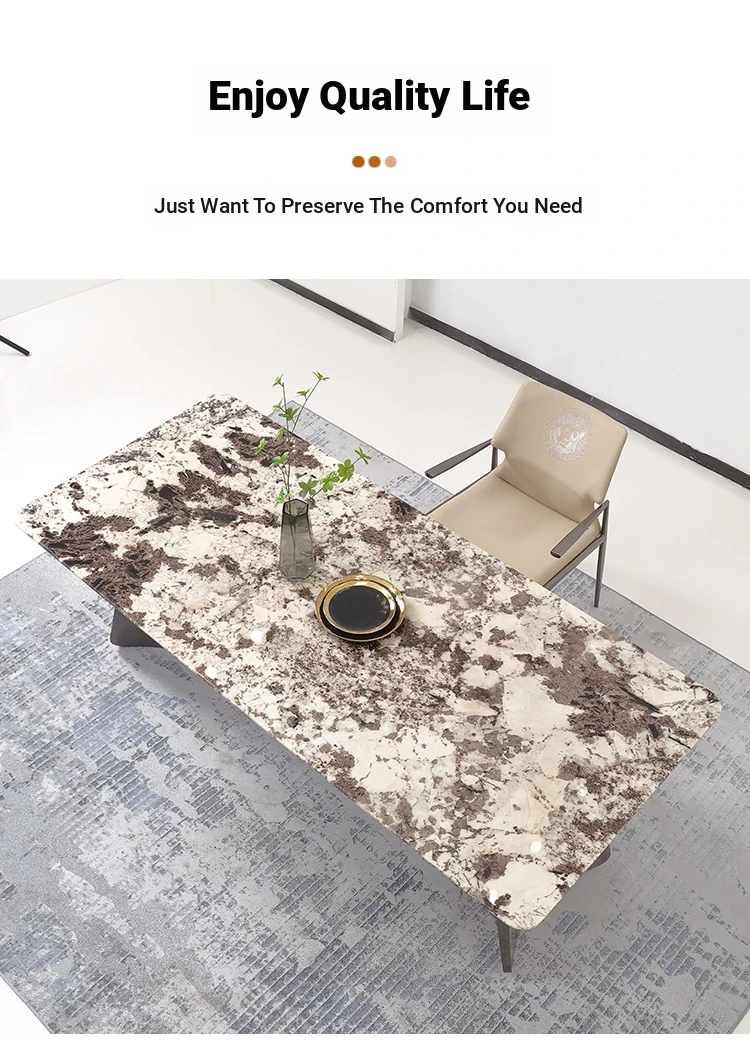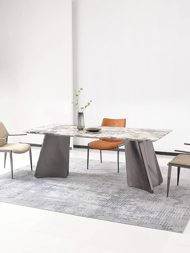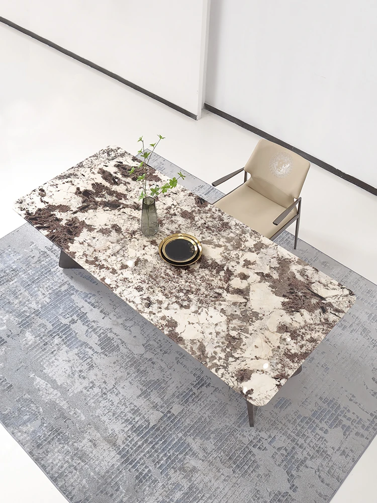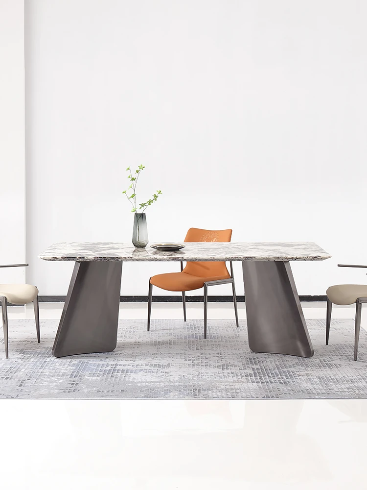 Italian Style Luxurious Dining Table and Chair Set - Modern Minimalist Rectangular Marble Dining Table for Small Spaces, Perfect for Home Dining Area