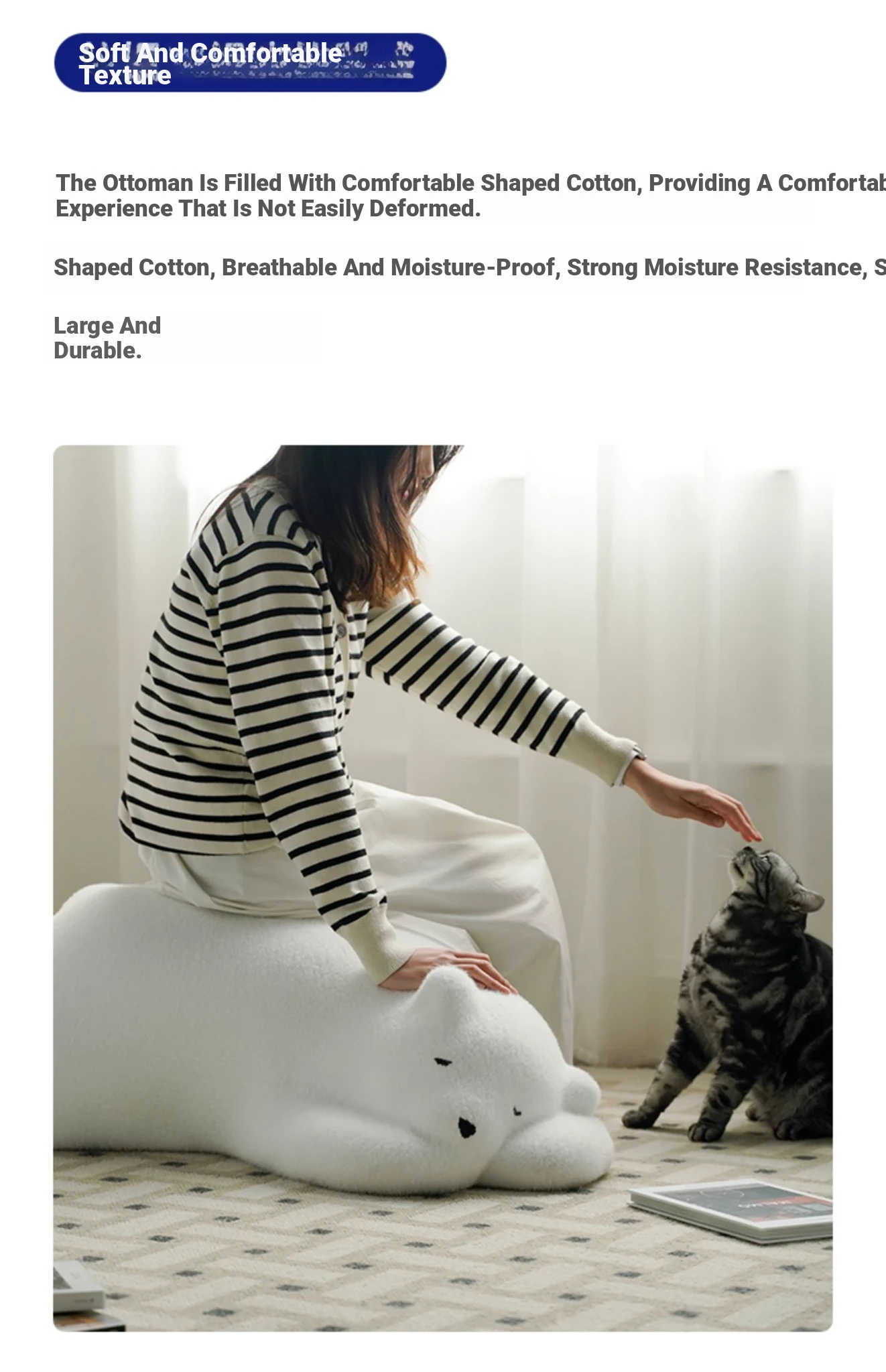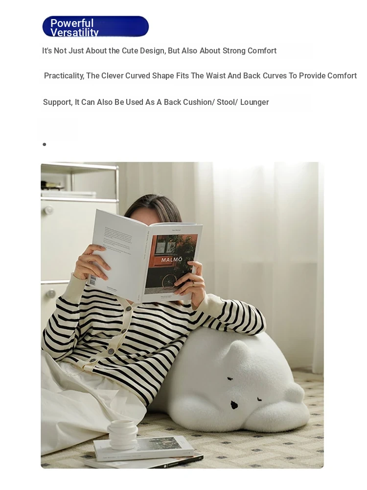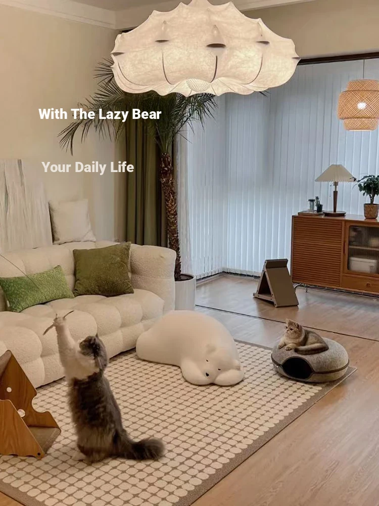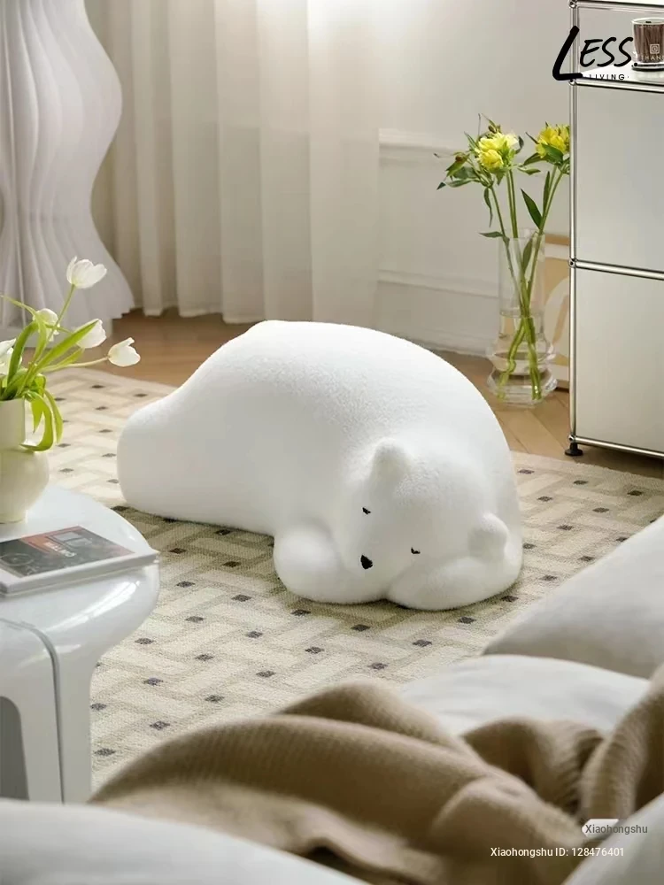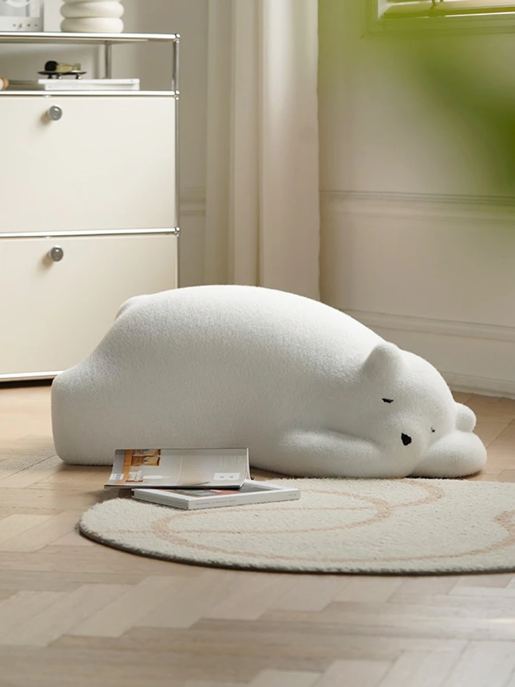 Lazy Bear Sofa - Trendy Animal Seat for Creative Bedroom Design, Cozy Floor Pillow for Relaxation, Adorable Influencer Polar Bear Plush Furniture
