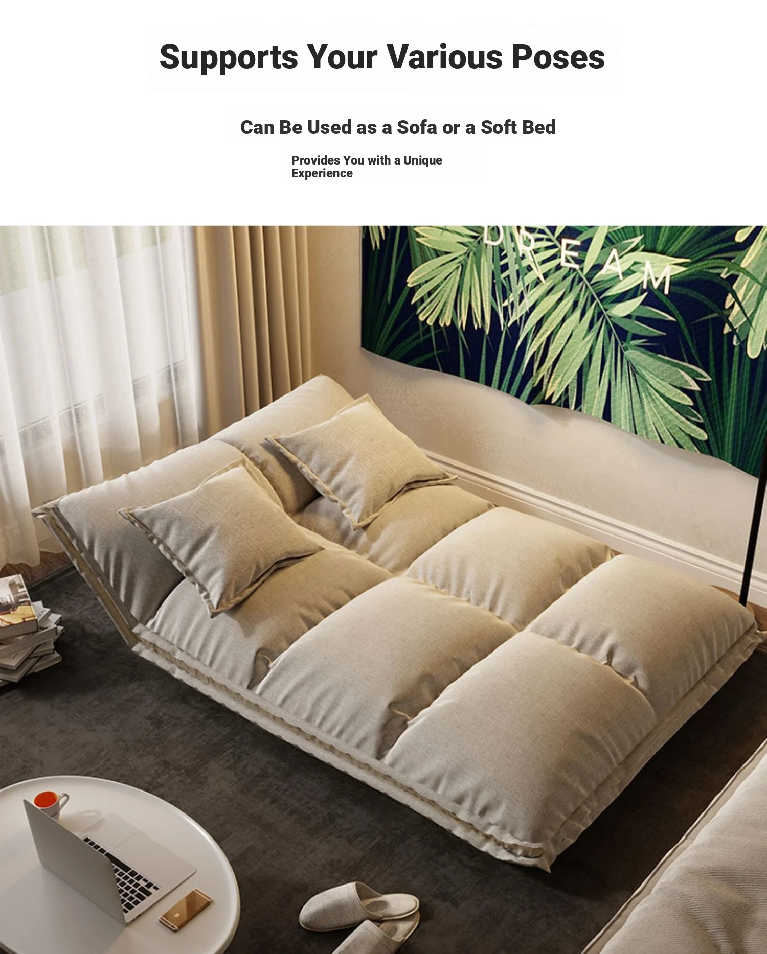 Lazy Sofa Bed - Compact Tatami Couch for Balcony or Bedroom, Foldable and Space-Saving Design for Two, Perfect for Relaxation and Comfort!