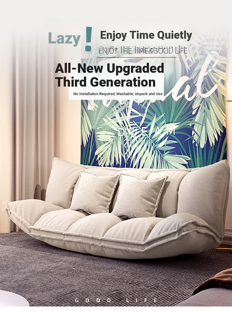 Lazy Sofa Bed for Balcony - Versatile Tatami Style, Foldable and Comfortable, Perfect for Two People, Ideal for Relaxing and Sleeping, Stylish Fabric Design