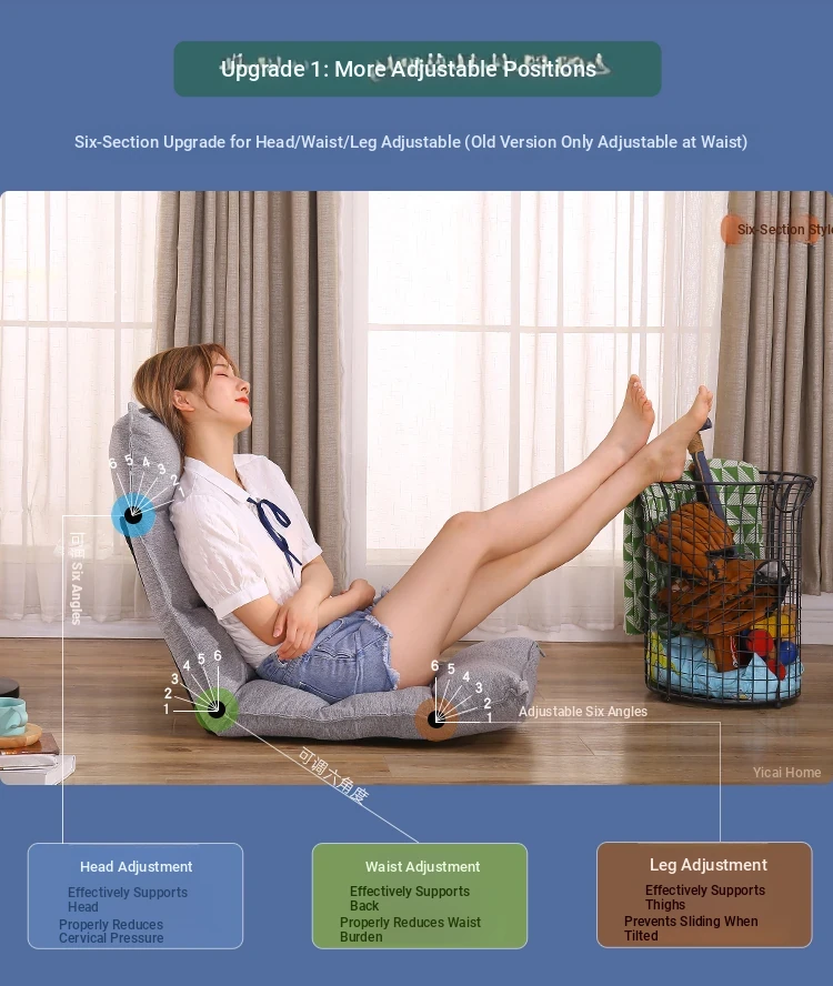 Lazy Sofa Chair - Single Foldable Bed with Backrest, Perfect for Window Seats or Floor Use, Legless Lounge Chair, Japanese Tatami Style Seating Solution