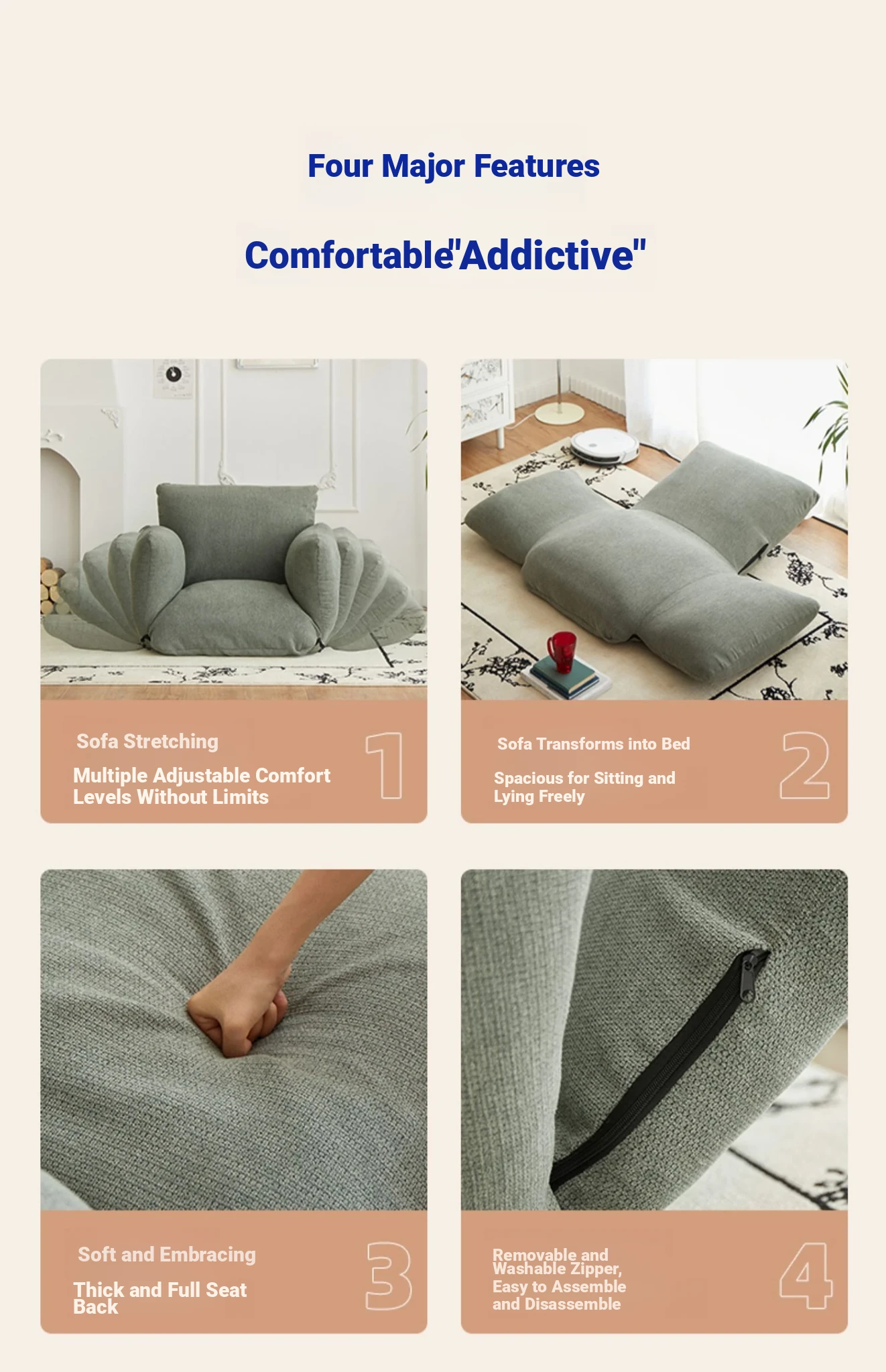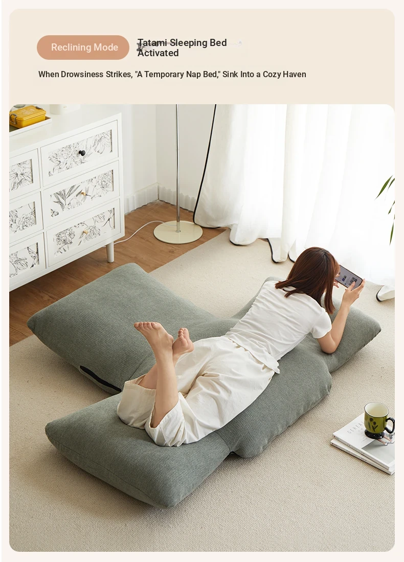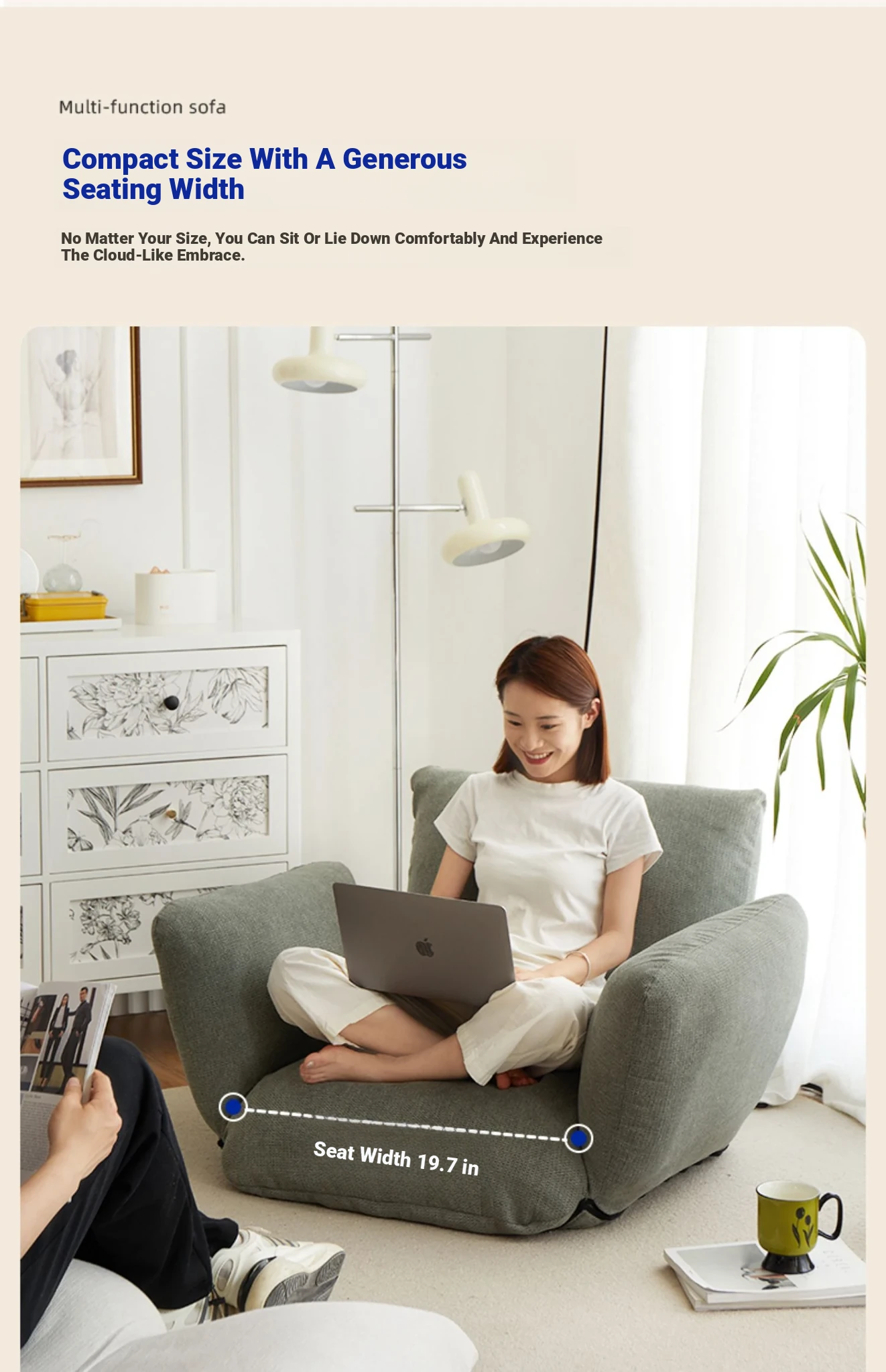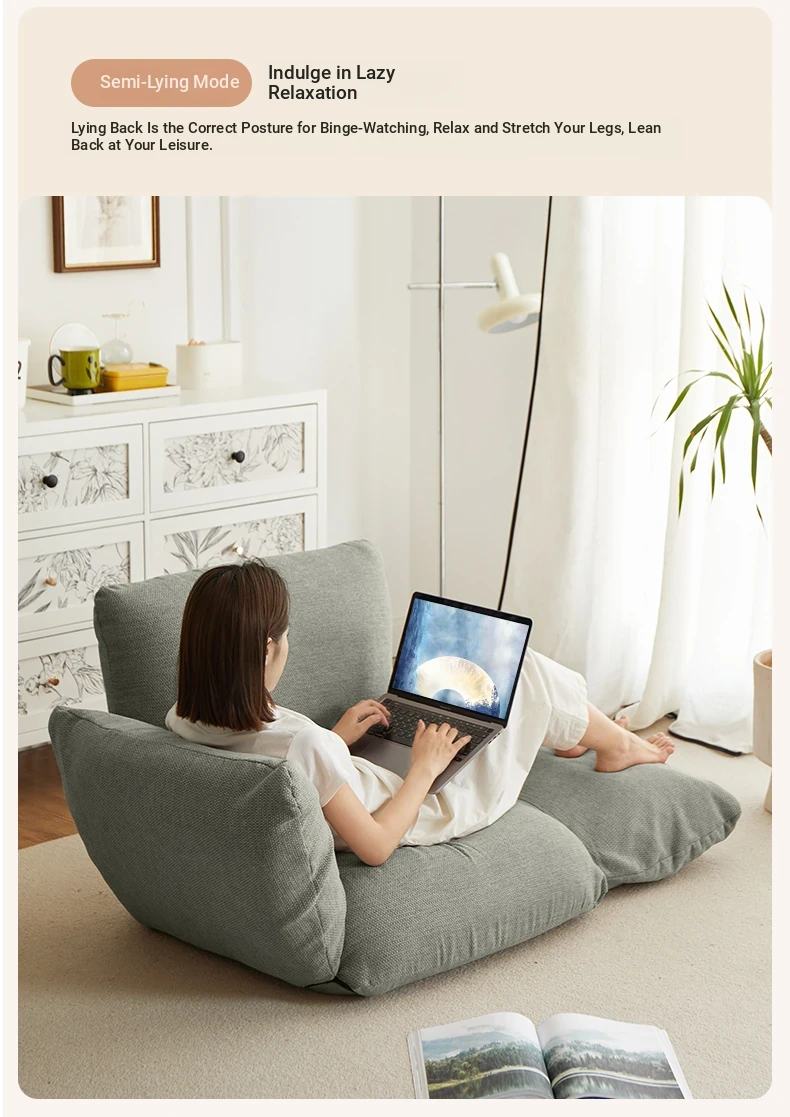 Lazy Sofa Chair - Versatile Single Recliner for Relaxation & Sleeping, Ideal Bedside Backrest for Bedroom & Tatami Use, Compact & Cozy Design