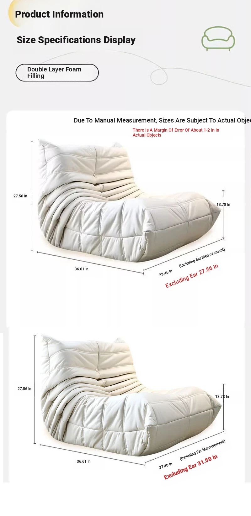 Lazy Sofa Togo Caterpillar Chair - Stylish and Creative Lounge Chair for Living Room, Balcony, and Bedroom, Perfect for Relaxing and Unwinding, Ideal for Single Seating