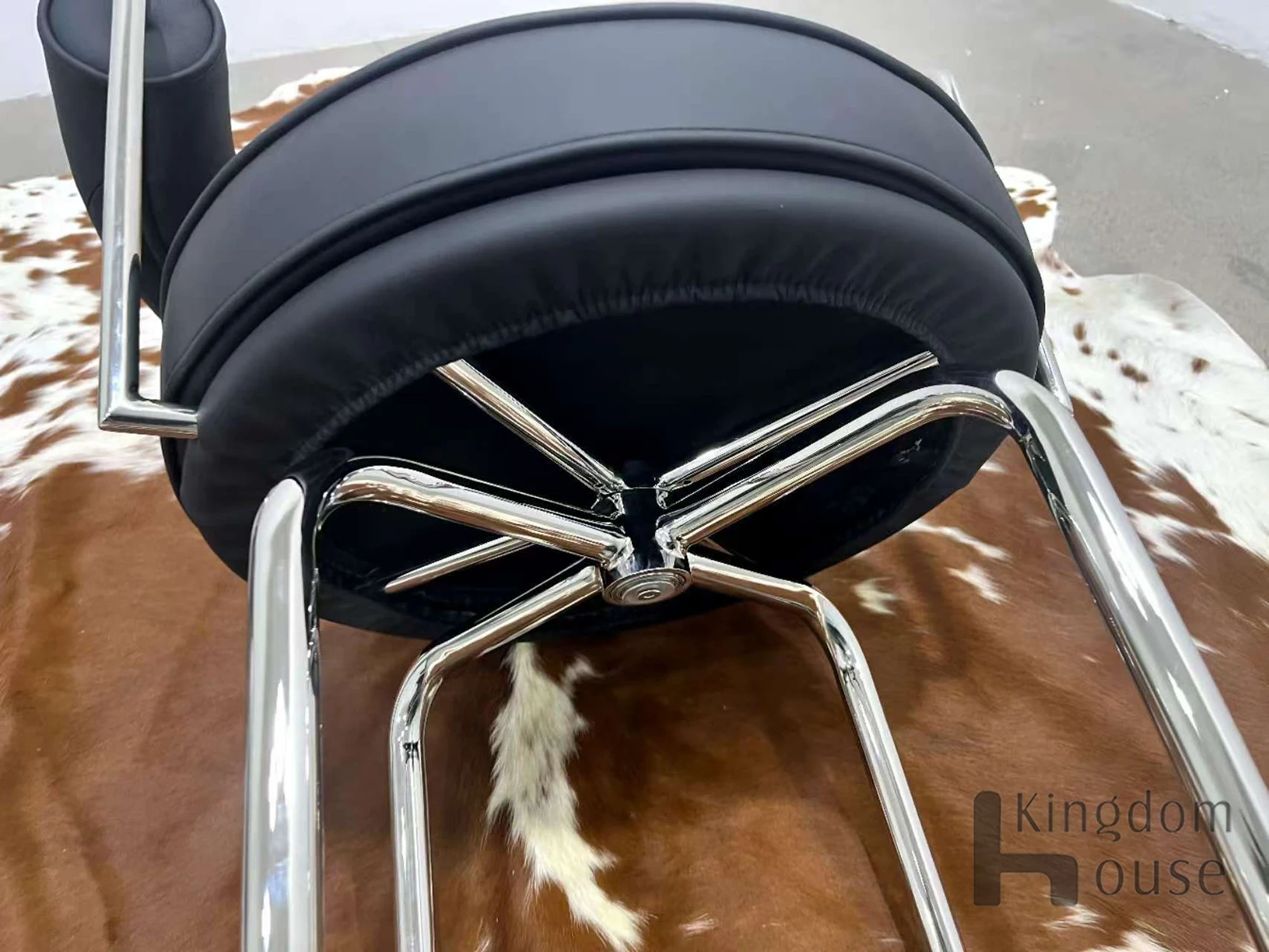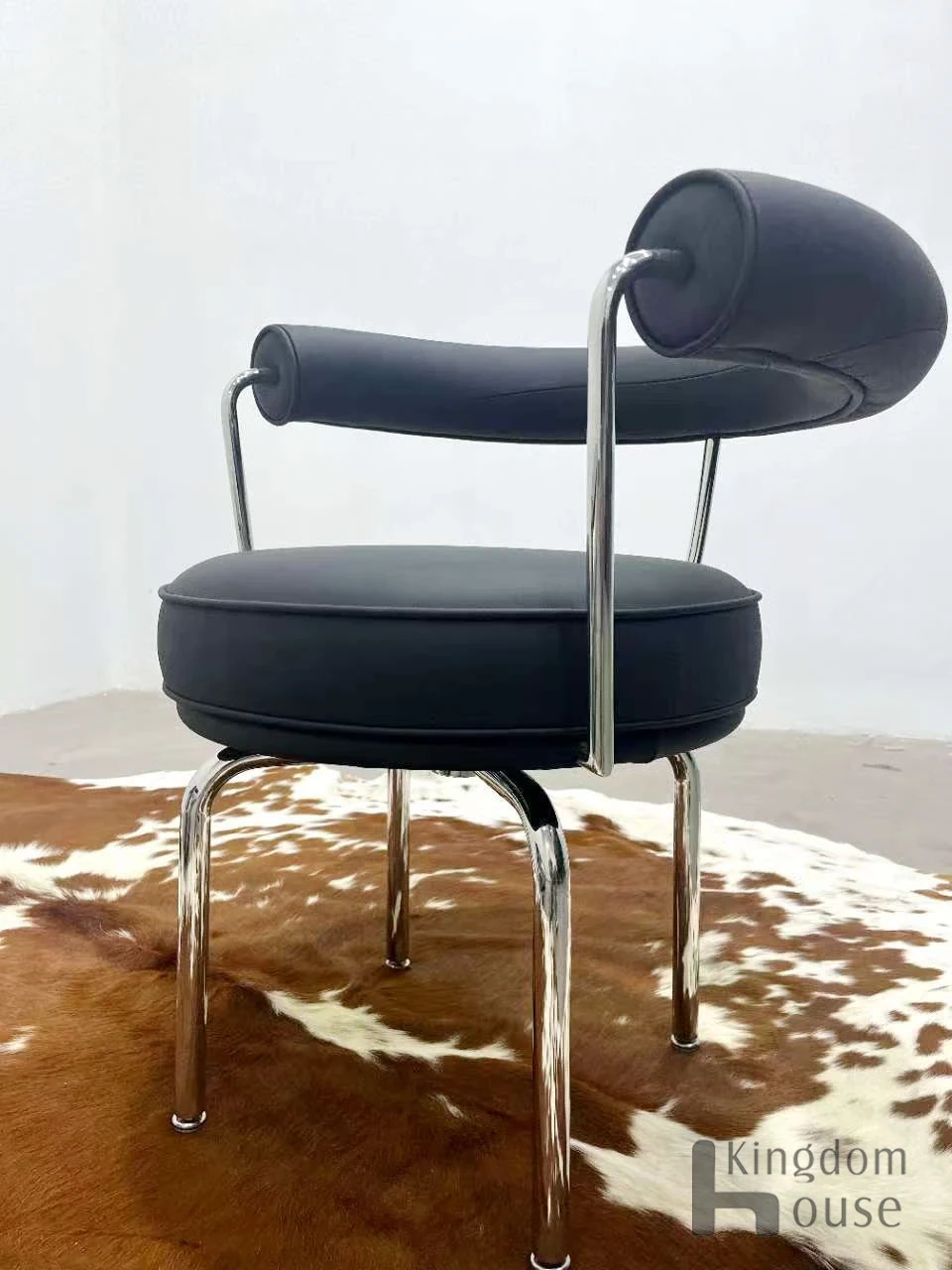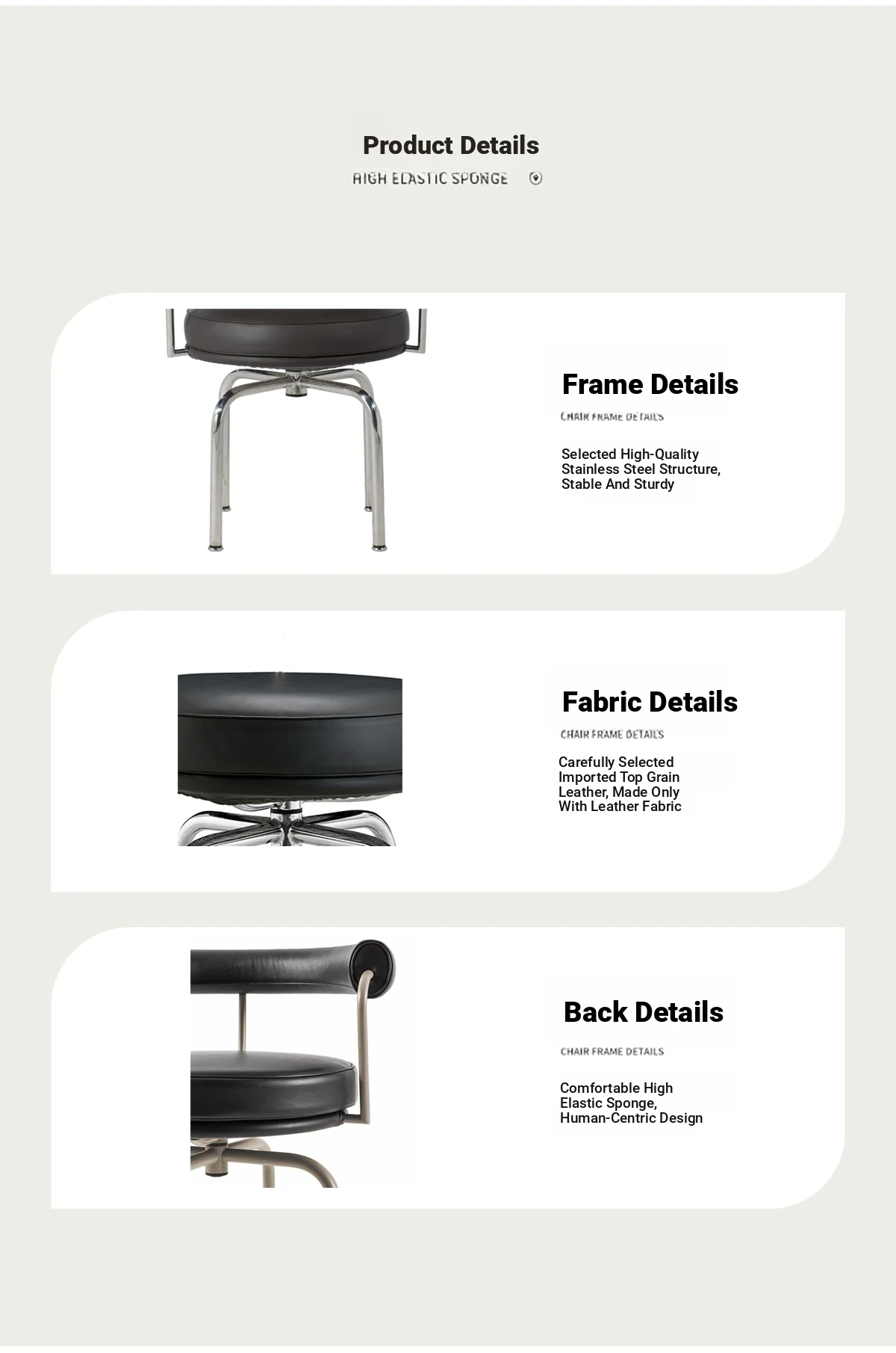 LC7 Vintage Stainless Steel Dining Chair - Home Luxury Modern Rotating Backrest for Relaxation, Office Meetings, and Study Desks