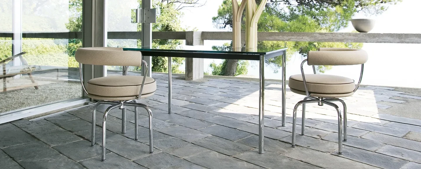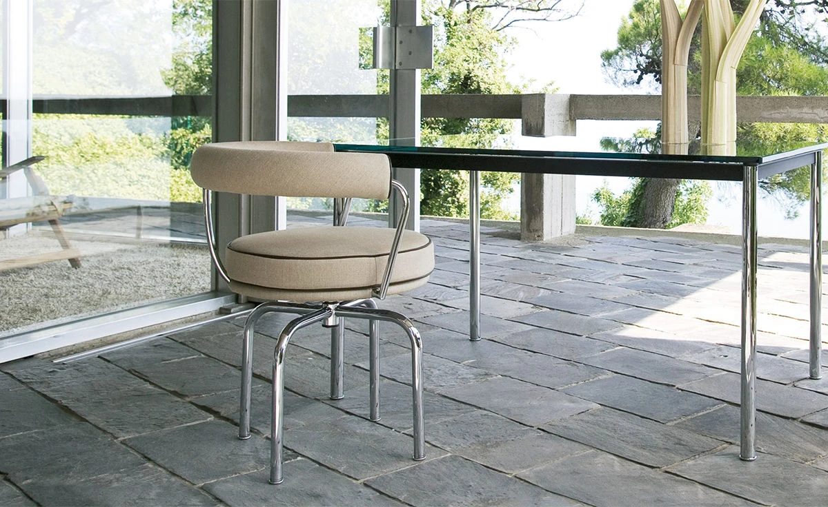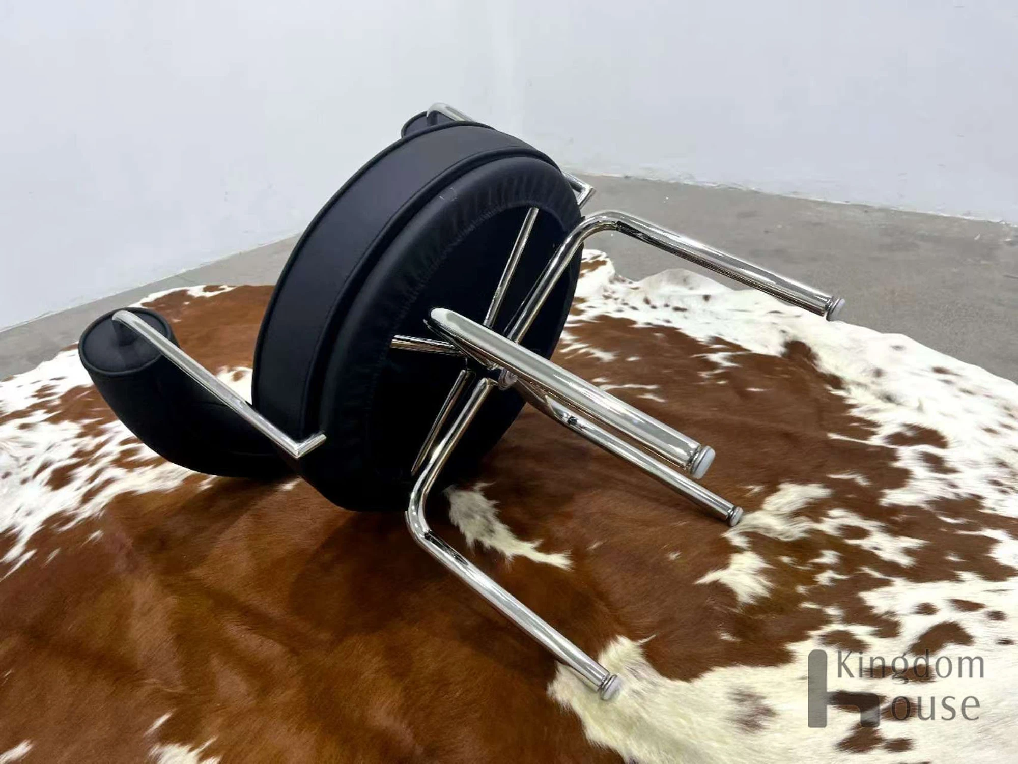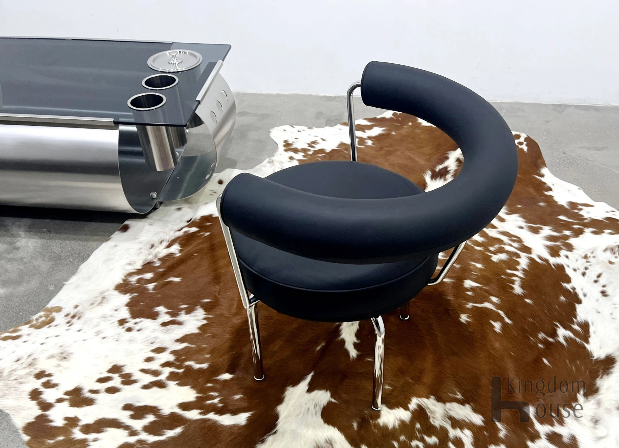 LC7 Vintage Stainless Steel Dining Chair - Home Luxury Modern Rotating Backrest for Relaxation, Office Meetings, and Study Desks