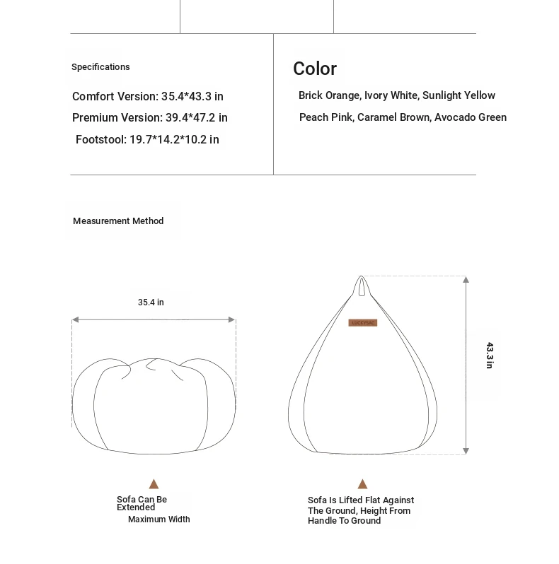 LuckySac Lazy Sofa - Versatile Tech Fabric Bean Bag Chair for Living Room or Balcony, Perfect for Relaxing, Lounging, and Sleeping in Your Bedroom!