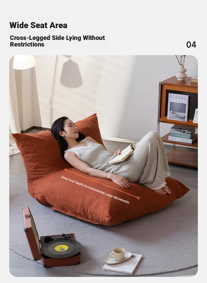 Luxury Single Lazy Sofa Chair for Living Room and Bedroom – Versatile Recliner and Sleeper, Tatami Style with L-Shaped Backrest, Premium Fabric for Ultimate Comfort and Style