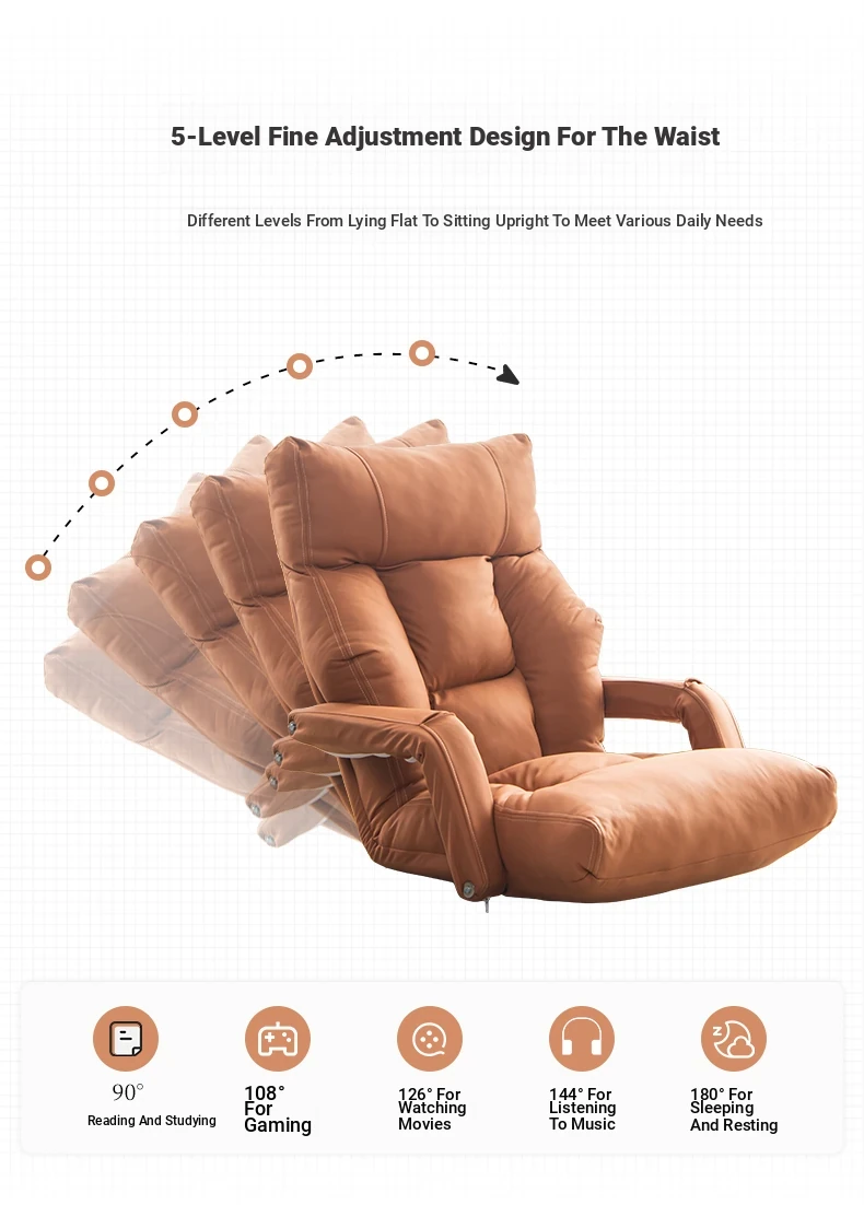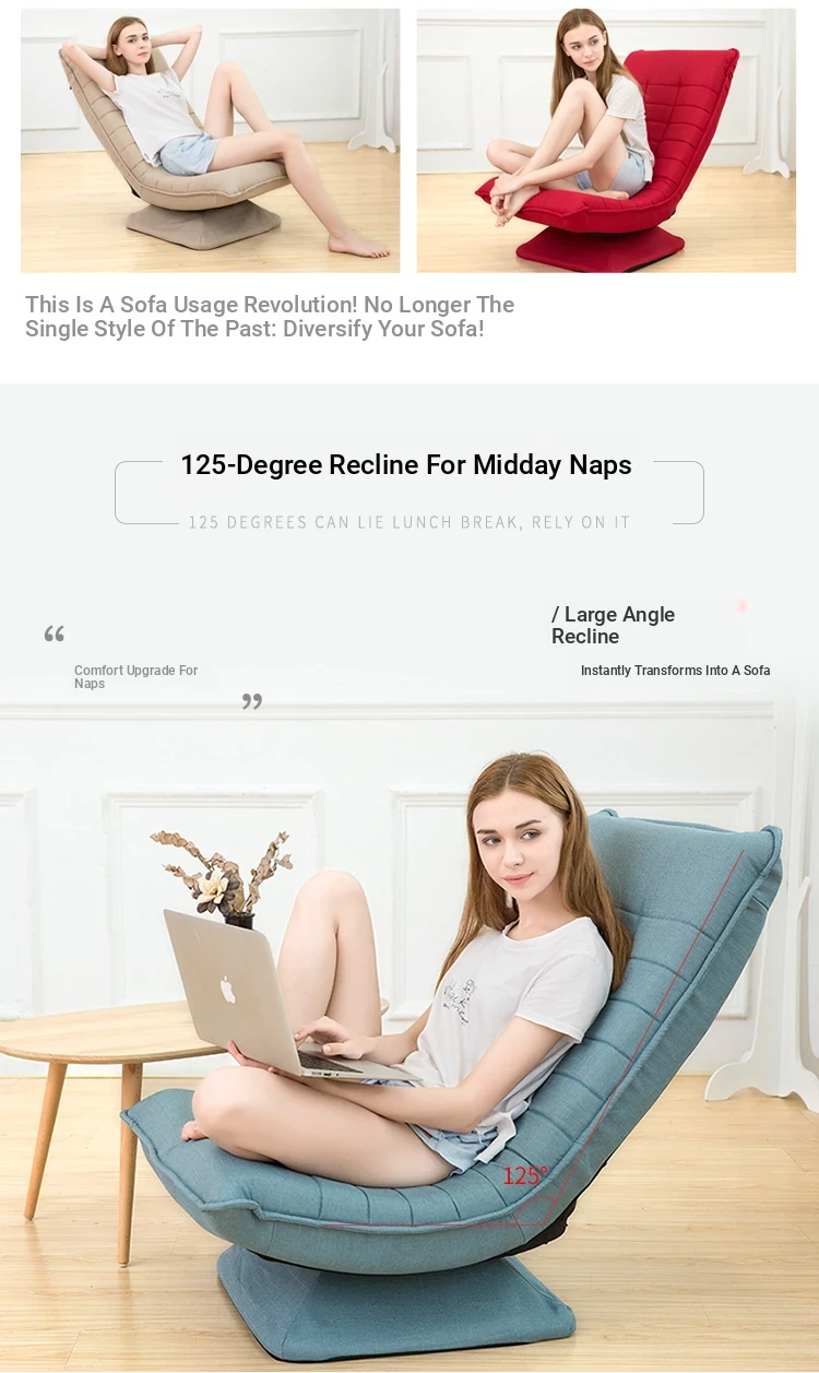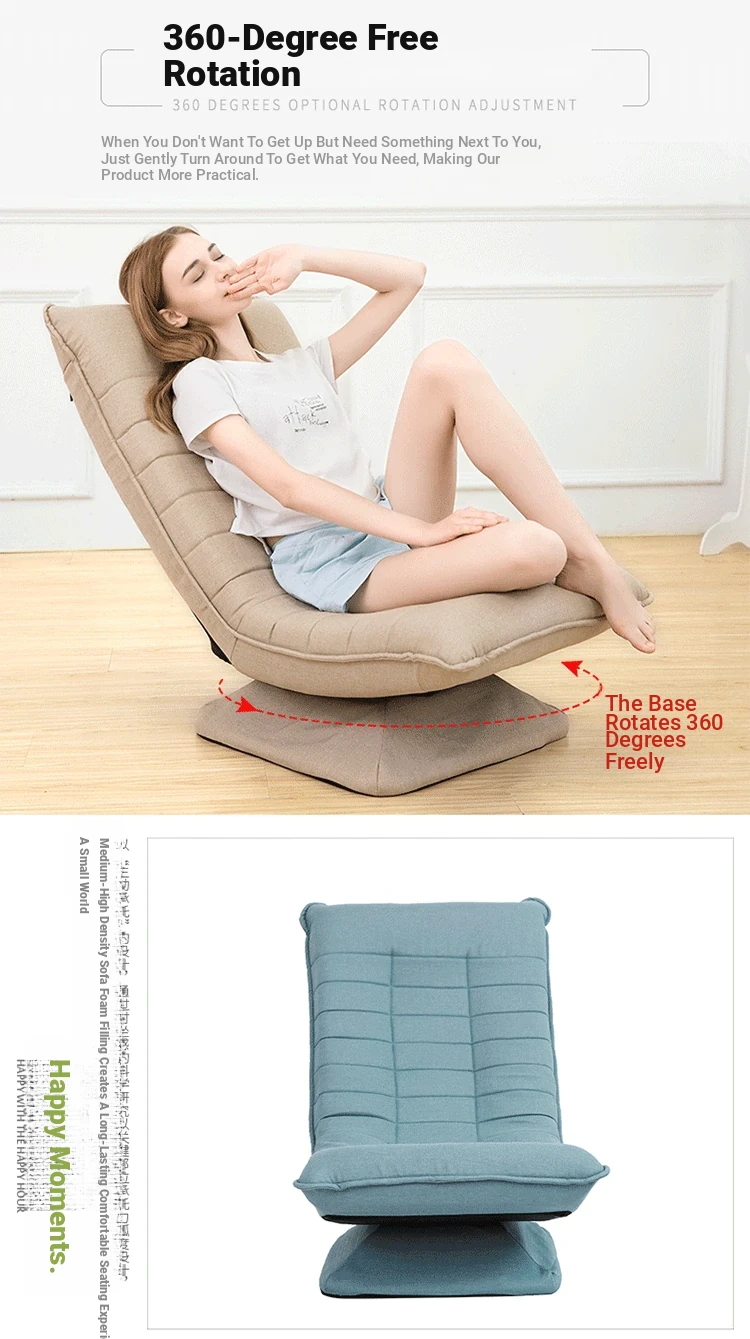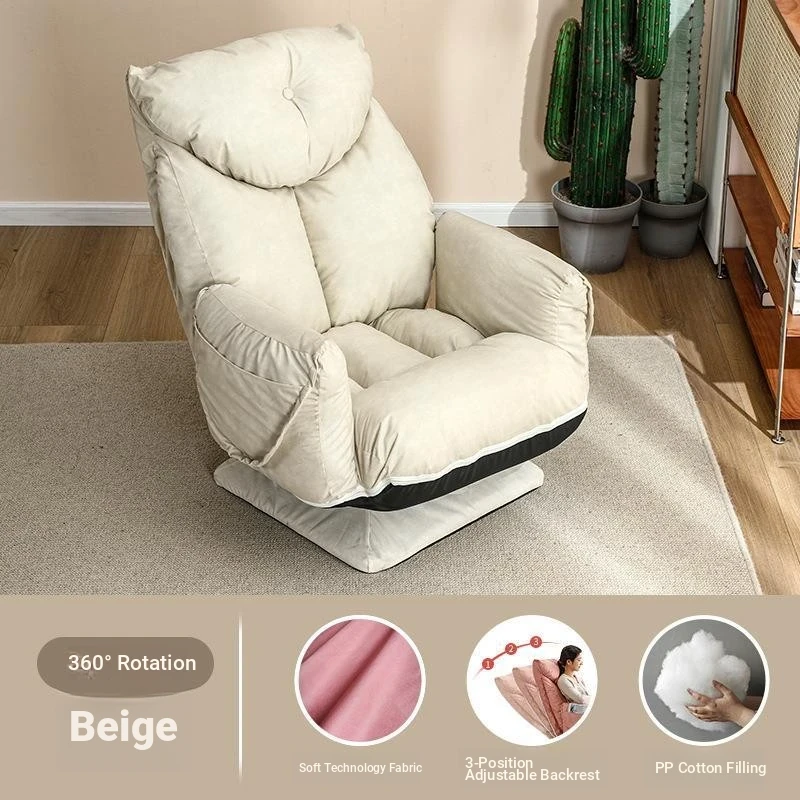 Minimalist Japanese Tatami Single Reclining Swivel Leisure Chair for Bay Window or Balcony - Perfect Folding Sofa for Bedroom Naptime and Relaxation