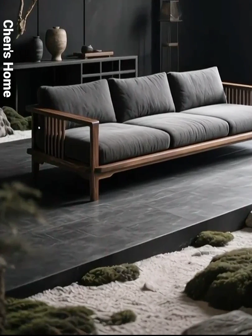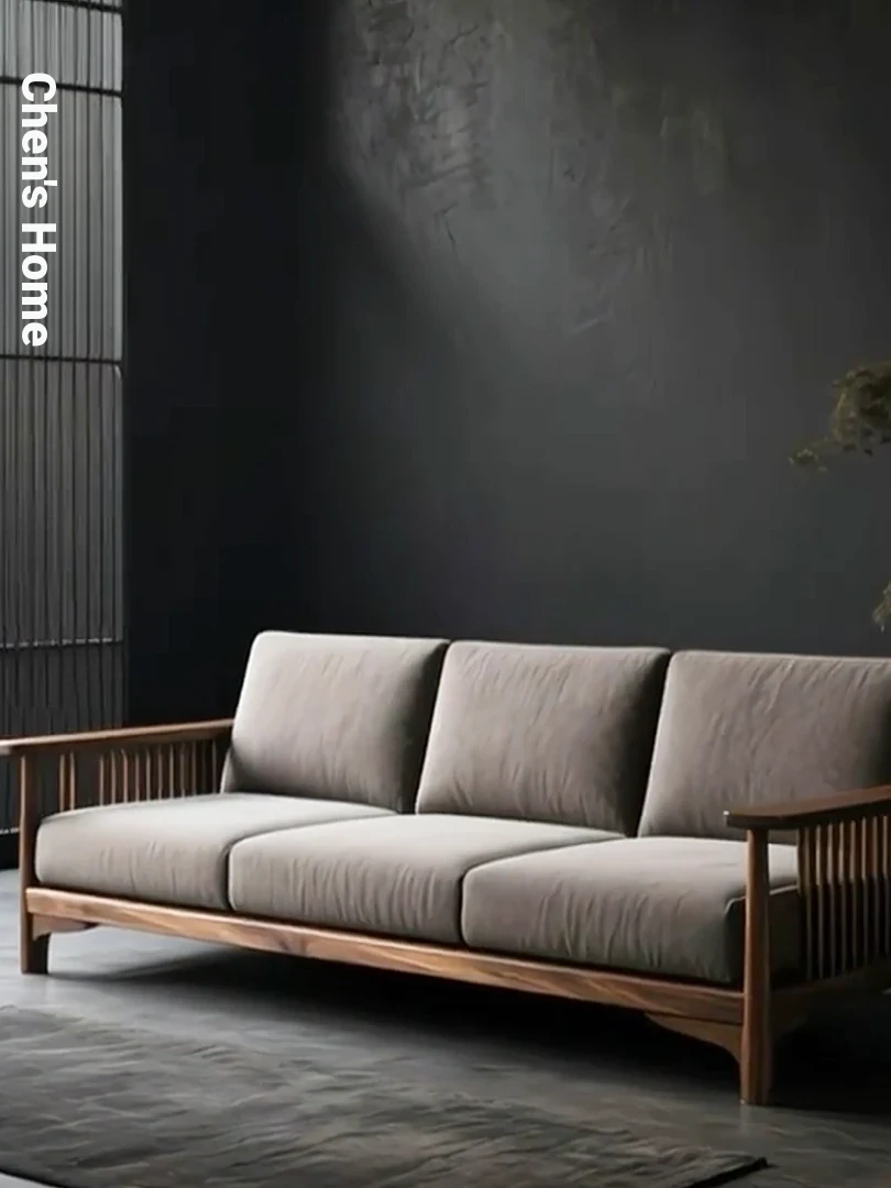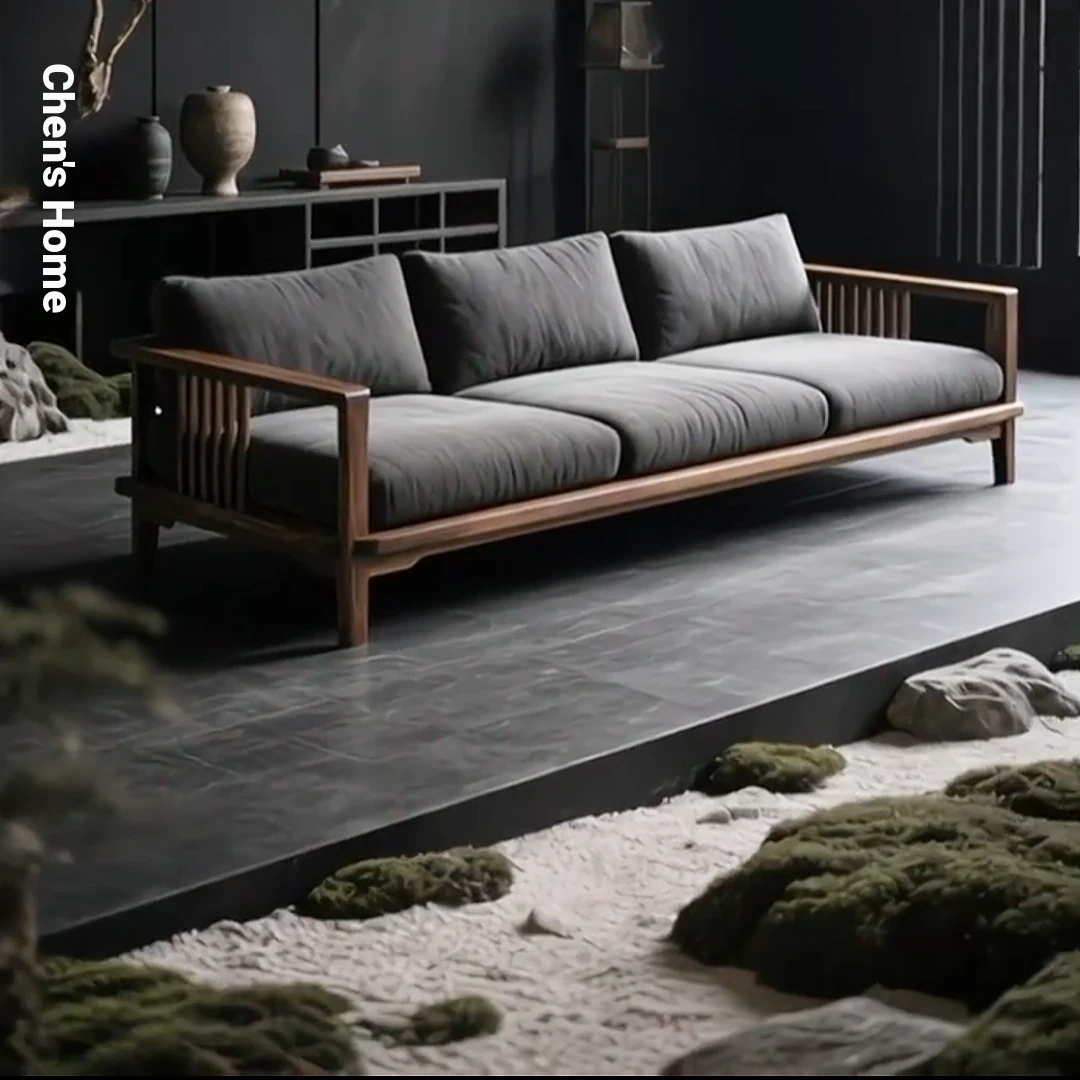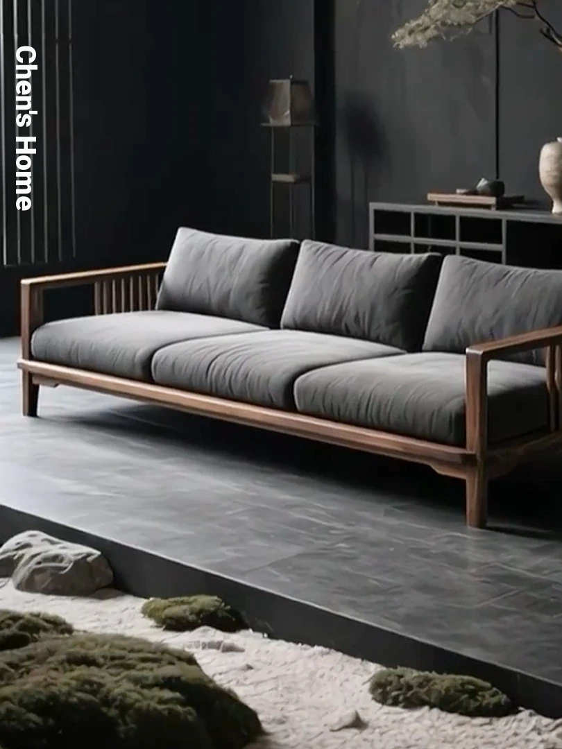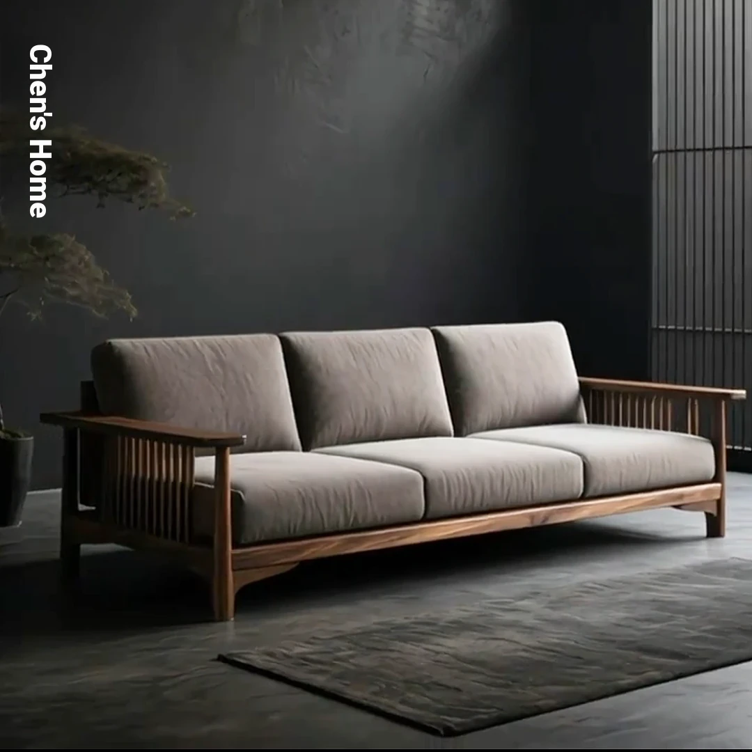 Modern Minimalist New Chinese Style Upholstered Sofa - Luxurious Black Walnut Three-Seat for Villa Living Room, Perfect Blend of Elegance and Comfort