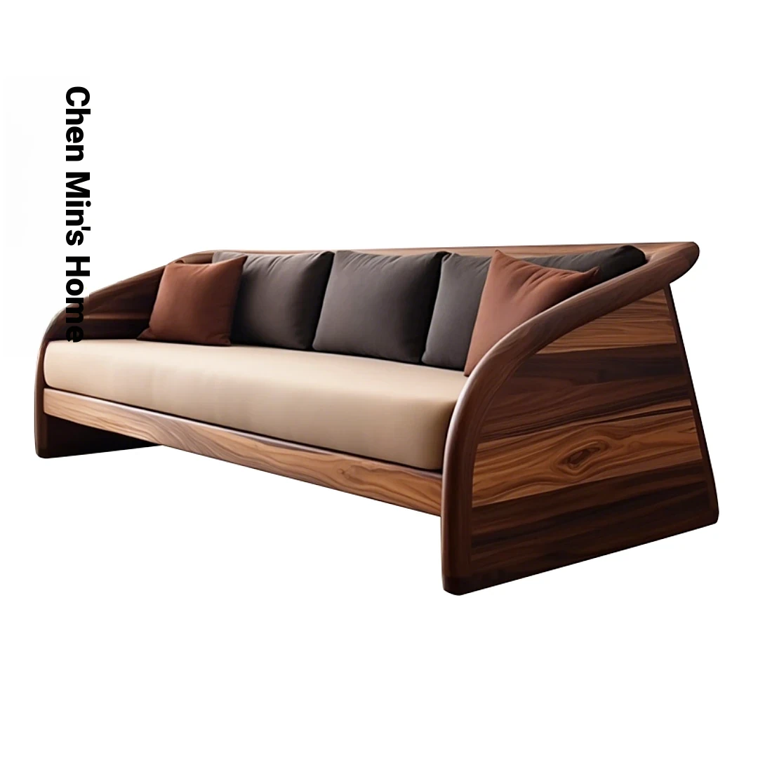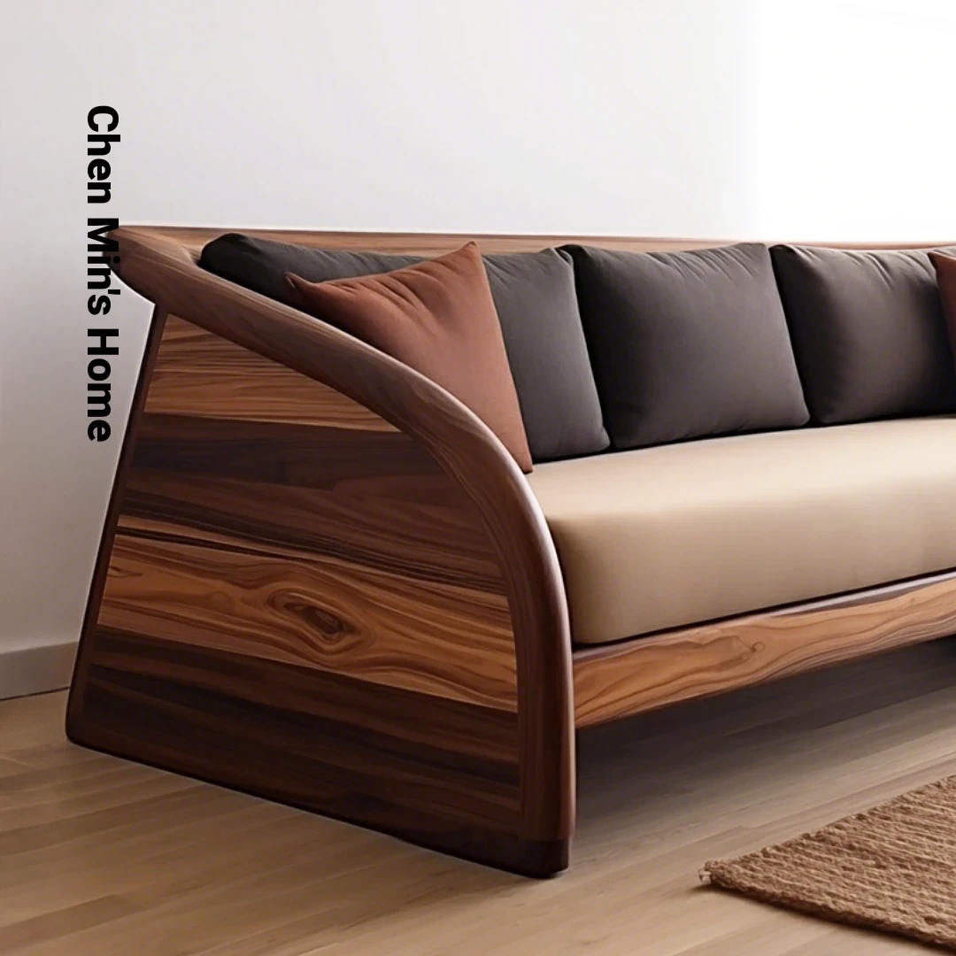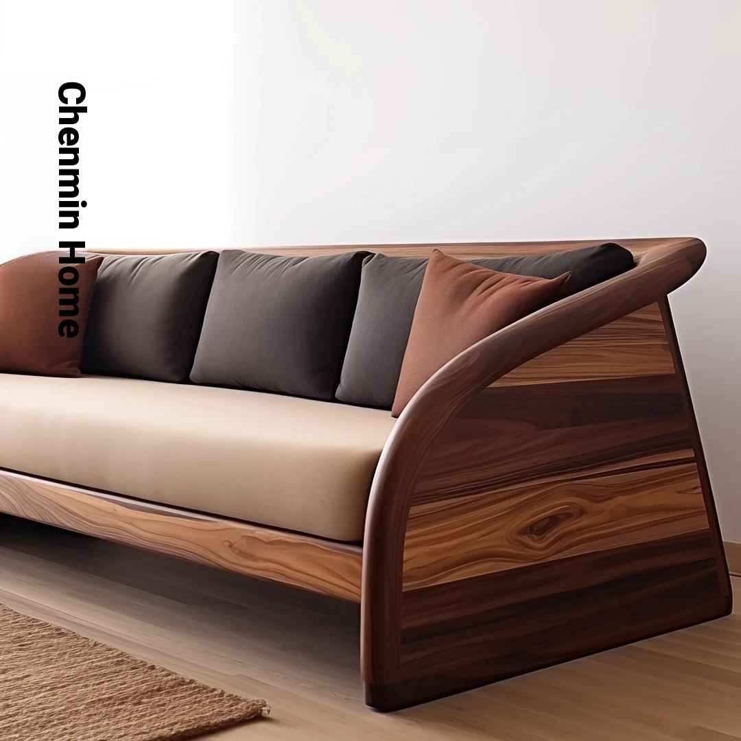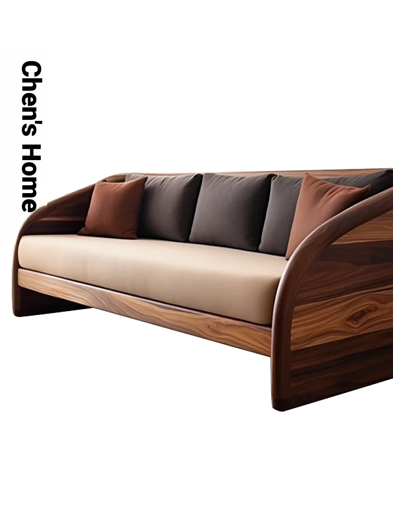 New Chinese Style Black Walnut Straight Sofa for Small Spaces - Perfect for Living Rooms and Cozy Homes, Crafted from Solid Wood for an Inviting Atmosphere