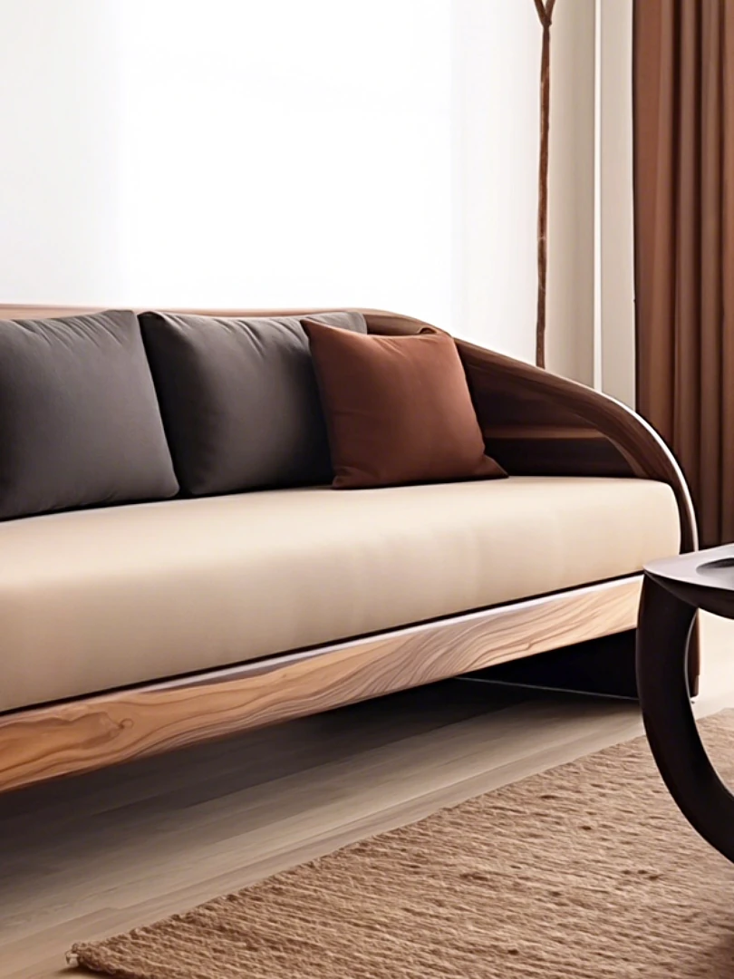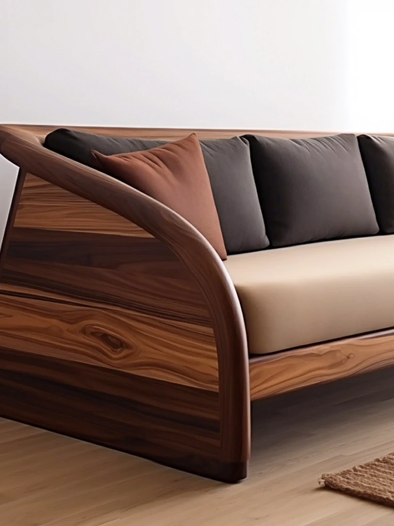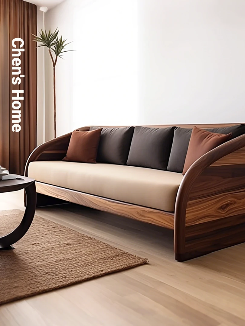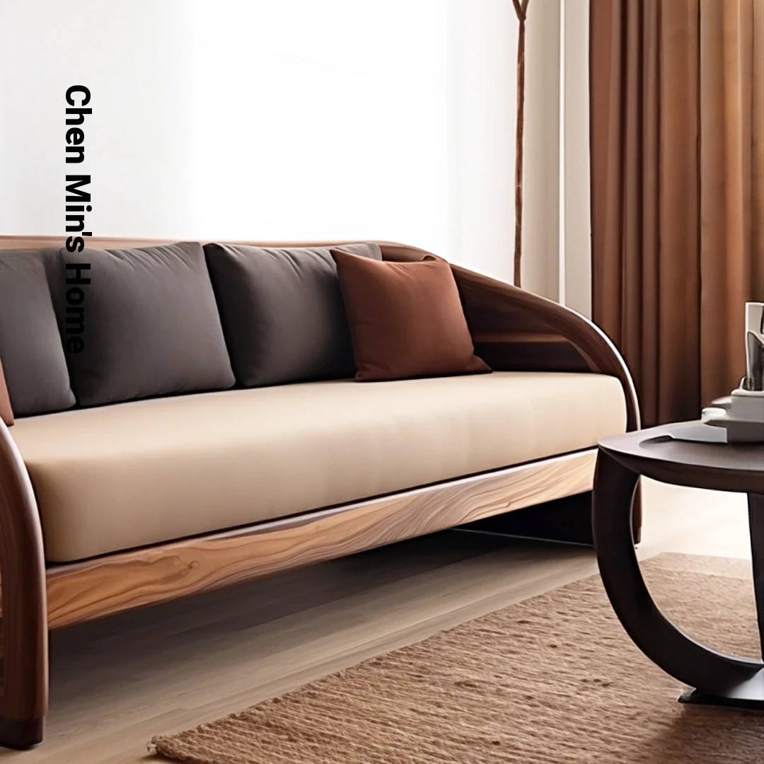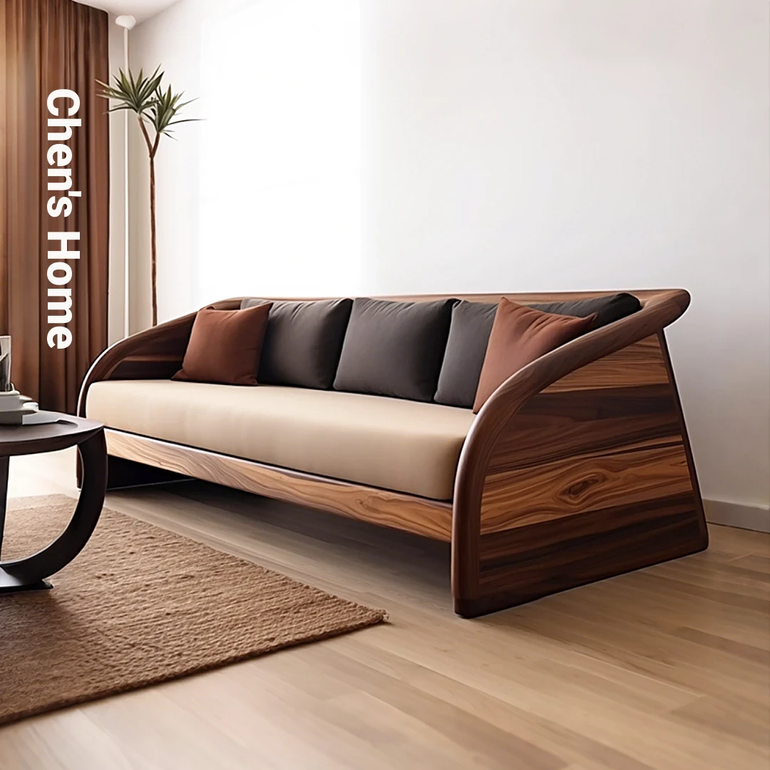 New Chinese Style Black Walnut Straight Sofa for Small Spaces - Perfect for Living Rooms and Cozy Homes, Crafted from Solid Wood for an Inviting Atmosphere