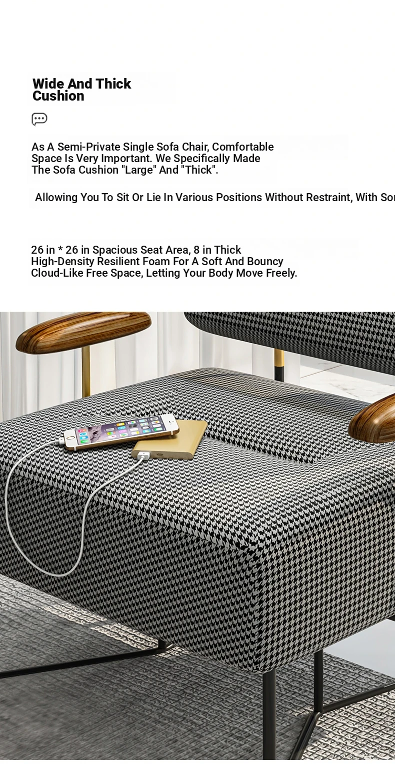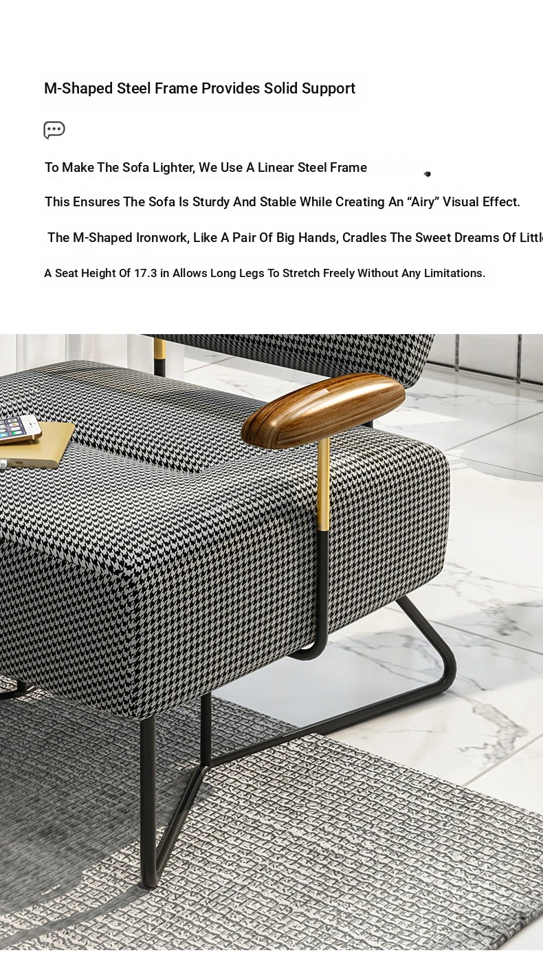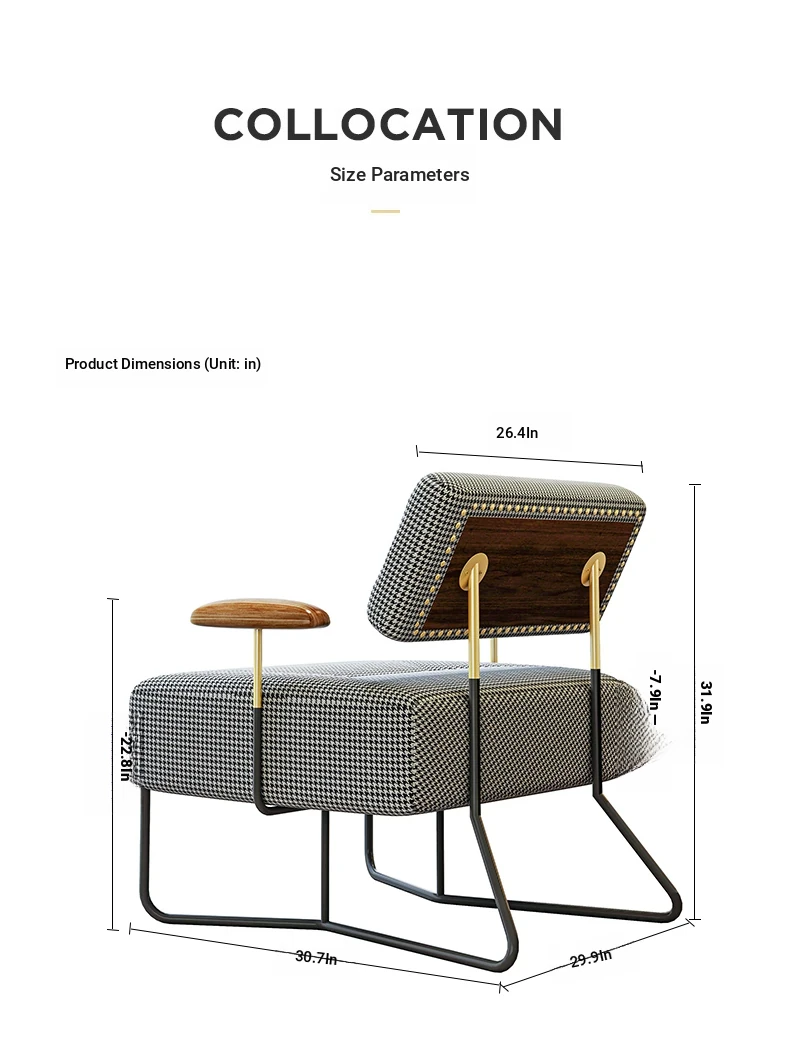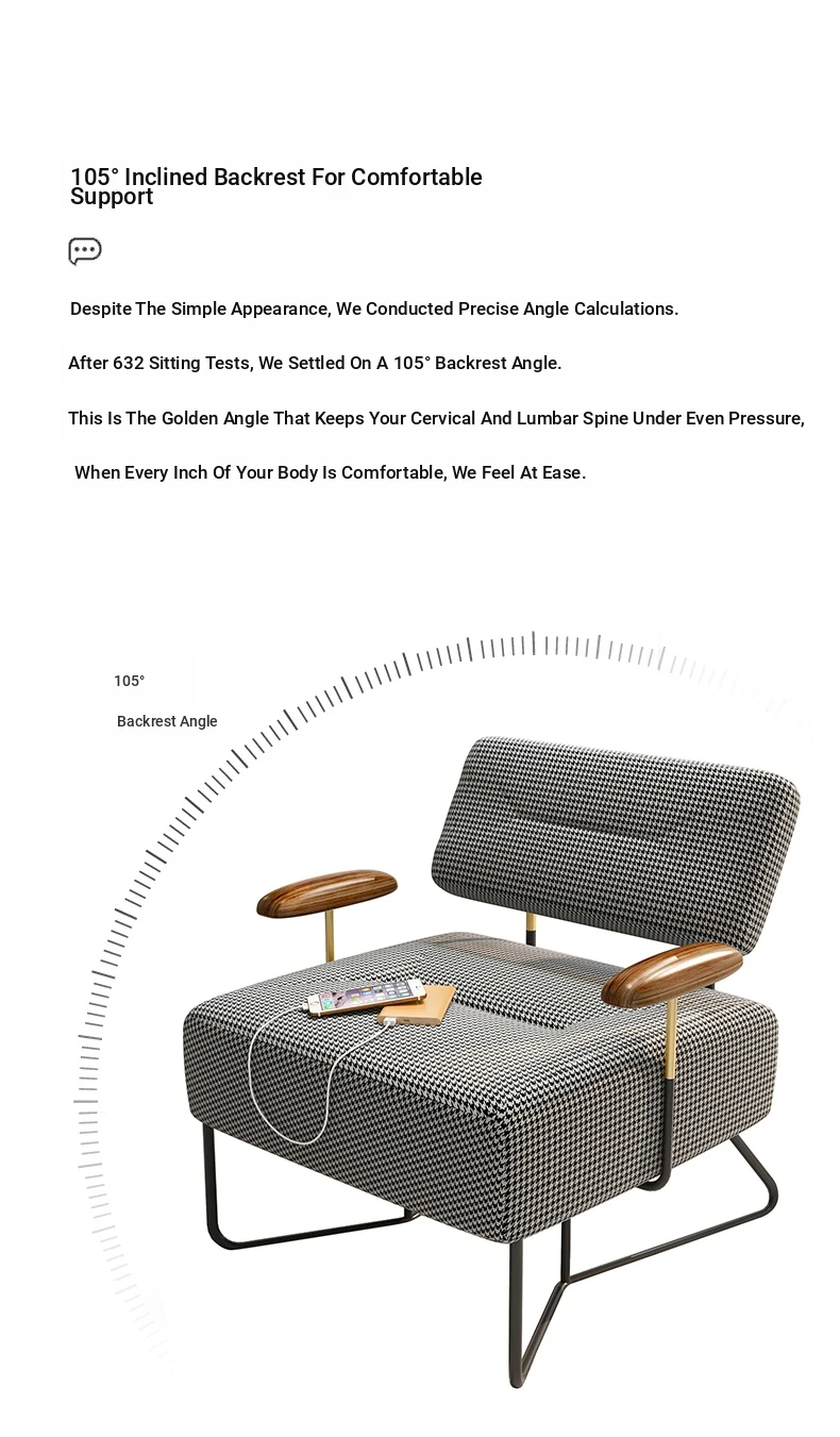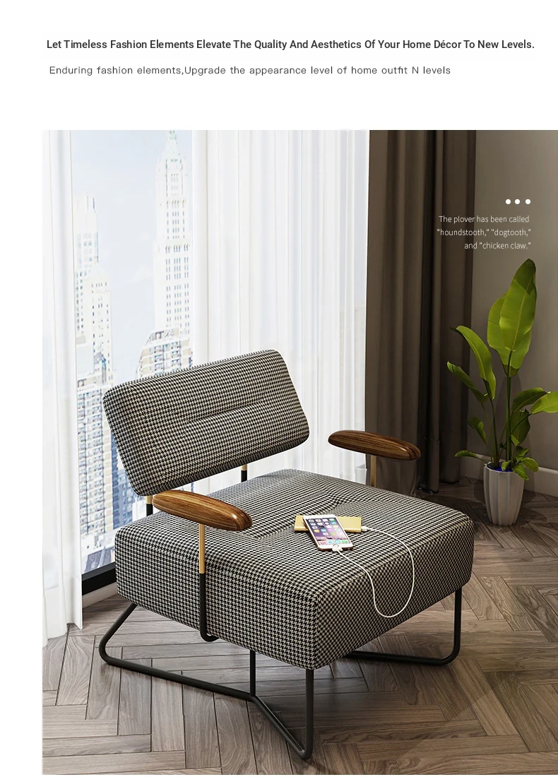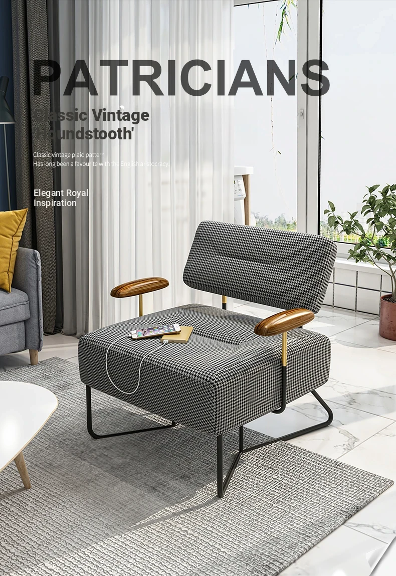 Nordic Houndstooth Sofa for Small Spaces - Modern Minimalist Lounge Chair for Living Room & Office, Chic Lazy Tiger Chair for Stylish Comfort