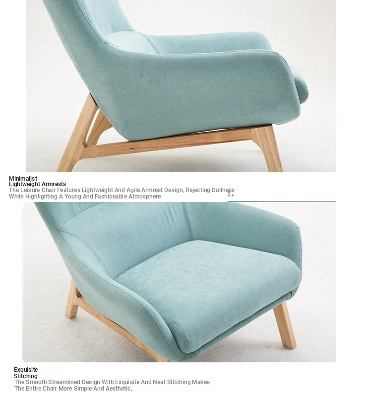Nordic Minimalist Modern Single Sofa - Stylish and Casual Armchair for Living Room and Bedroom, Designer Lazy Chair with Solid Wood and Fabric, Perfect for Relaxation