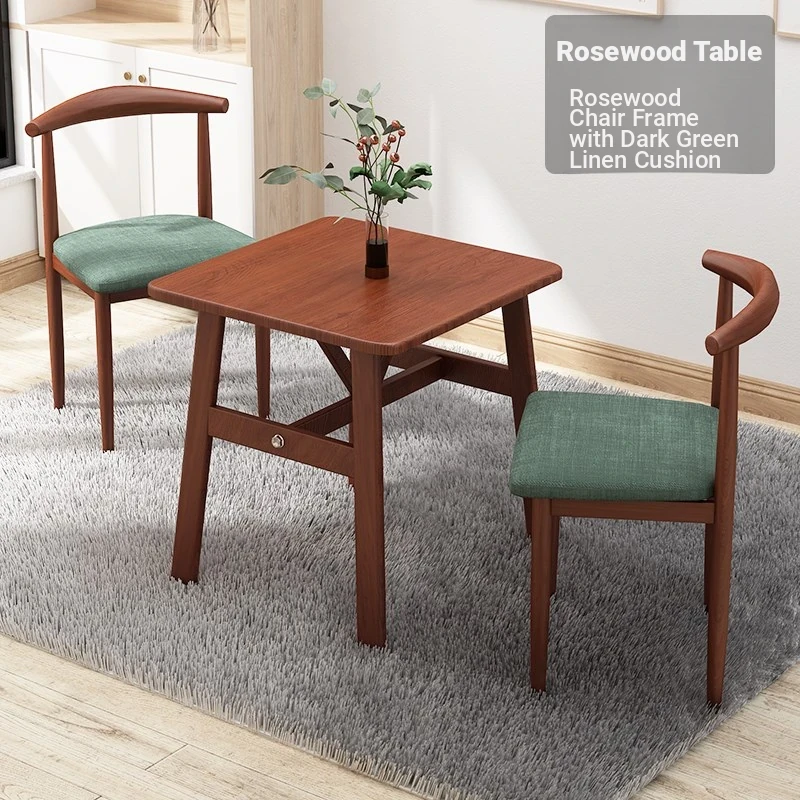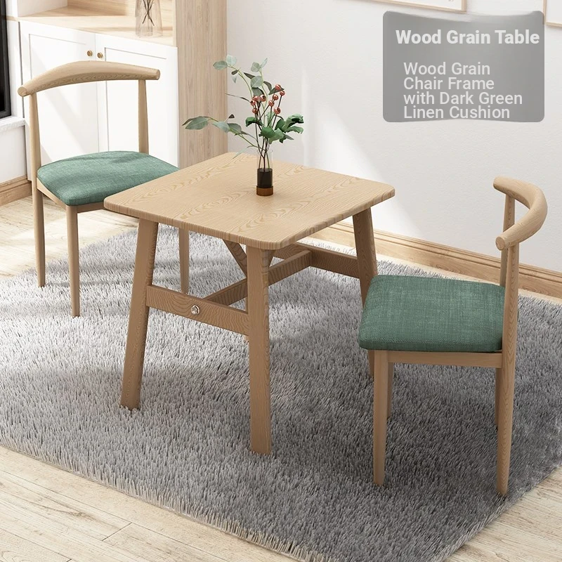 Safflower square table★Cushion green coarse linen★One table and two chairs